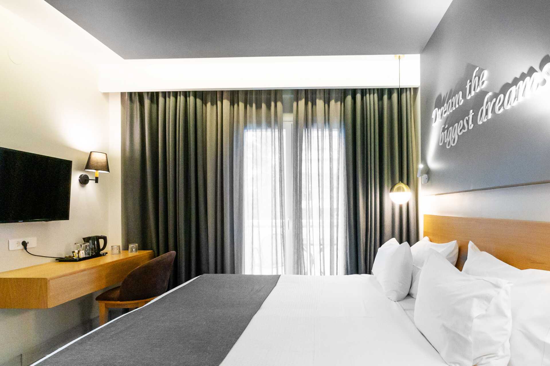 Standardrom med balkong. En dobbeltseng eller to enkeltsenger. Wifi, luftkondisjonering og safe inkludert. Minibar. Vannkoker samt kaffe og te. TV. Rengjøring 6 ggr/uke. Hårføner. Dusj og wc. Barn under 2 år regnes inn i maksantallet i rommet.