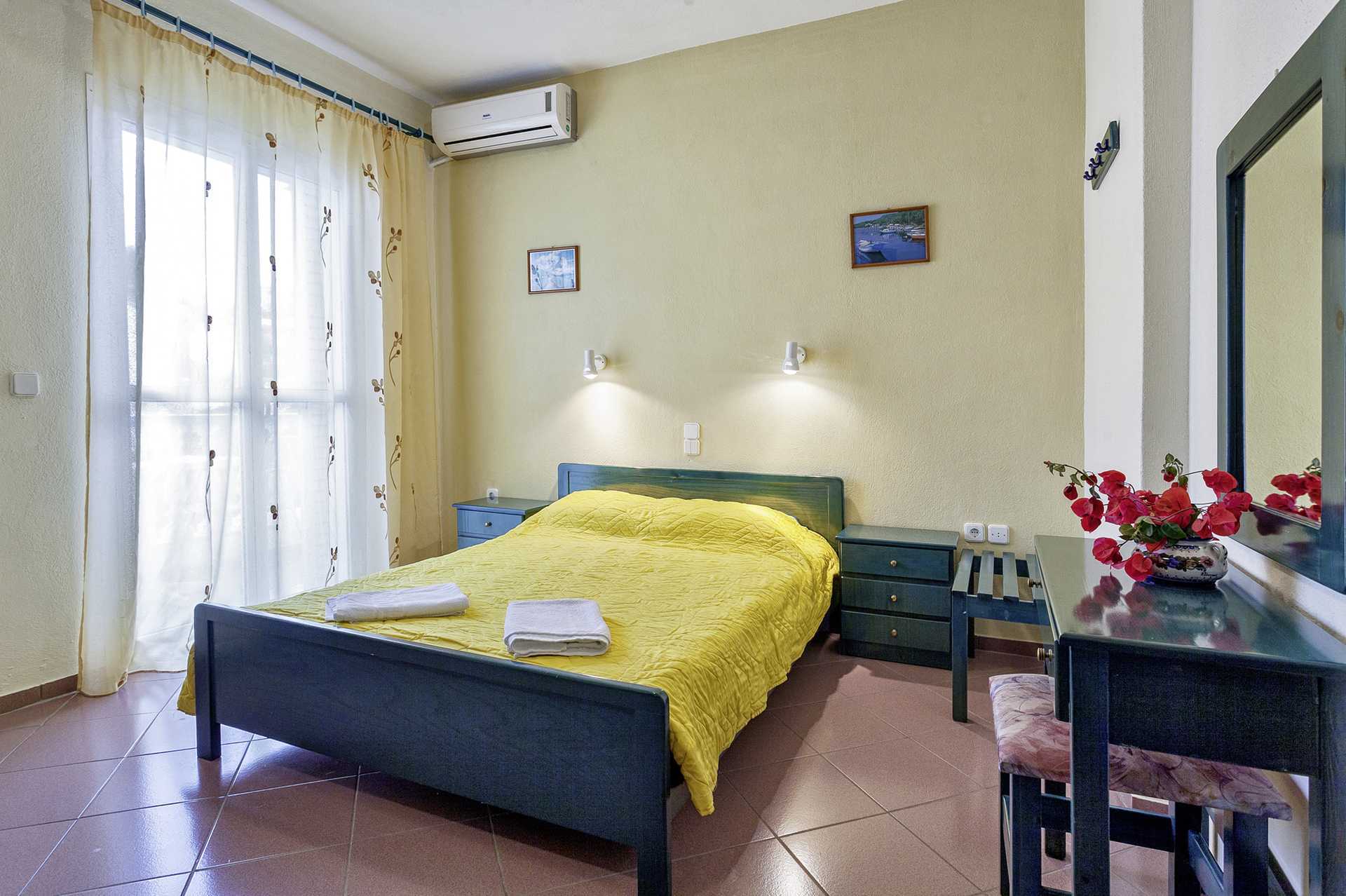 Ettromsleilighet med balkong eller terrasse. Kombinert soverom og minikjøkken. En dobbeltseng eller to enkeltsenger. Mulig med ekstraseng i enkeltseng. Minikjøkken med kokeplater, kjøleskap, vannkoker og enkelt kjøkkenutstyr. Spisebord, delvis utendørs. Wifi, luftkondisjonering og safe inkludert. TV. Hårføner. Bad med dusj og wc. Rengjøring 7 ggr/uke.