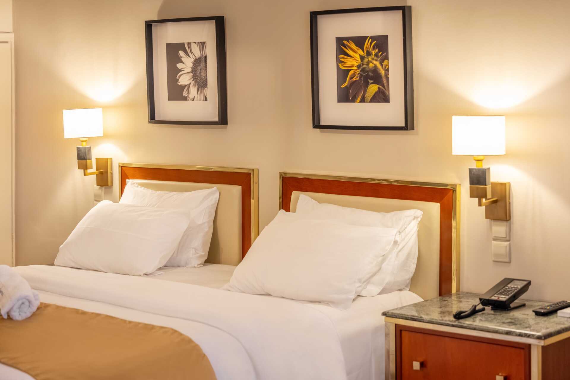 Dobbeltrom med balkong. En dobbeltseng eller to enkeltsenger. Mulig med ekstraseng i feltseng. Wifi, luftkondisjonering og safe inkludert. Minibar, øl og brus tilgjengelig ved ankomst. Påfyll mot avgift. Vannkoker samt kaffe og te. Nespresso kaffemaskin, kapsler inkludert og etterfylles hver dag. TV. Lydisolerte vinduer. Badekåper. Hårføner. Dusj og wc. Rengjøring 6 ggr/uke.