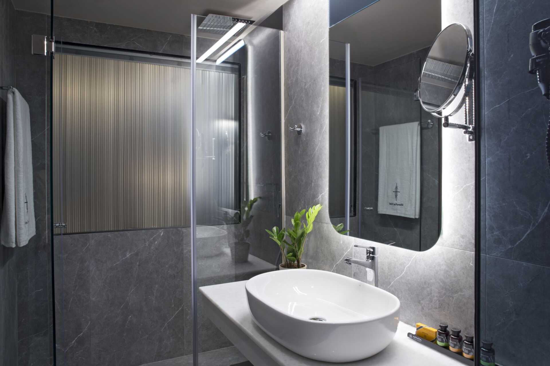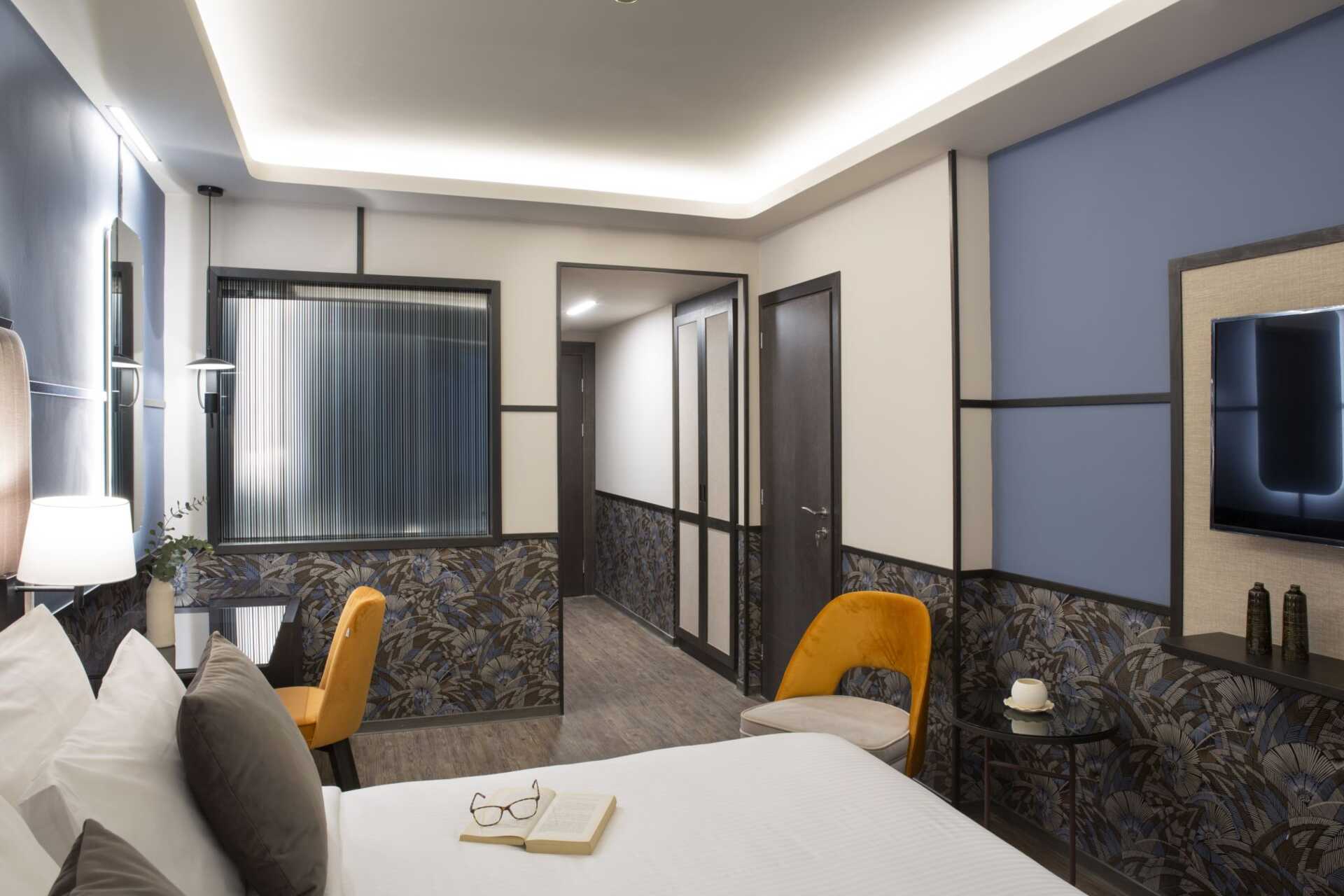 Executiverom uten uteplass. En dobbeltseng eller to enkeltsenger. Wifi, luftkondisjonering og safe inkludert. Kjøleskap. Vannkoker samt kaffe og te. Espresso kaffemaskin. TV. Strykejern og strykebrett. Hårføner. Baderom med dusj og wc. Rengjøring 7 ggr/uke. Barn under 2 år regnes inn i maksantallet i rommet.