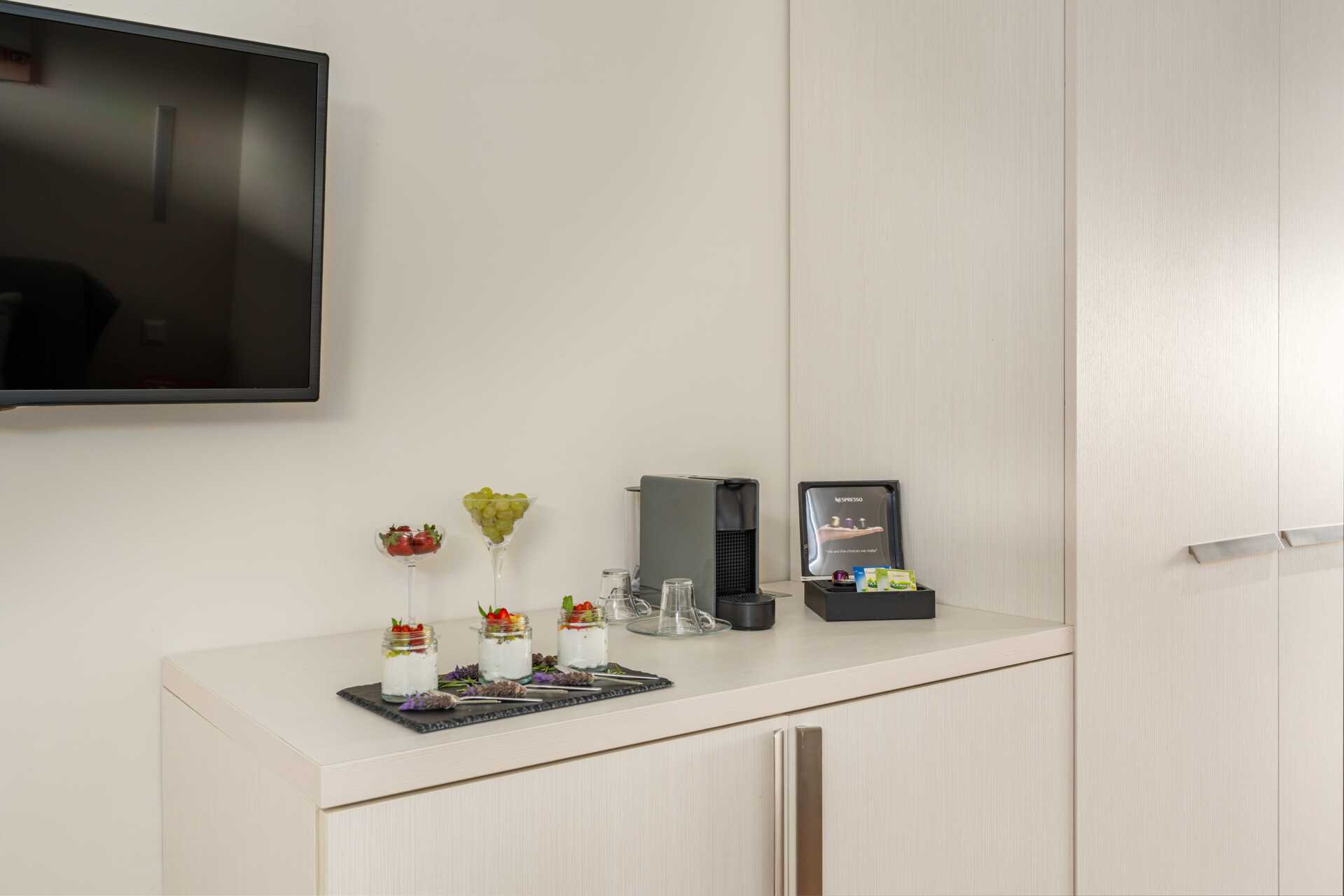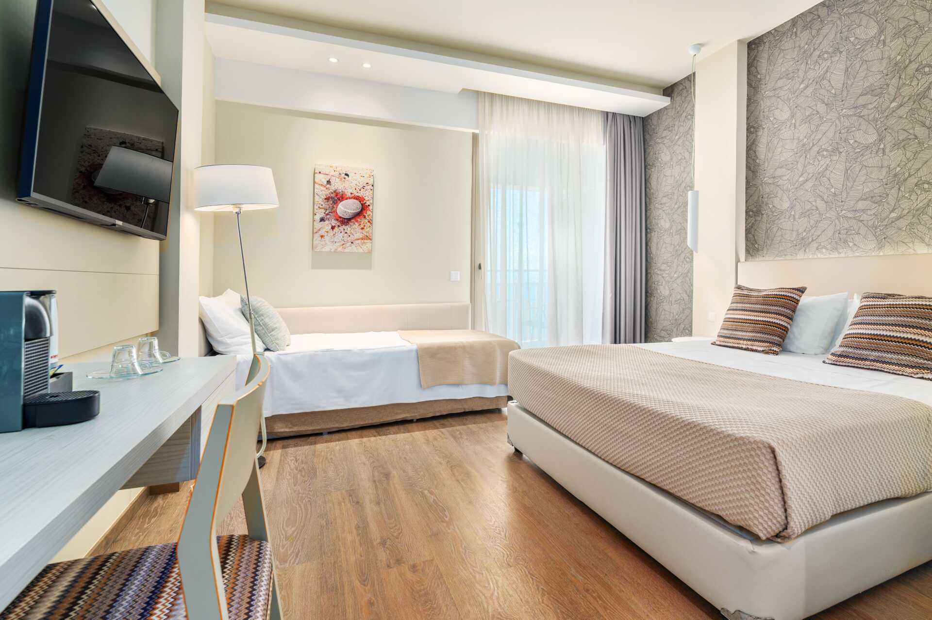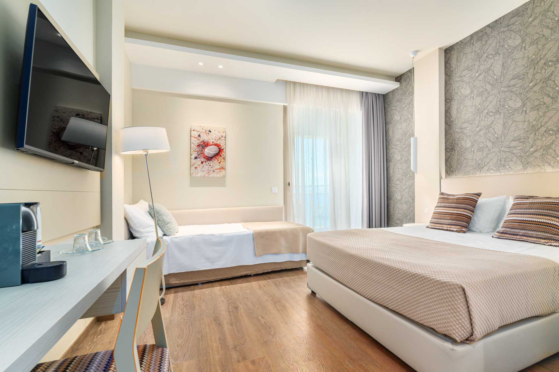 Superiorrom med balkong og havutsikt. En dobbeltseng eller to enkeltsenger. Mulig med ekstraseng i sovesofa. Putemeny. Wifi, luftkondisjonering og safe inkludert. Kjøleskap. Minibar som fylles ved ankomst, påfyll mot avgift. Vannkoker samt kaffe og te. Nespresso kaffemaskin, kapsler inkludert ved ankomst, etterfylles mot avgift. TV. Badekåper og tøfler. Hårføner. Dusj og wc. Rengjøring 7 ggr/uke.