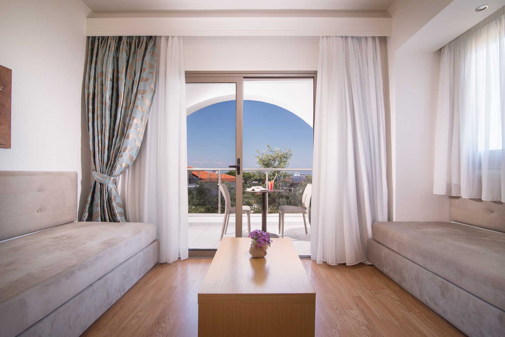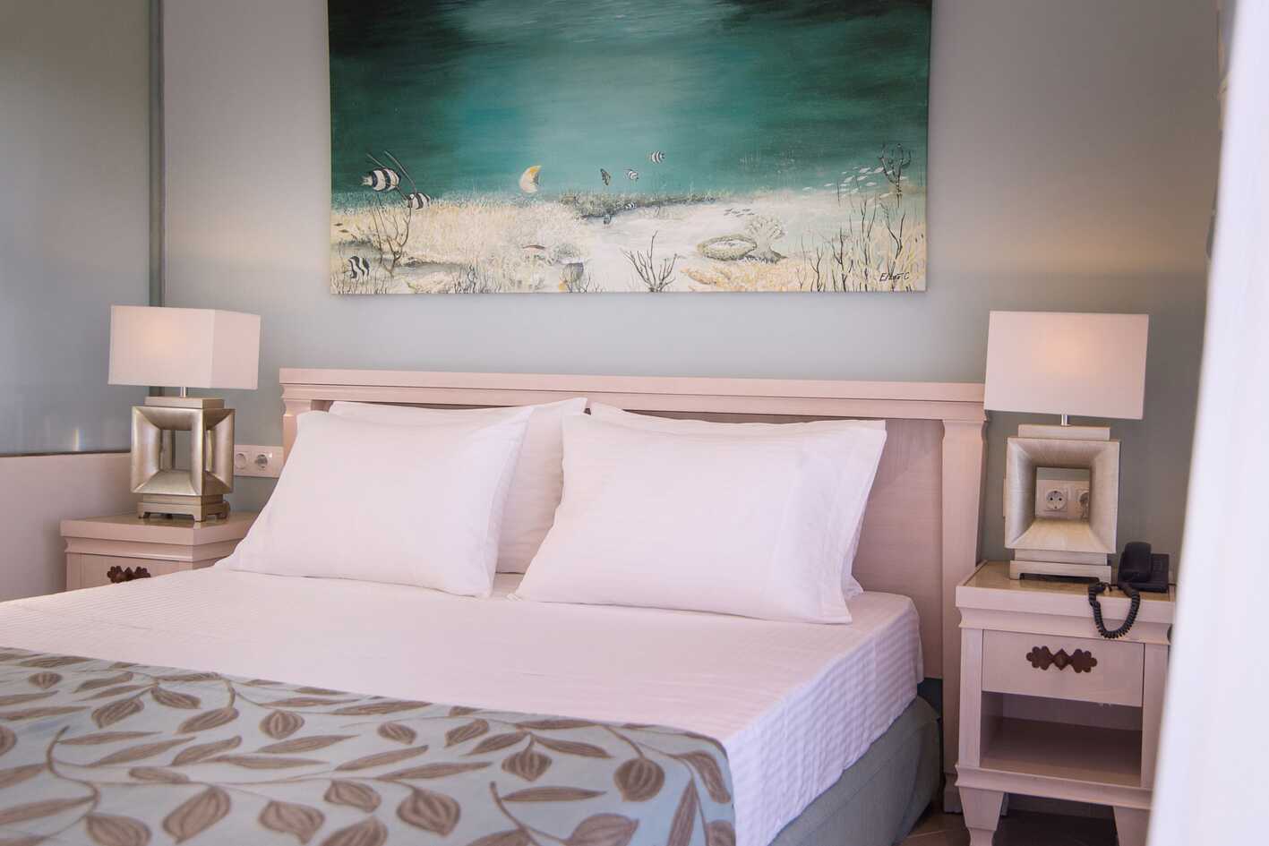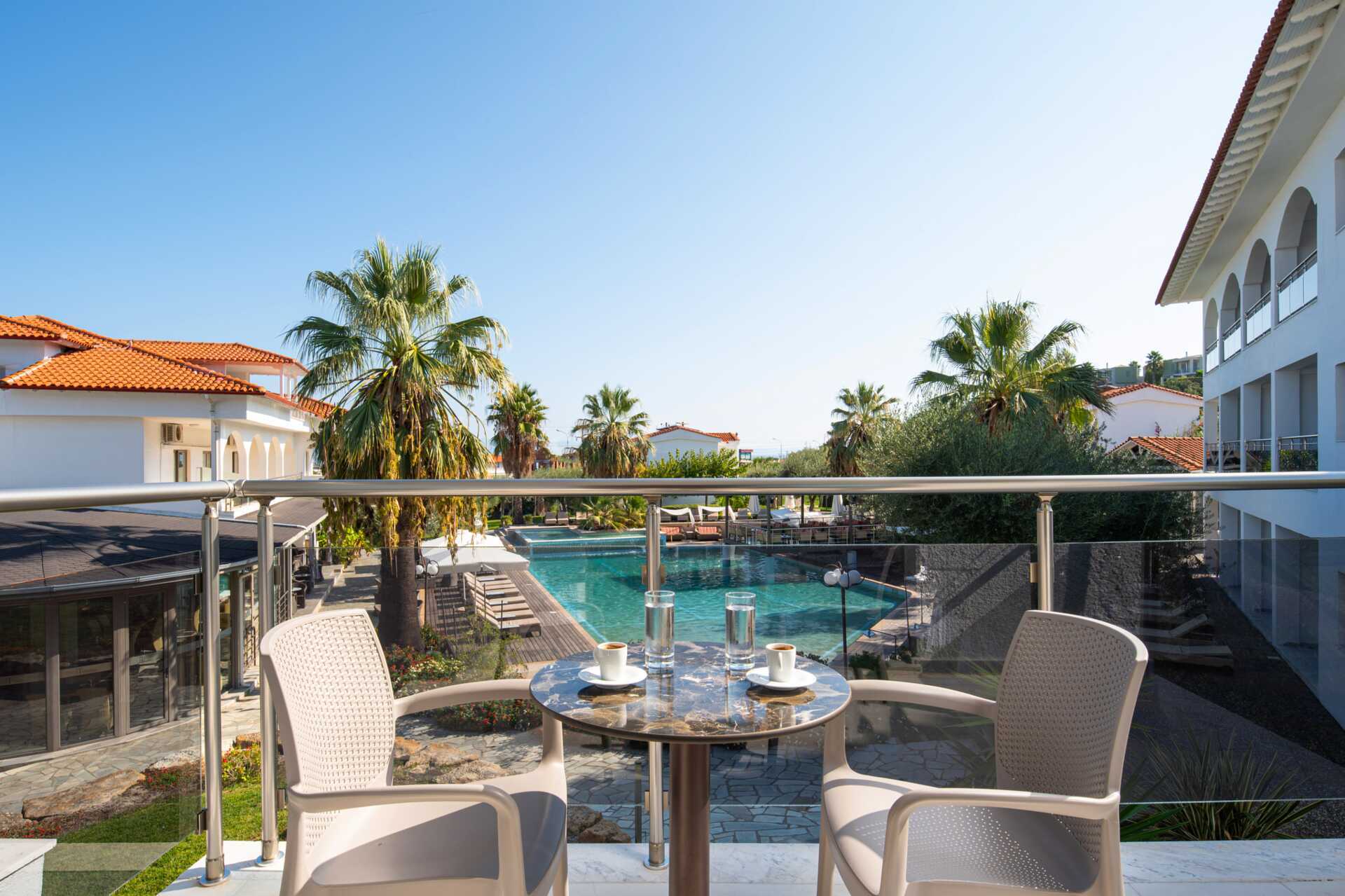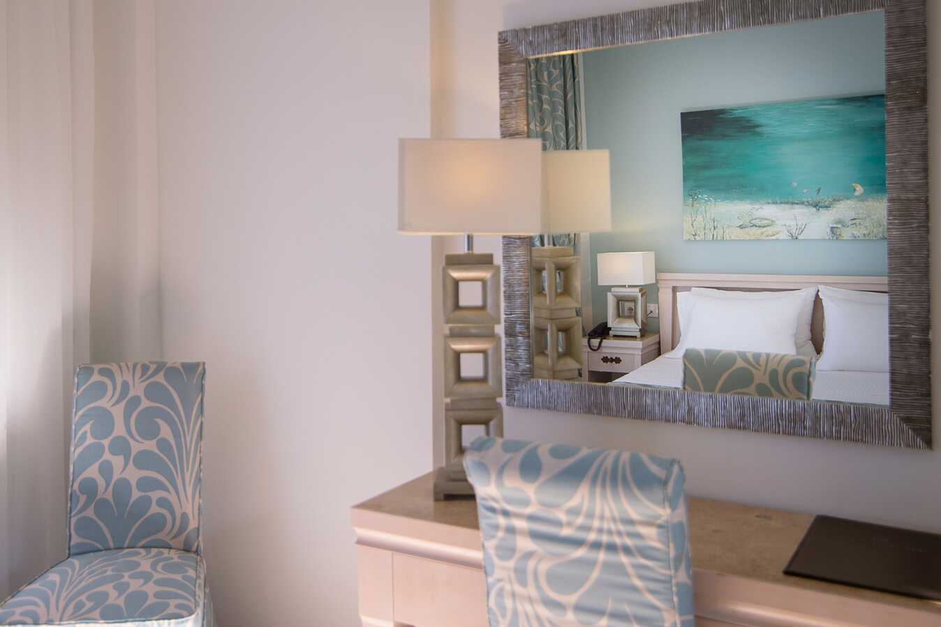 Juniorsuite med balkong eller terrasse og utsikt over bassenget. En dobbeltseng og mulighet for en ekstra seng i to enkeltsenger. Wifi, luftkondisjonering og safe inkludert. Lite kjøleskap. Vannkoker samt kaffe og te. TV. Badekar eller dusj samt wc. Rengjøring 6 ggr/uke.