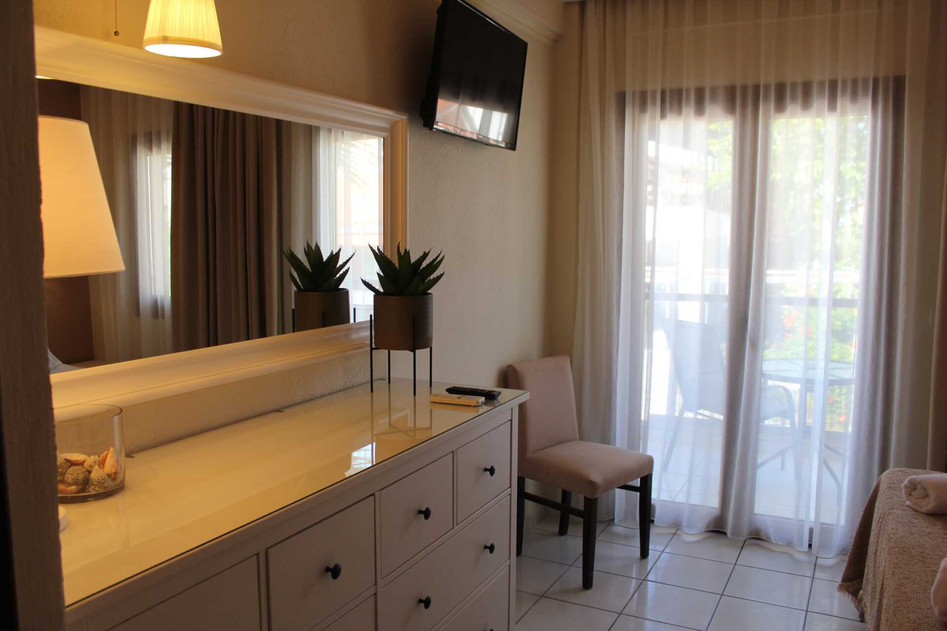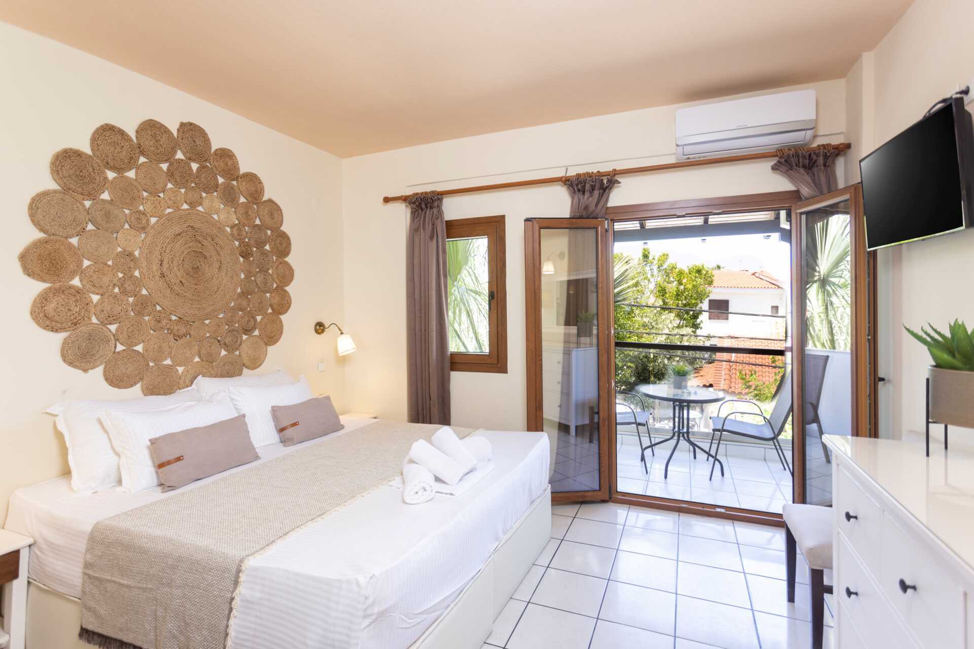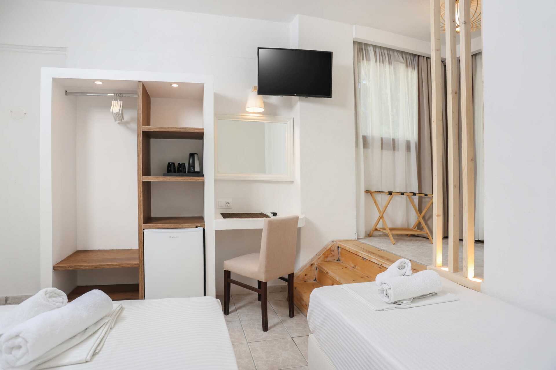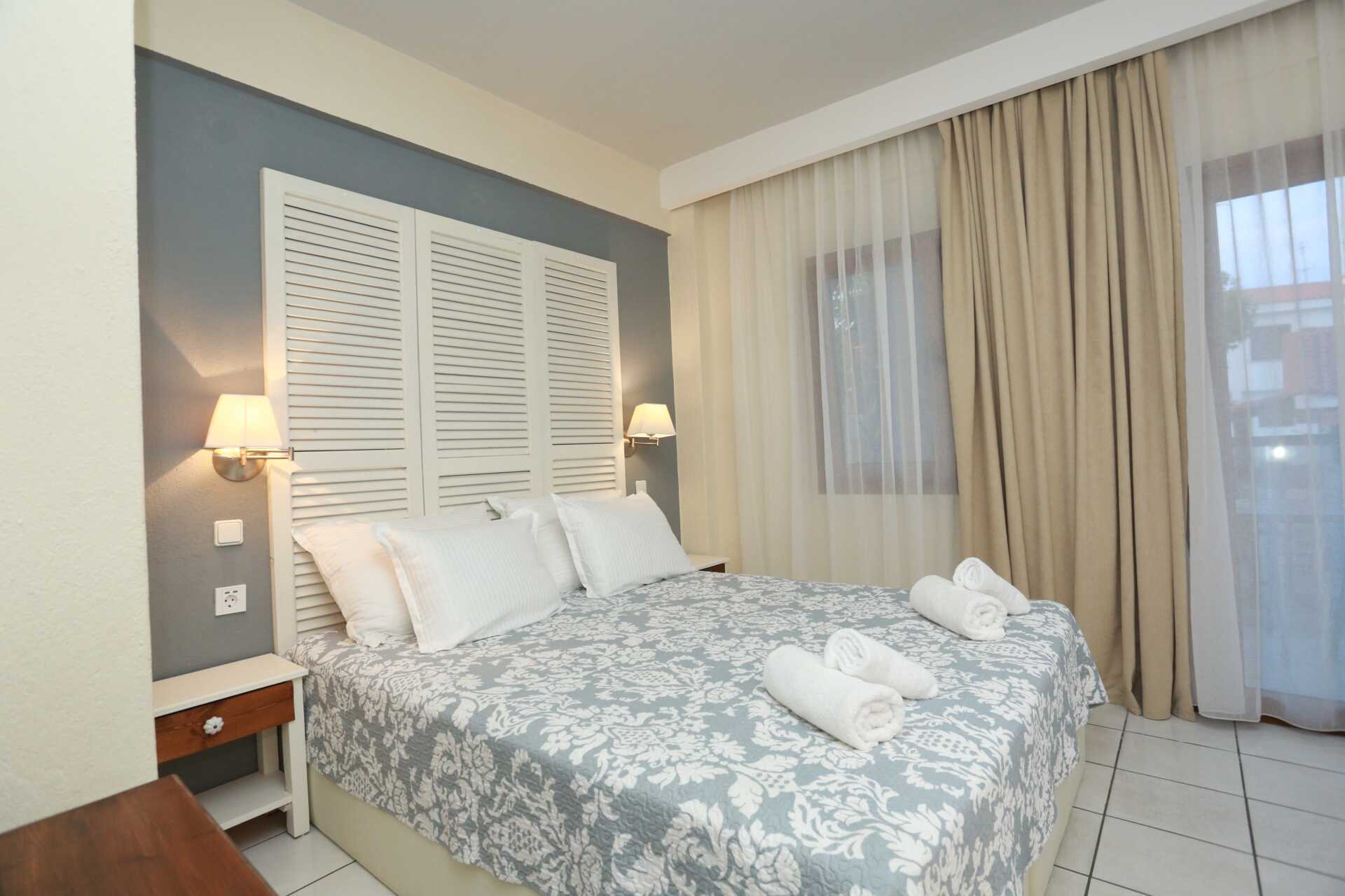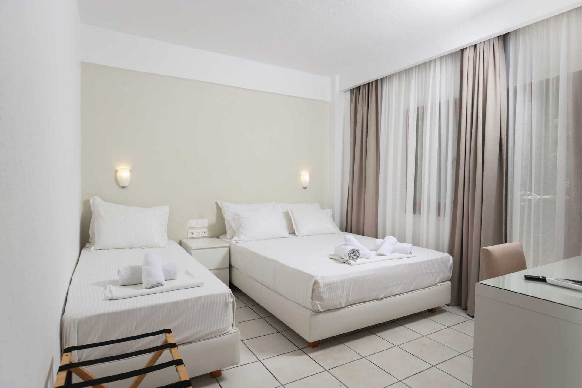 Trippelrom med balkong. En dobbeltseng og en enkeltseng. Wifi, luftkondisjonering og safe inkludert. Kjøleskap. TV. Hårføner. Dusj og wc. Rengjøring 6 ggr/uke.