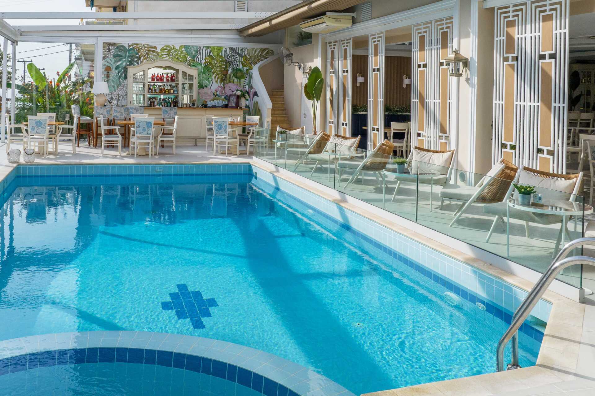 Fra takterrassen Thea Roof Garden har du en vakker utsikt over Egeerhavet og Mount Olympus, som er Hellas sitt høyeste fjell og gudenes hjem ifølge gammel mytologi, 2918 meter over havet. På terrassen kan du nyte god mat og god drikke mens solen sakte går ned i havet. I hotellets Café-Bar som ligger ved bassenget kan du starte dagen med en ferskpresset appelsinjuice eller en kald Frappé og senere på dagen og kvelden serveres det småretter og snacks - åpent fra morgen til midnatt. Frokostrom hvor du også kan sitte ute ved bassenget - hotellene frokost er en sertifisert gresk frokost og byr på aromaer og smaker fra økologiske og lokalt dyrkede produkter og lokale delikatesser.