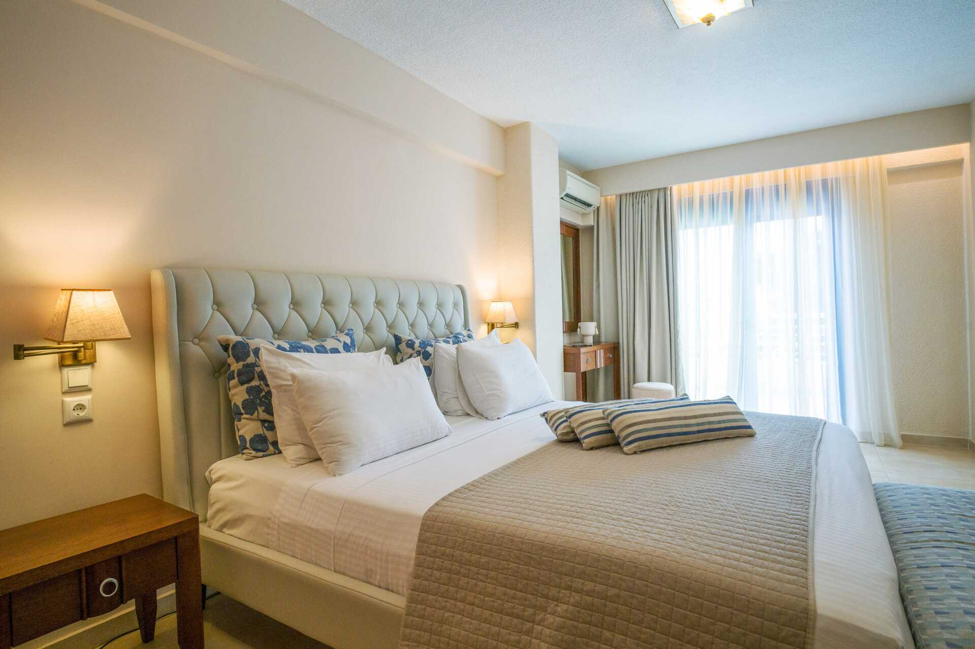 Dobbeltrom med balkong. En dobbeltseng eller to enkeltsenger. Wifi, luftkondisjonering og safe inkludert. Minibar. Vannkoker samt kaffe og te. Espresso kaffemaskin. TV. Badekåper og tøfler. Hårføner. Dusj og wc. Rengjøring 6 ggr/uke.