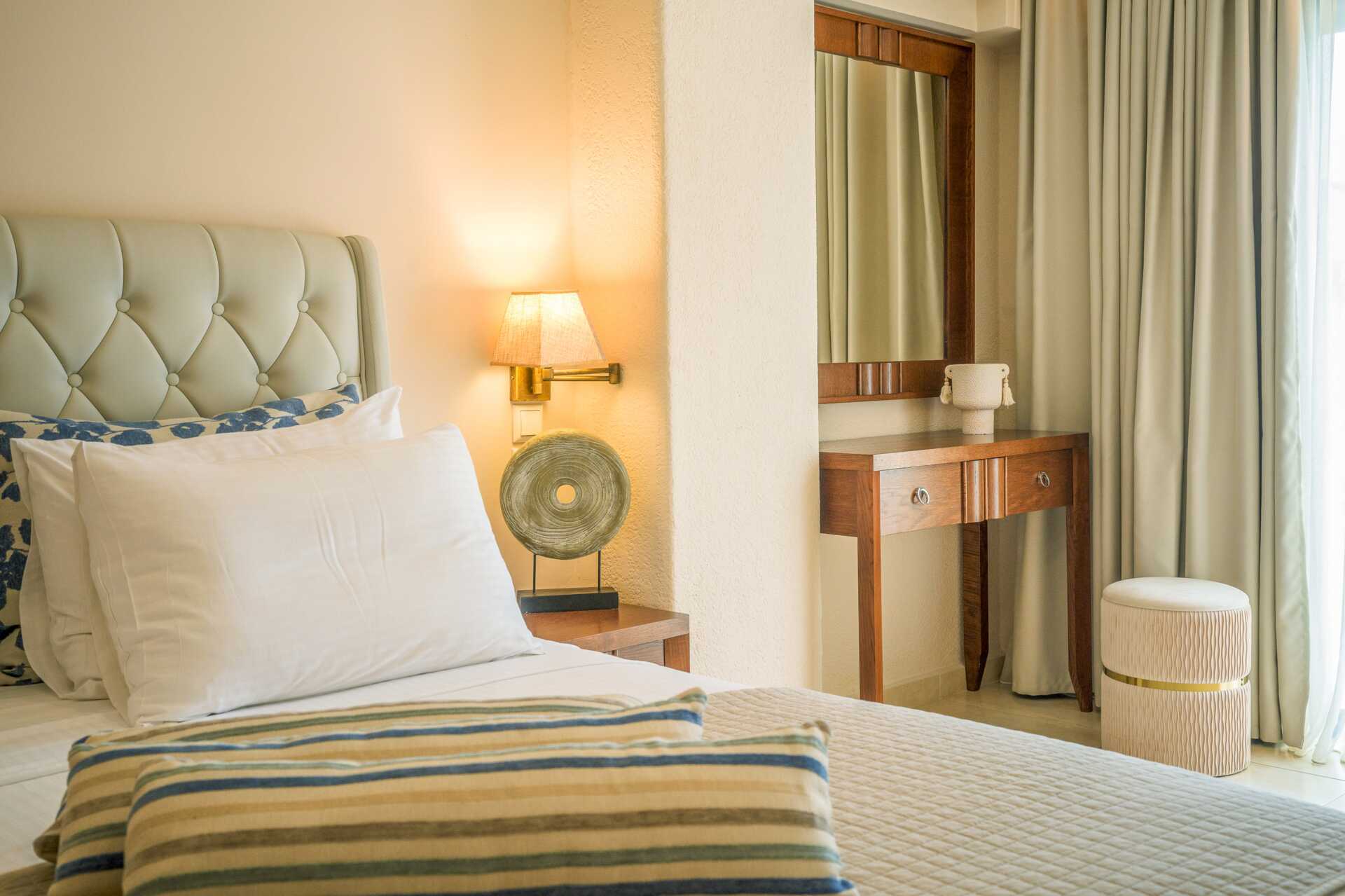 Executiverom med balkong og havutsikt. En dobbeltseng eller to enkeltsenger. Wifi, luftkondisjonering og safe inkludert. Minibar. Vannkoker samt kaffe og te. Espresso kaffemaskin. TV. Badekåper og tøfler. Hårføner. Dusj og wc. Rengjøring 6 ggr/uke.
