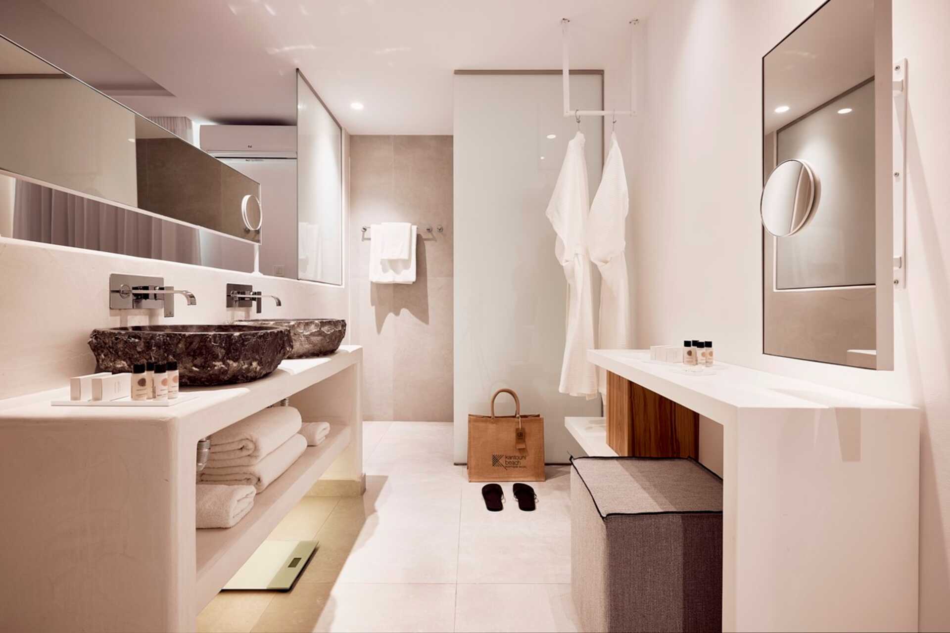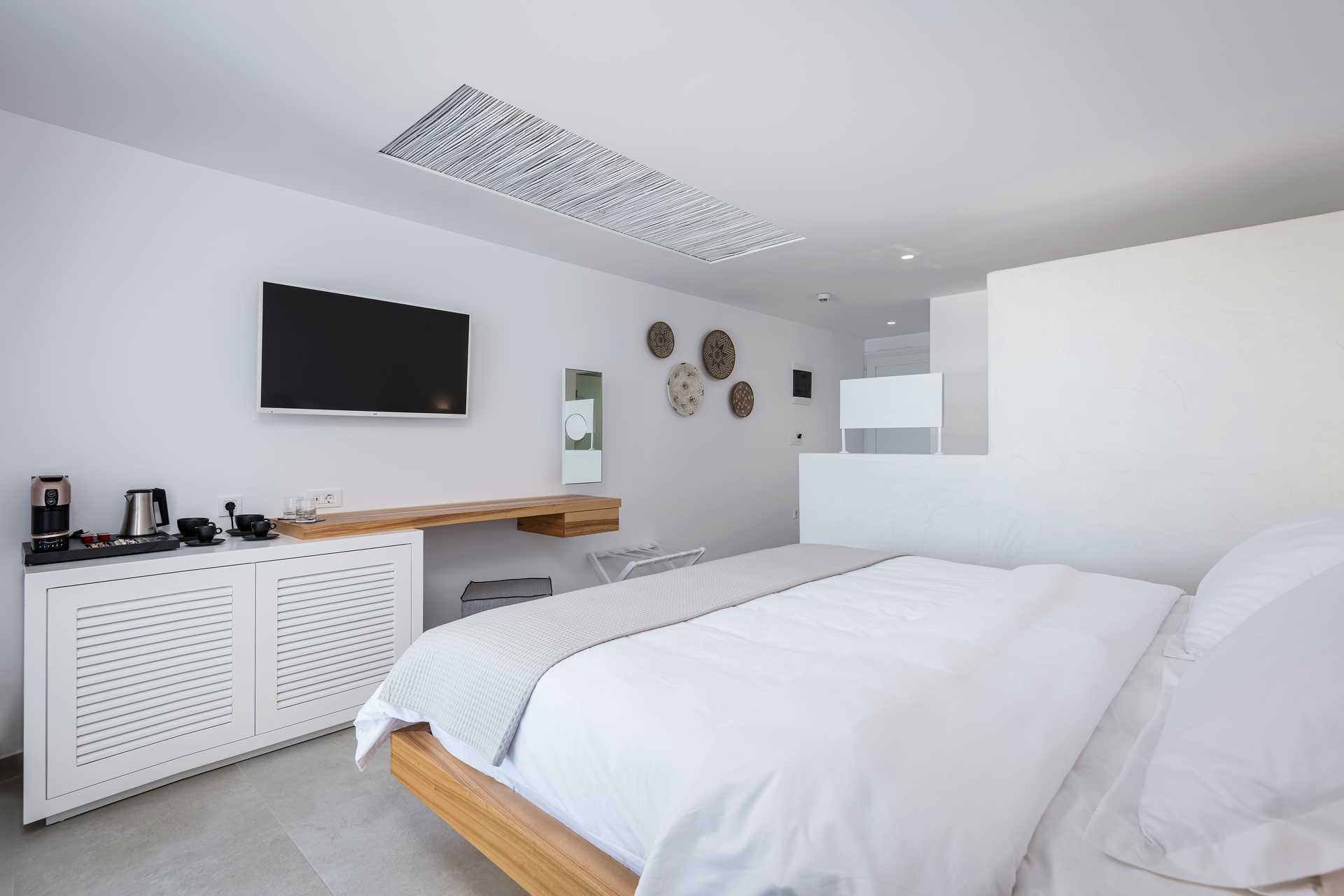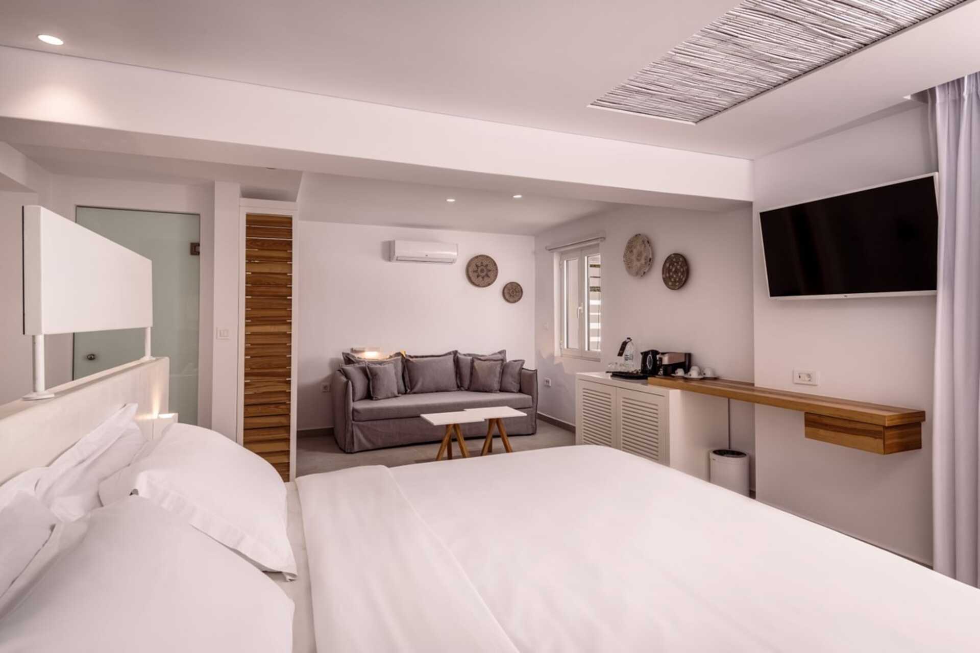 Juniorsuite med balkong eller terrasse, noen med havutsikt. En dobbeltseng. Mulig med ekstrasenger i sovesofa. Wifi, luftkondisjonering og safe inkludert. Kjøleskap. Espressomaskin. Vannkoker samt kaffe og te. TV. Badekåper og tøfler Strandveske med basseng- og badehåndklær samt strandsko. Hårføner. Baderom med dusj og wc. Rengjøring 7 ggr/uke. Barn under 2 år regnes inn i maksantallet i rommet.