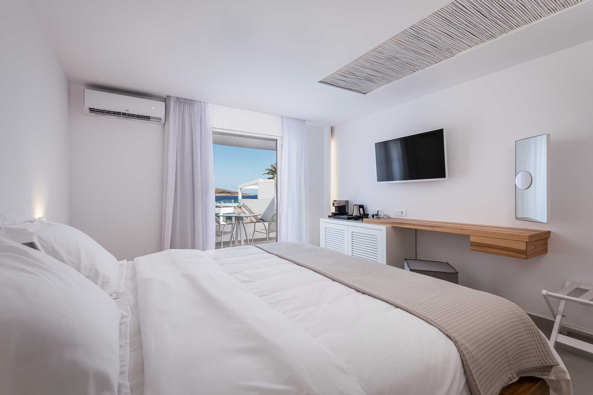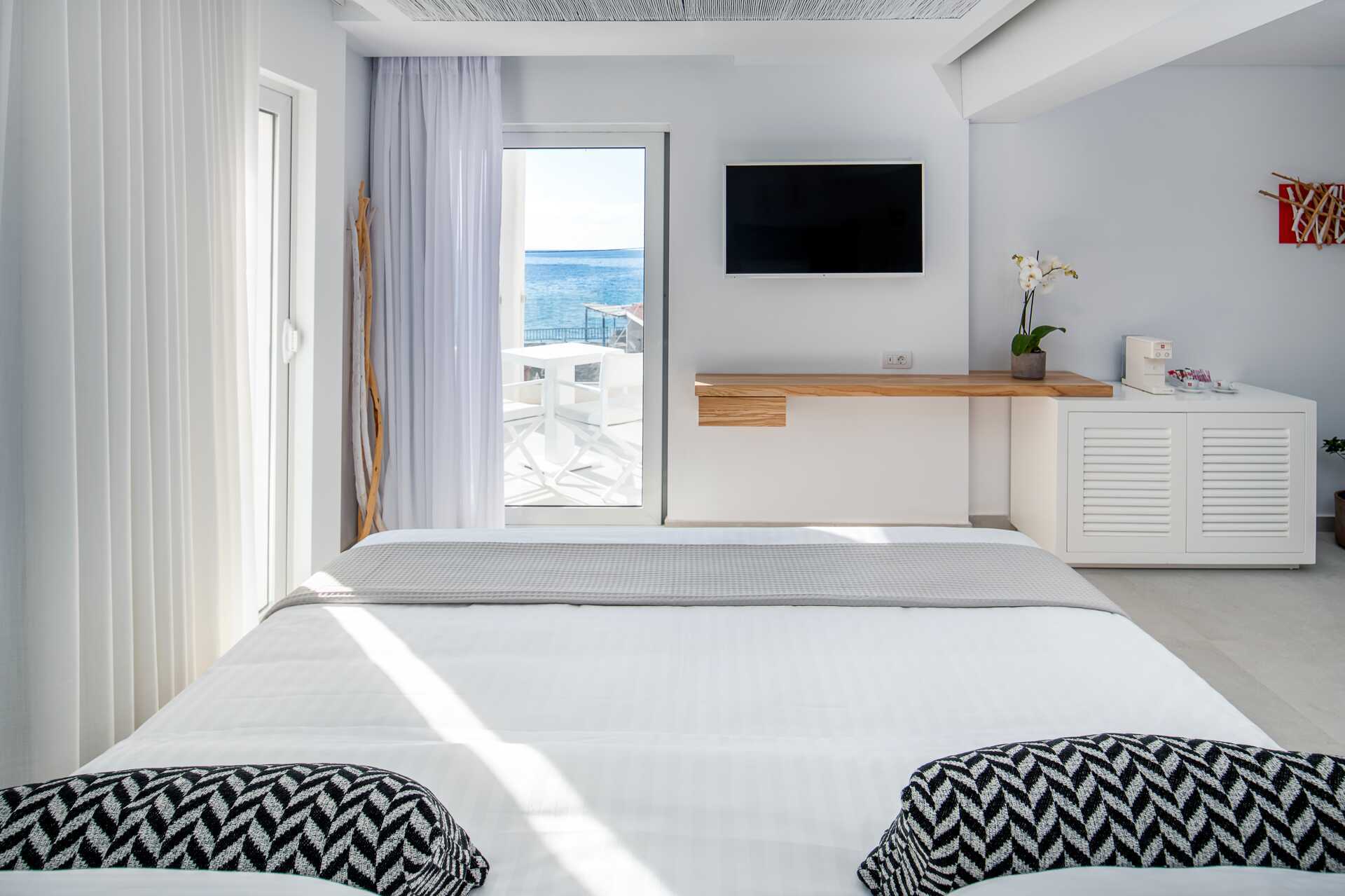 Superiorrom med balkong eller terrasse og havutsikt. En dobbeltseng. Mulig med en ekstraseng i sovesofa. Wifi, luftkondisjonering og safe inkludert. Kjøleskap. Vannkoker samt kaffe og te. Espressomaskin. TV. Badekåper og tøfler Strandveske med basseng- og badehåndklær samt strandsko. Hårføner. Dusj og wc. Rengjøring 7 ggr/uke. Barn under 2 år regnes inn i maksantallet i rommet.