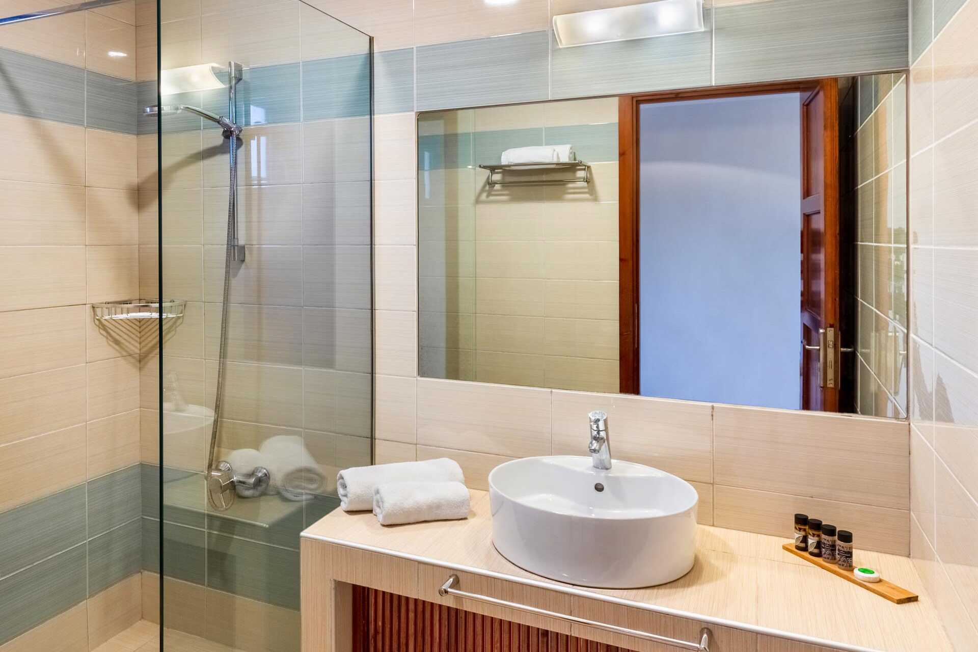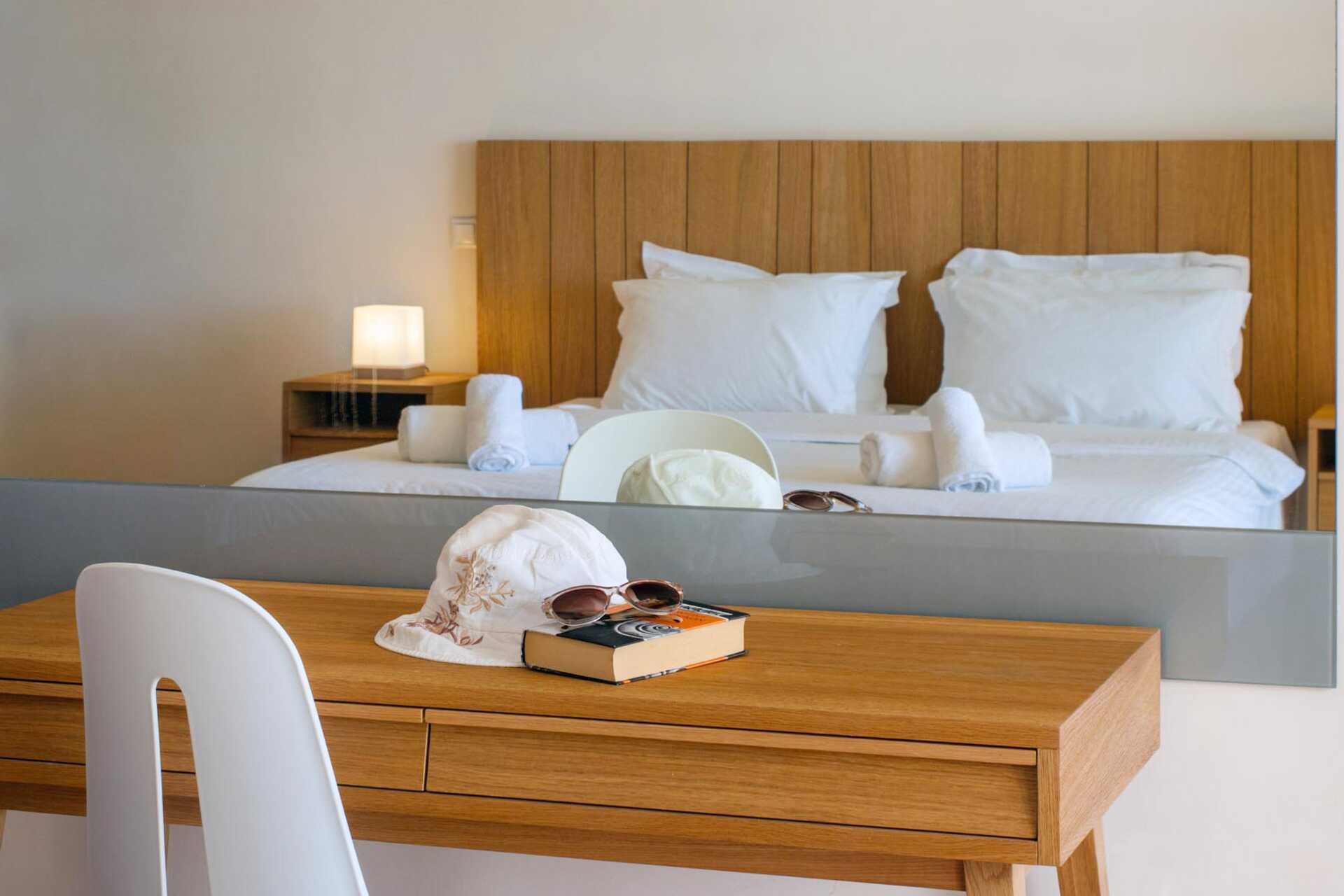 Deluxerom med balkong og begrenset havutsikt. En dobbeltseng eller to enkeltsenger. Mulig med ekstraseng i sovesofa eller feltseng. Wifi, luftkondisjonering og safe inkludert. Kjøleskap. Vannkoker. TV. Tøfler. Hårføner. Bad med dusj og wc. Rengjøring 7 ggr/uke.