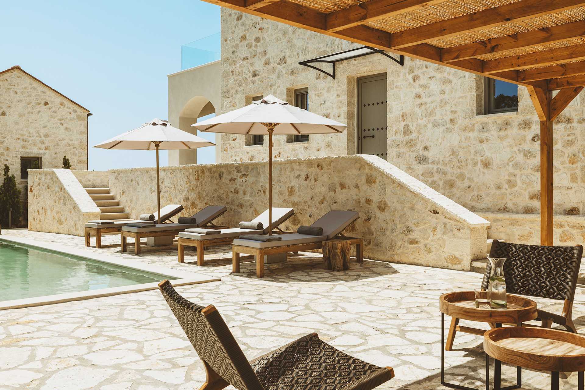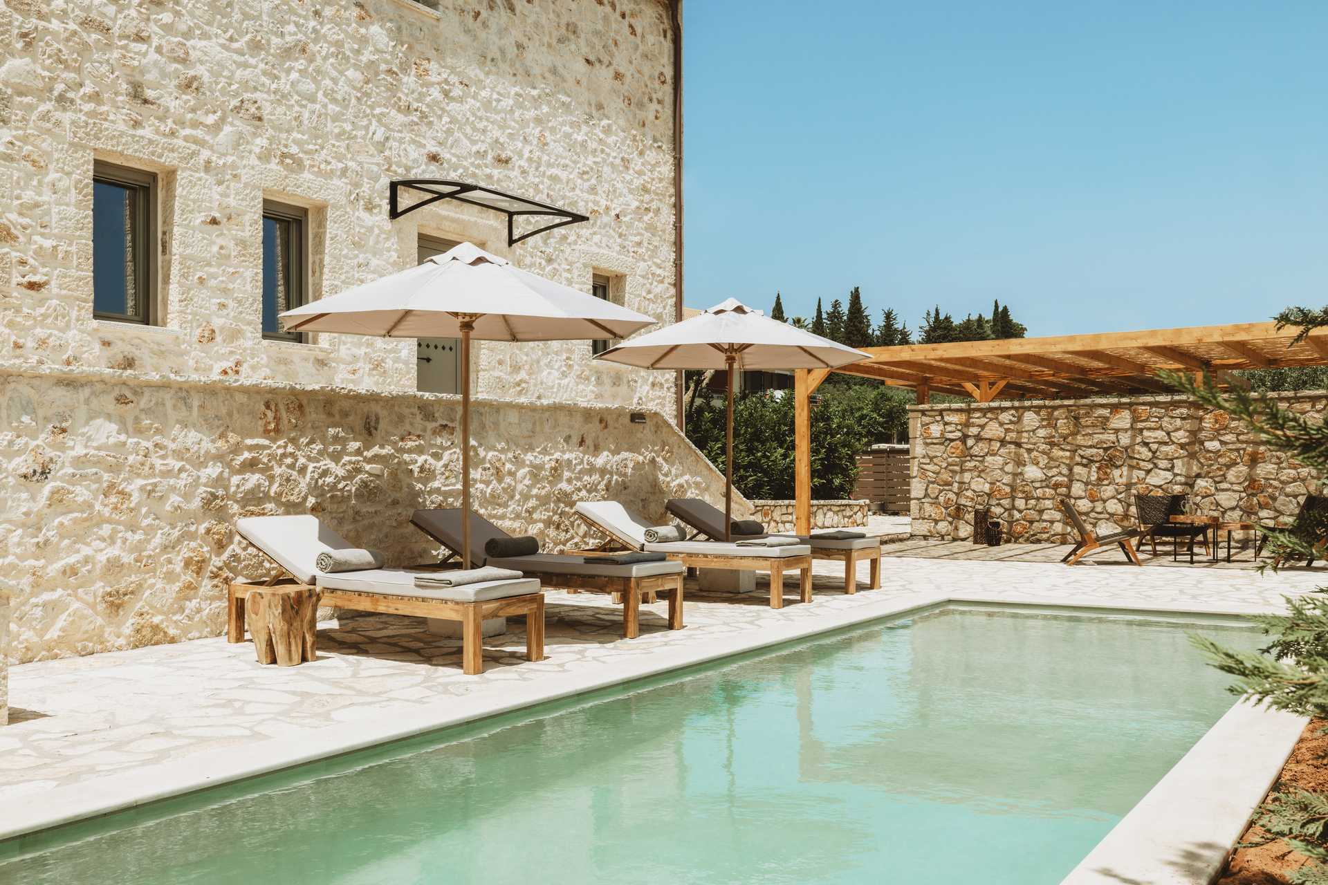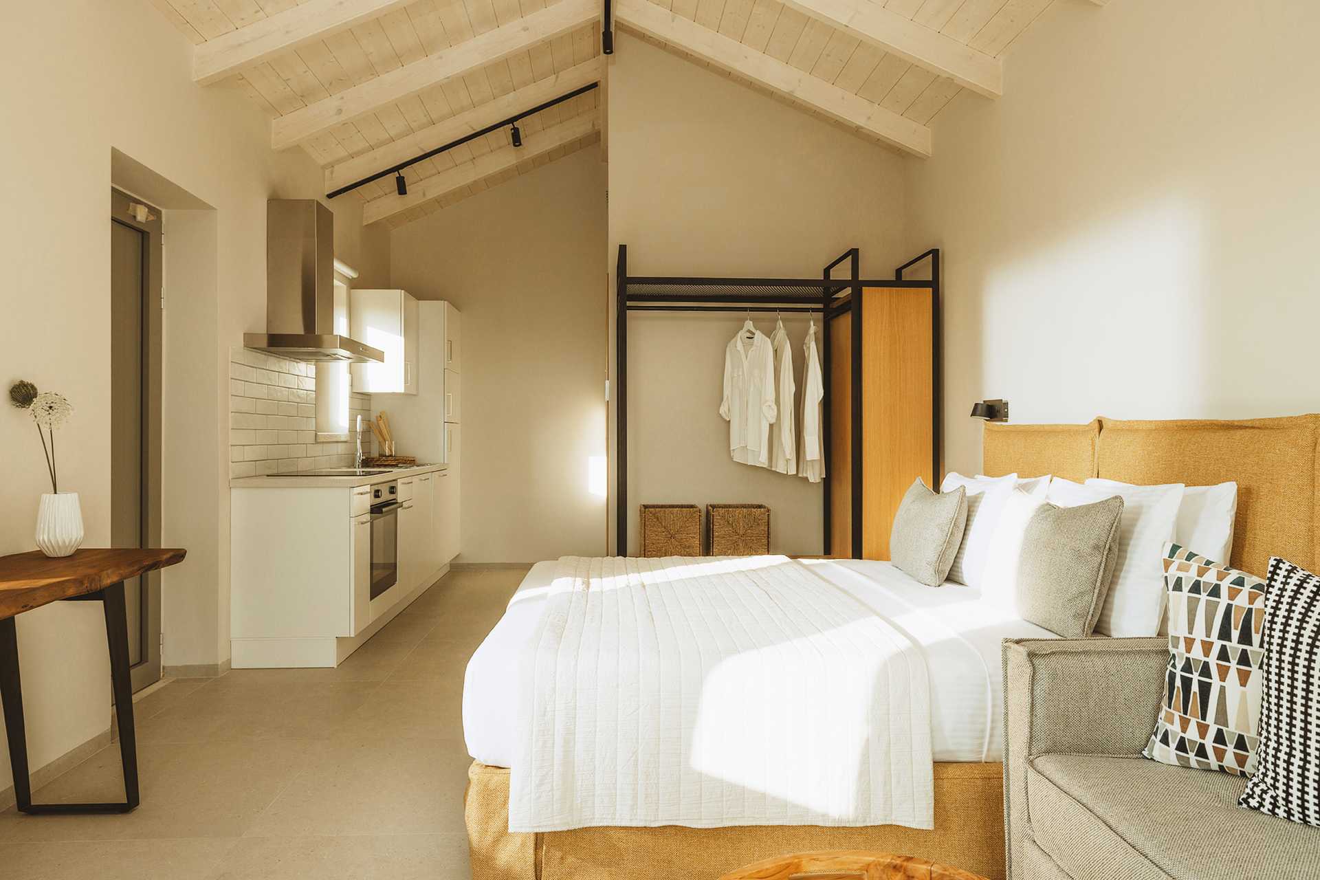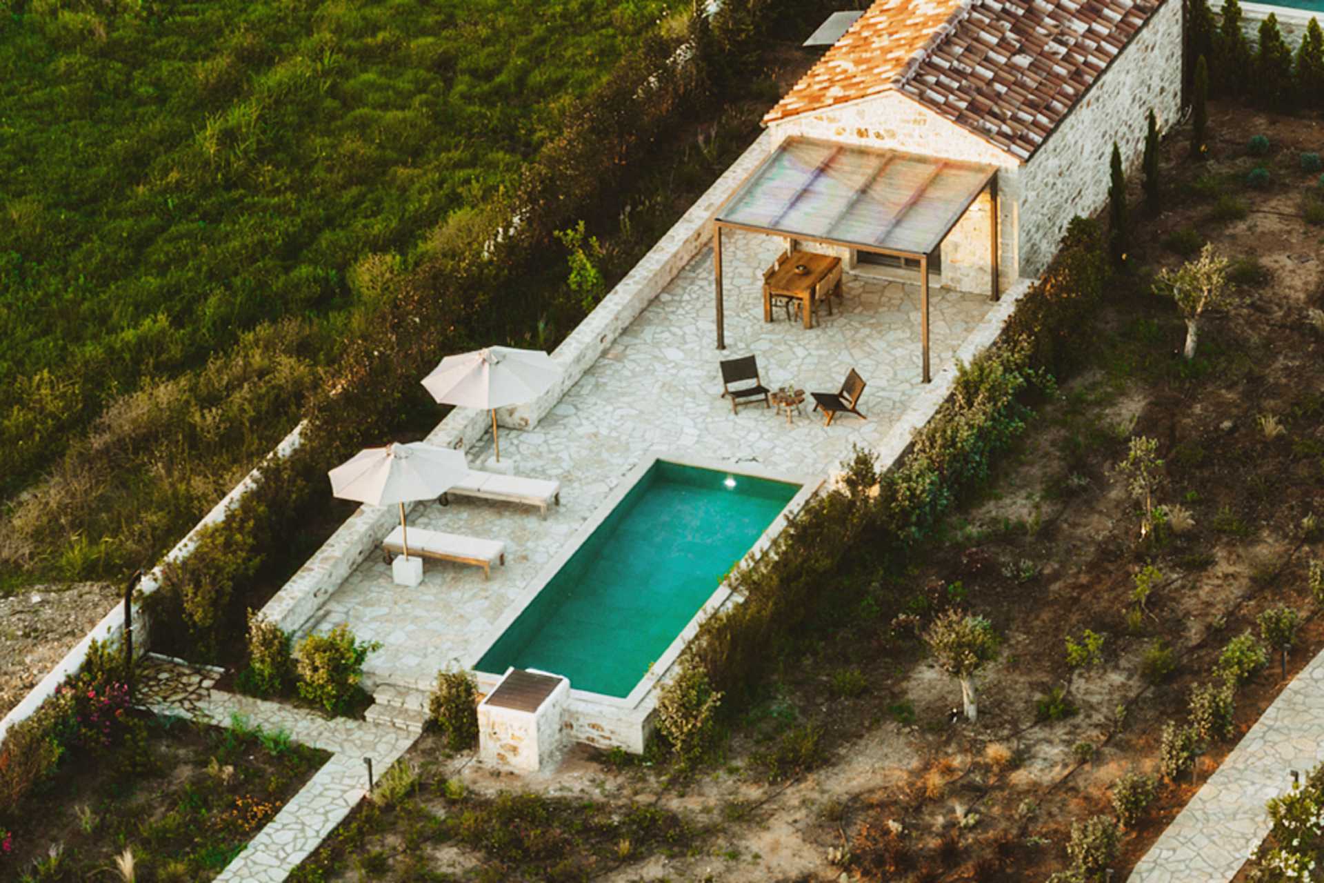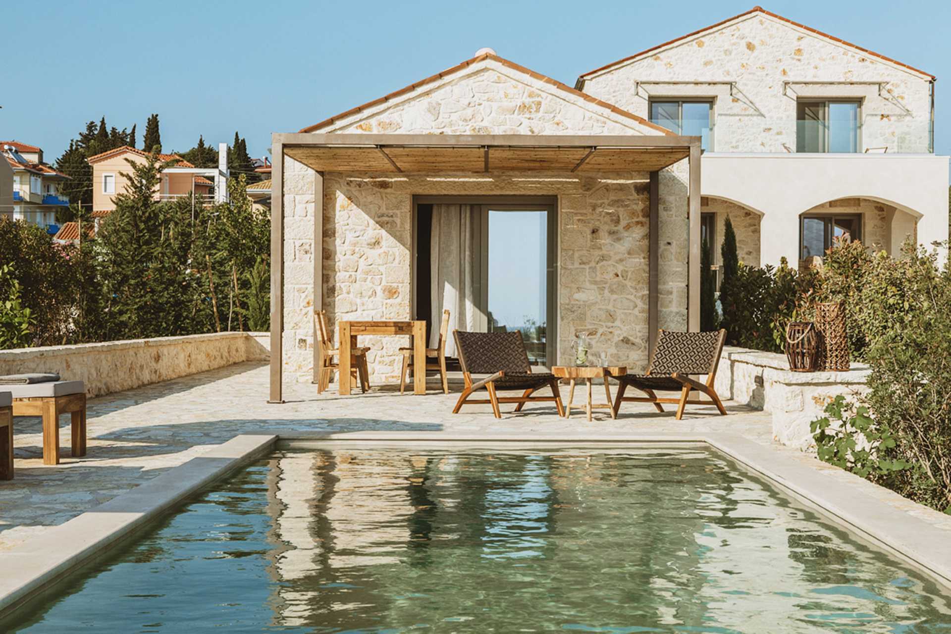 Ettromsvilla med eget basseng På terrassen er det et spisebord, solsenger og parasoller ved bassenget. Et kombinert soverom med stue og minikjøkken. En dobbeltseng eller to enkeltsenger. Mulig med ekstrasenger i sovesofa. Minikjøkken med komfyr, kjøleskap og fryser og bra kjøkkenutstyr. Wifi, luftkondisjonering og safe inkludert. TV. Strykejern og strykebrett. Bassenghåndklær Badekåper og tøfler Hårføner. Dusj og wc. Rengjøring 5 ggr/uke. Trapper inne i og utenfor villaen, inkludert ned til bassenget.
