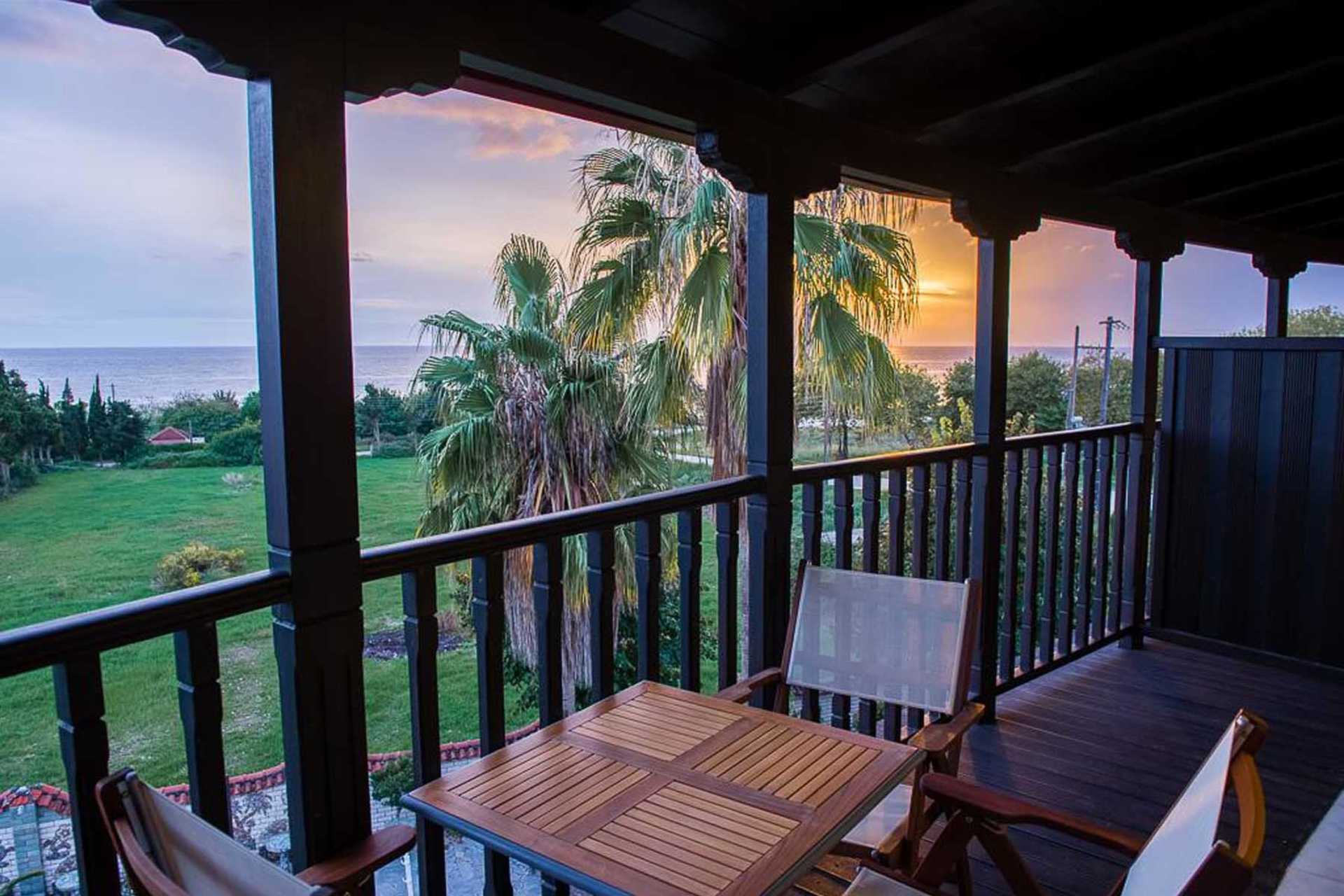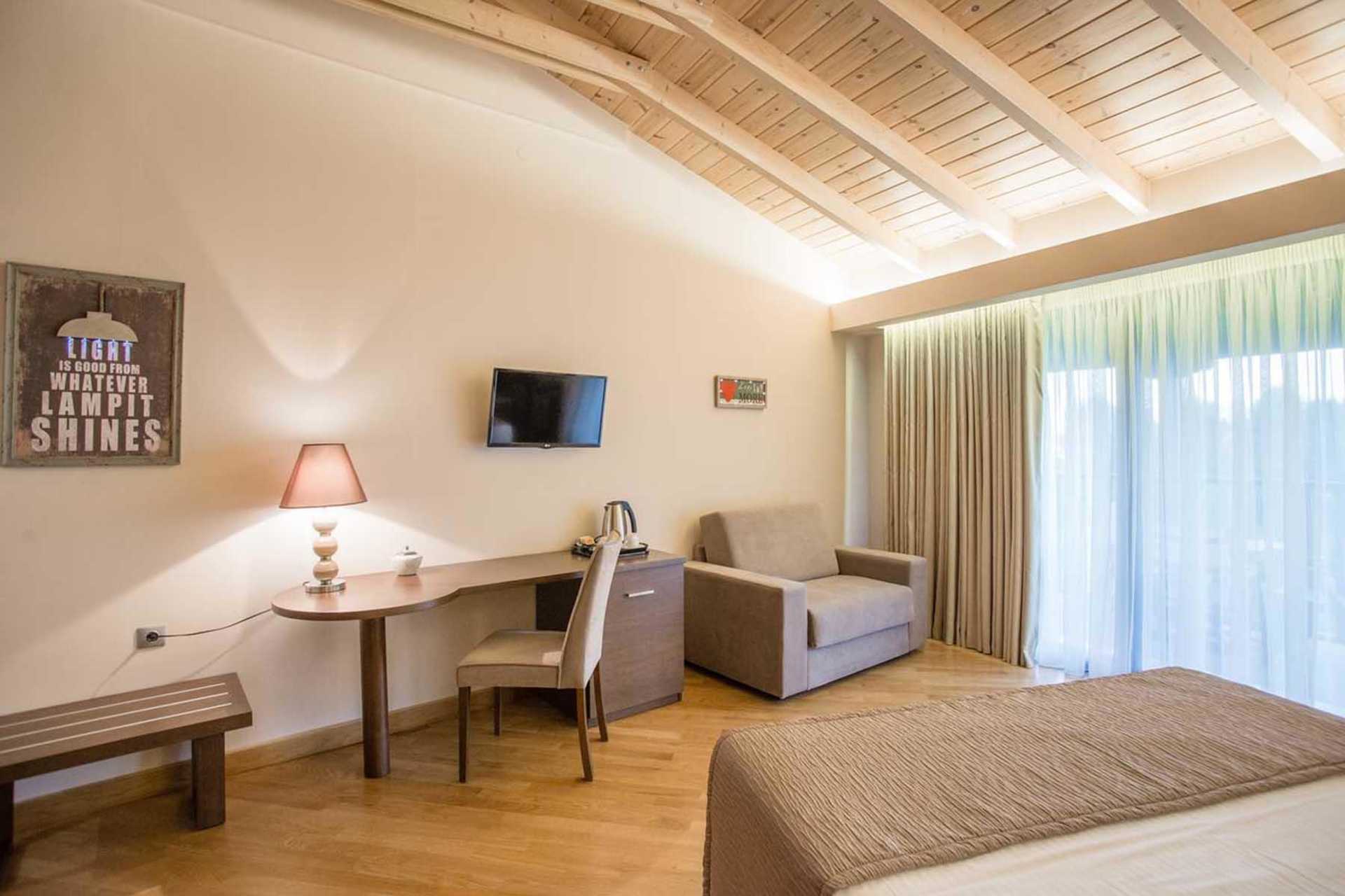 Deluxerom med balkong og havutsikt. En dobbeltseng eller to enkeltsenger. Mulig med en ekstraseng i en sovesofa eller i en oppredbar lenestol. Wifi og luftkondisjonering er inkludert. Kjøleskap. Vannkoker. TV. Hårføner. Dusj og wc. Rengjøring 7 ggr/uke. Barn under 2 år regnes inn i maksantallet i rommet.