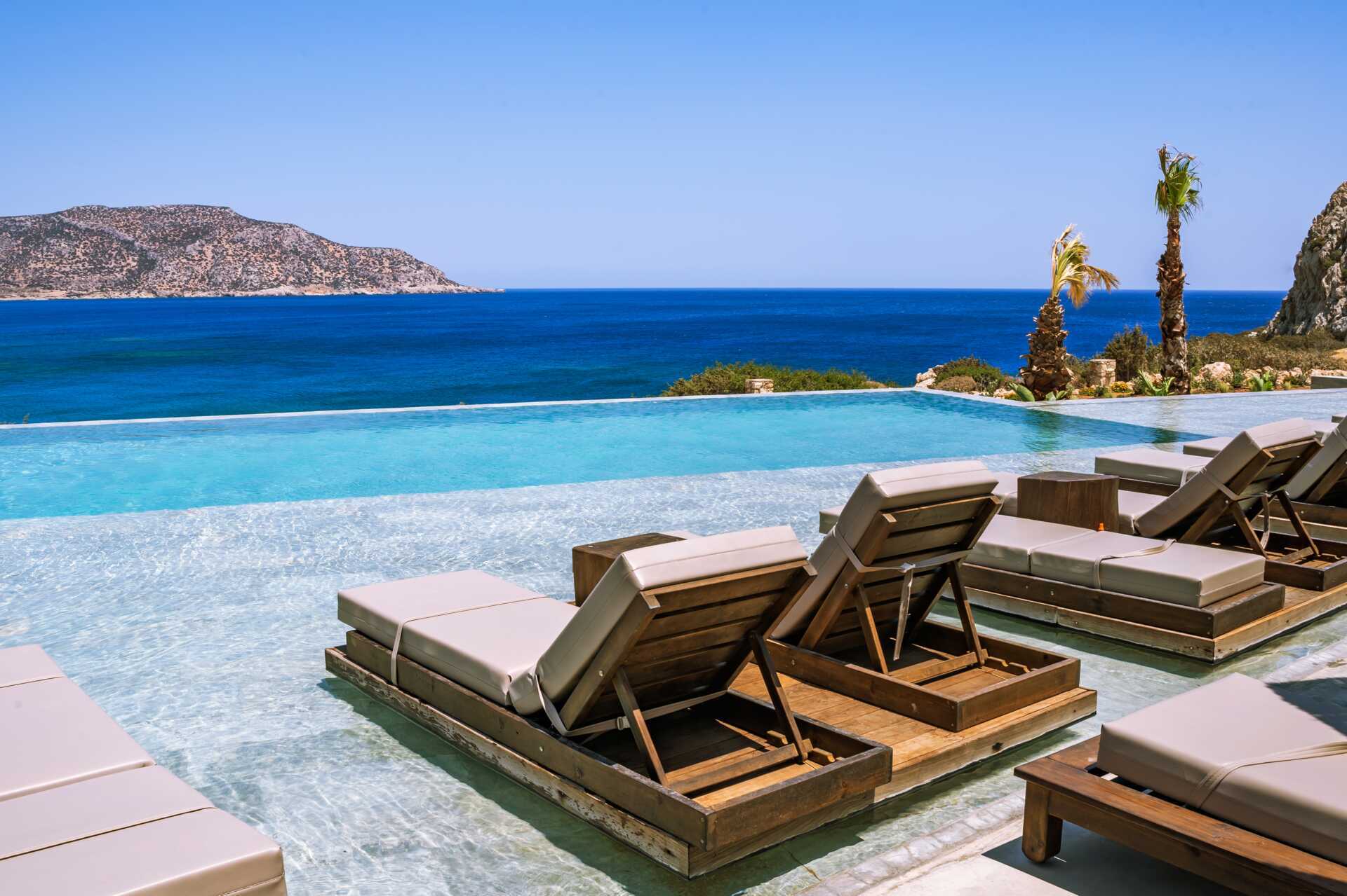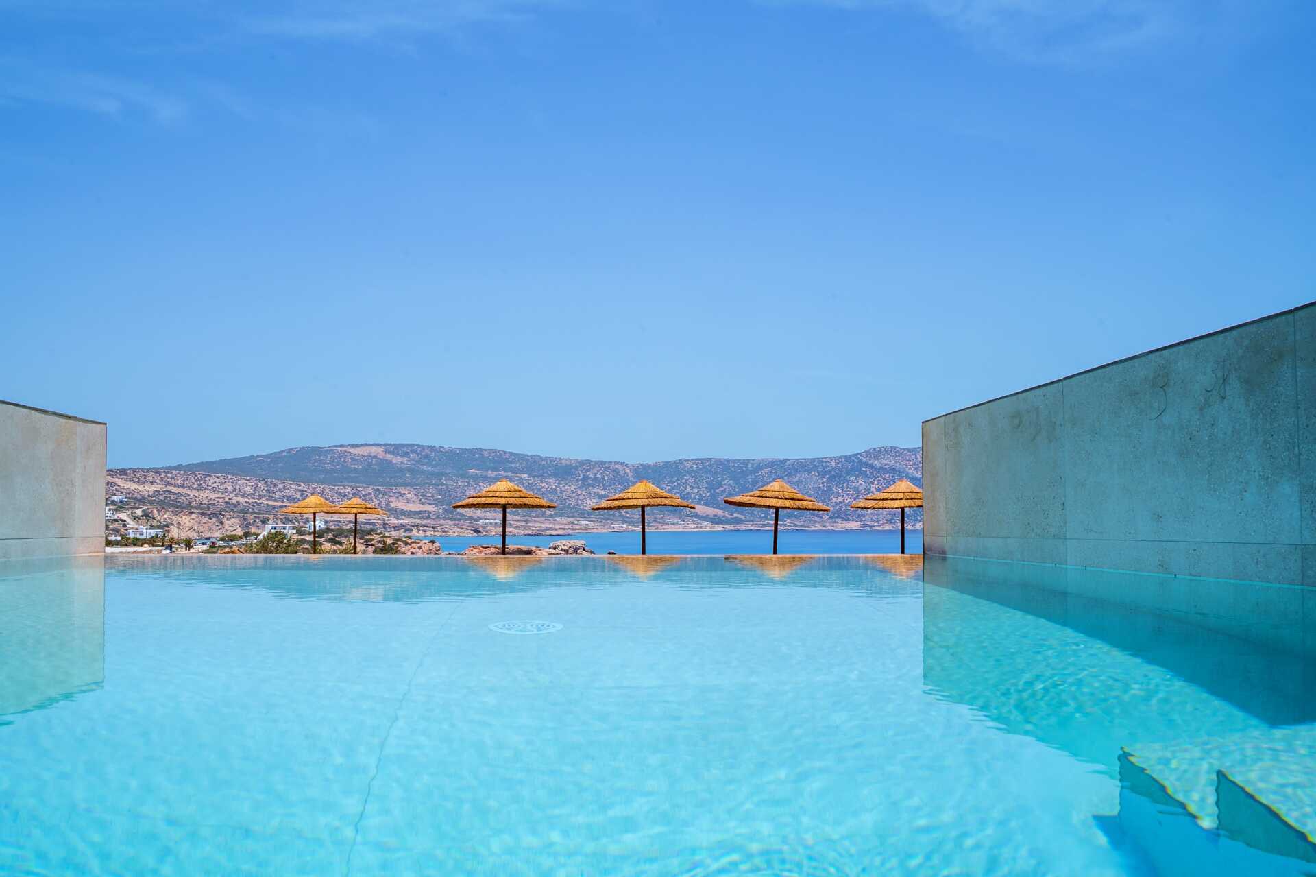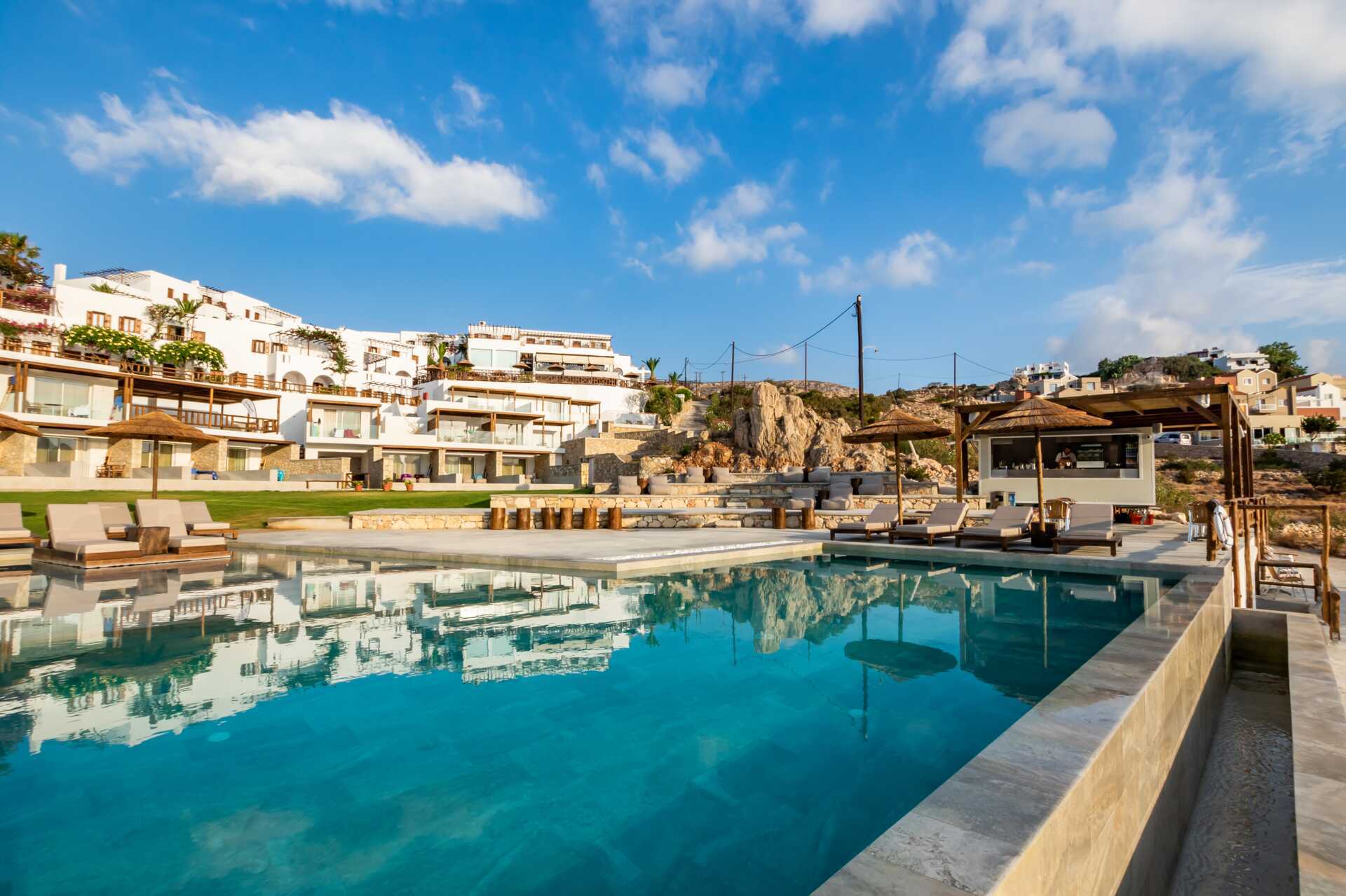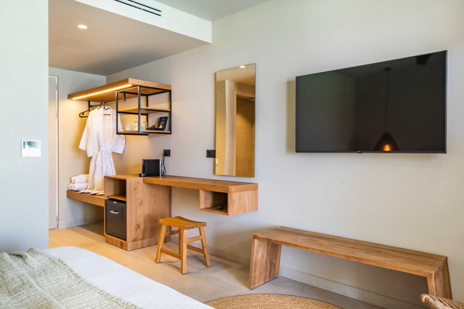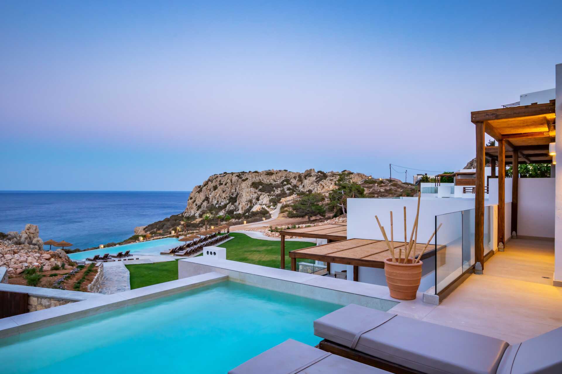 Deluxesuite med eget basseng og havutsikt fra markterrassen. En dobbeltseng. Wifi, safe og luftkondisjonering inkludert. Minibar. Vannkoker samt kaffe og te. Kaffemaskin, fire kaffekapsler inkludert, flere kan kjøpes i hotellbaren. TV. Hårføner. Badekar eller dusj samt wc. Rengjøring 6 ggr/uke.