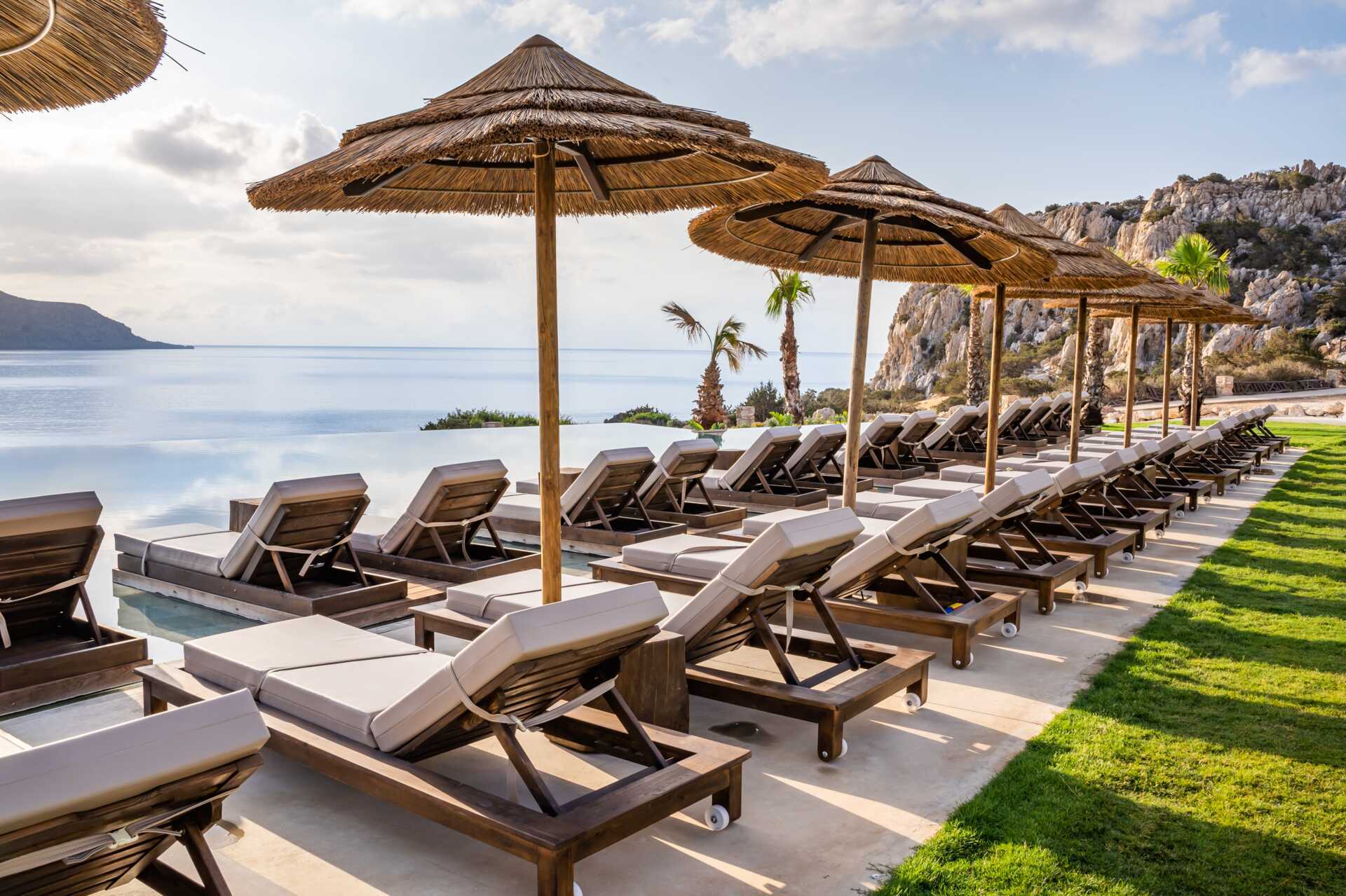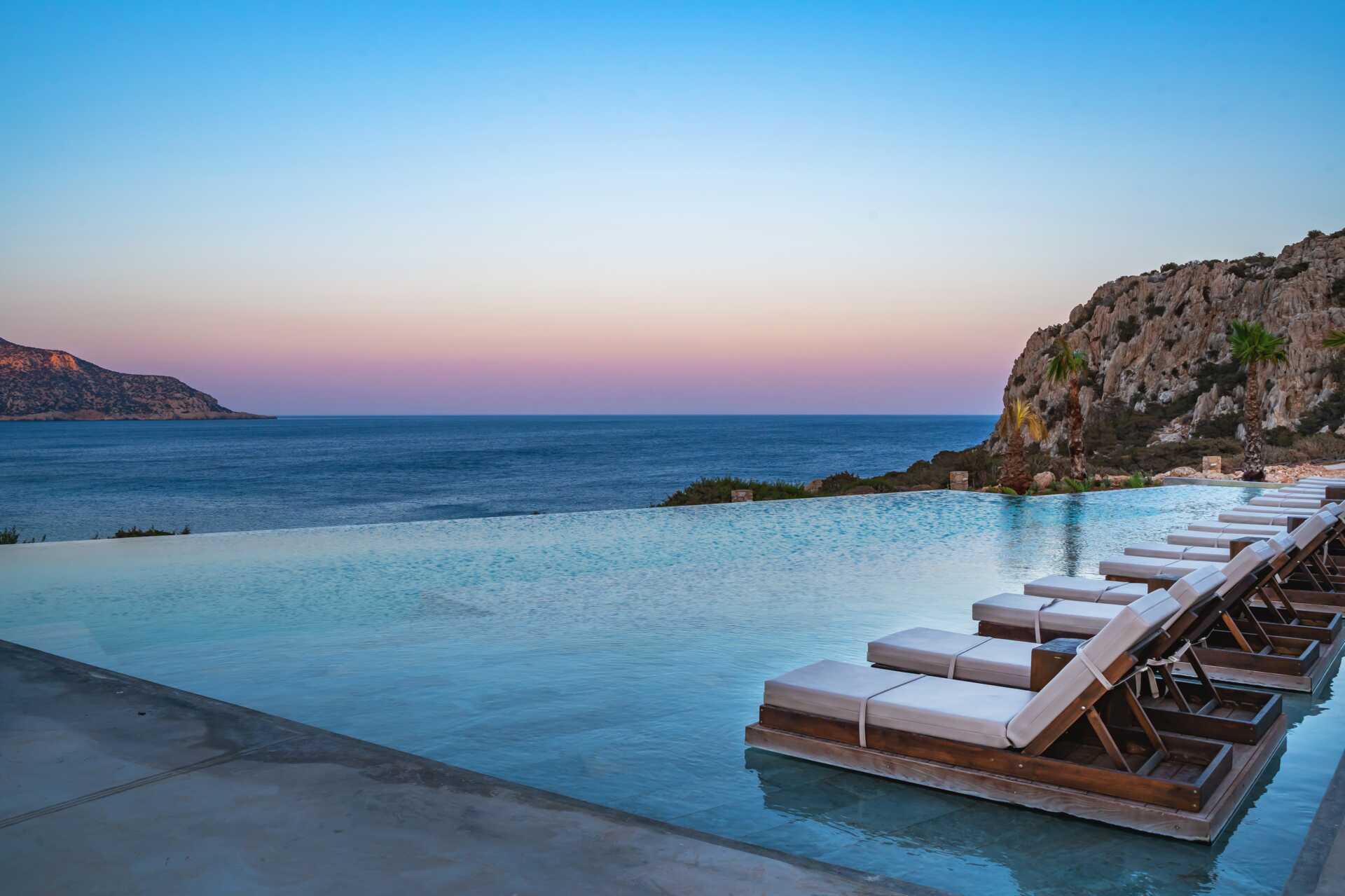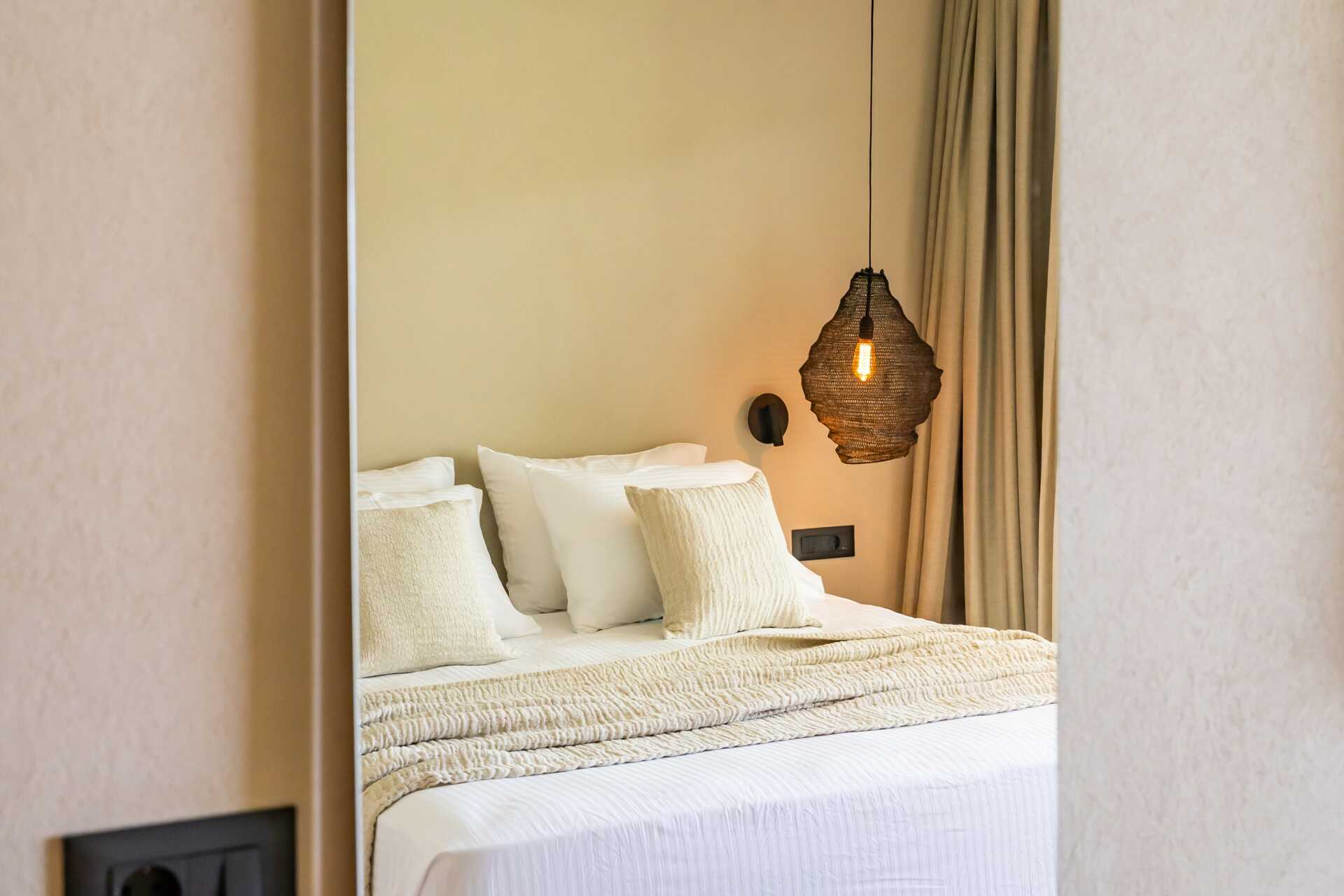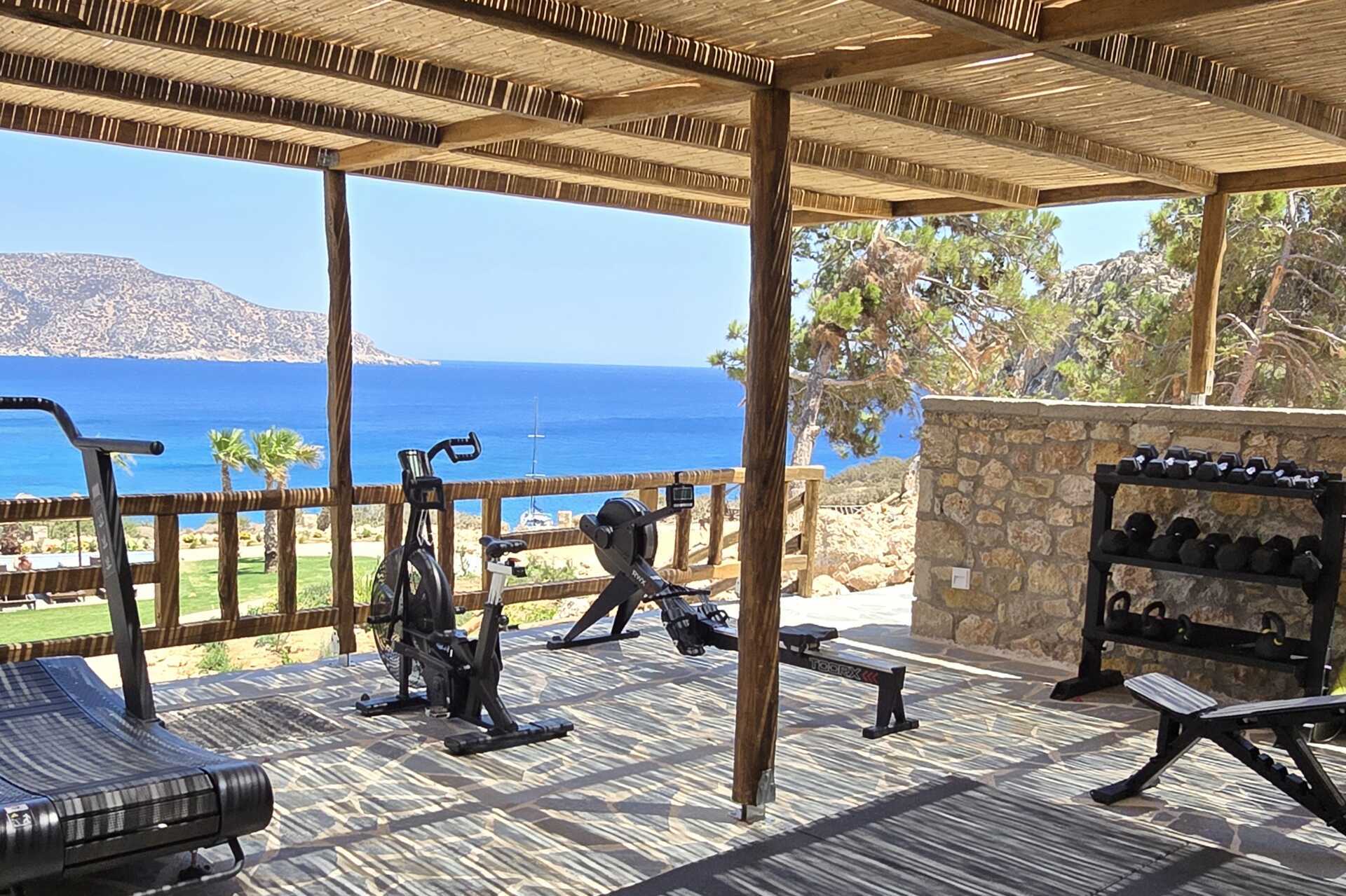 Deluxesuite med eget basseng og havutsikt fra markterrassen. En dobbeltseng. Wifi, safe og luftkondisjonering inkludert. Minibar. Vannkoker samt kaffe og te. Kaffemaskin, fire kaffekapsler inkludert, flere kan kjøpes i hotellbaren. TV. Hårføner. Badekar eller dusj samt wc. Rengjøring 6 ggr/uke.