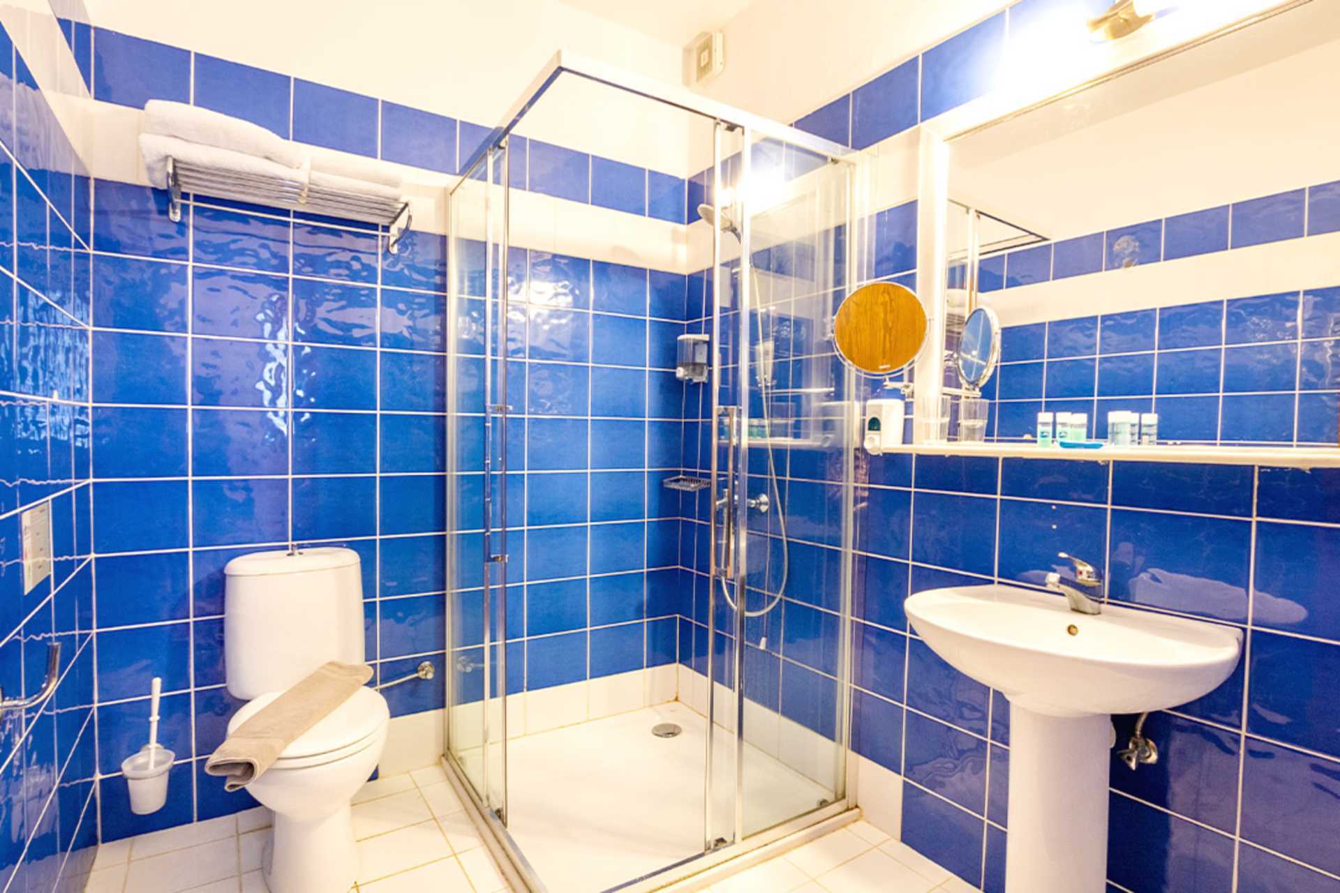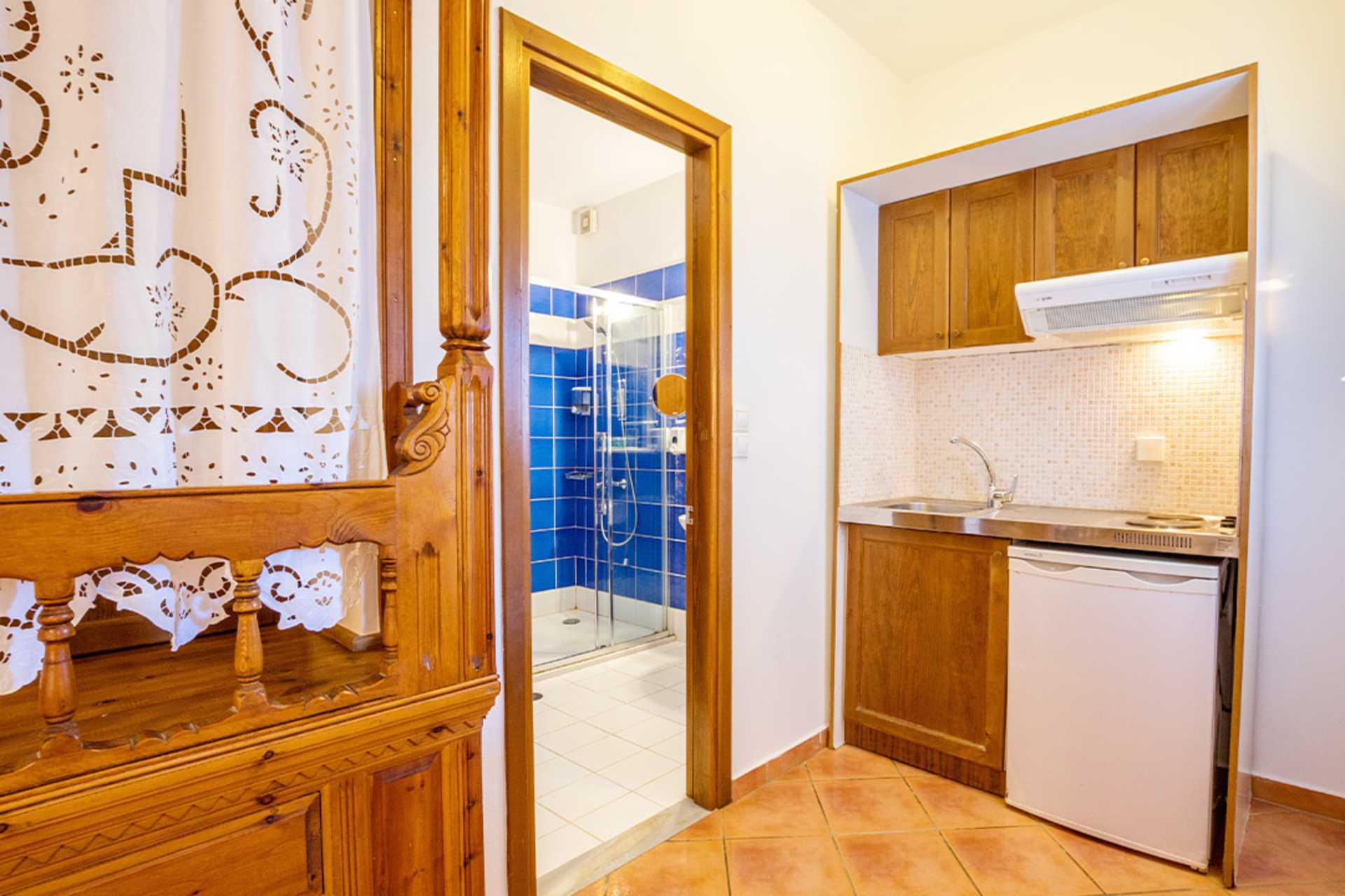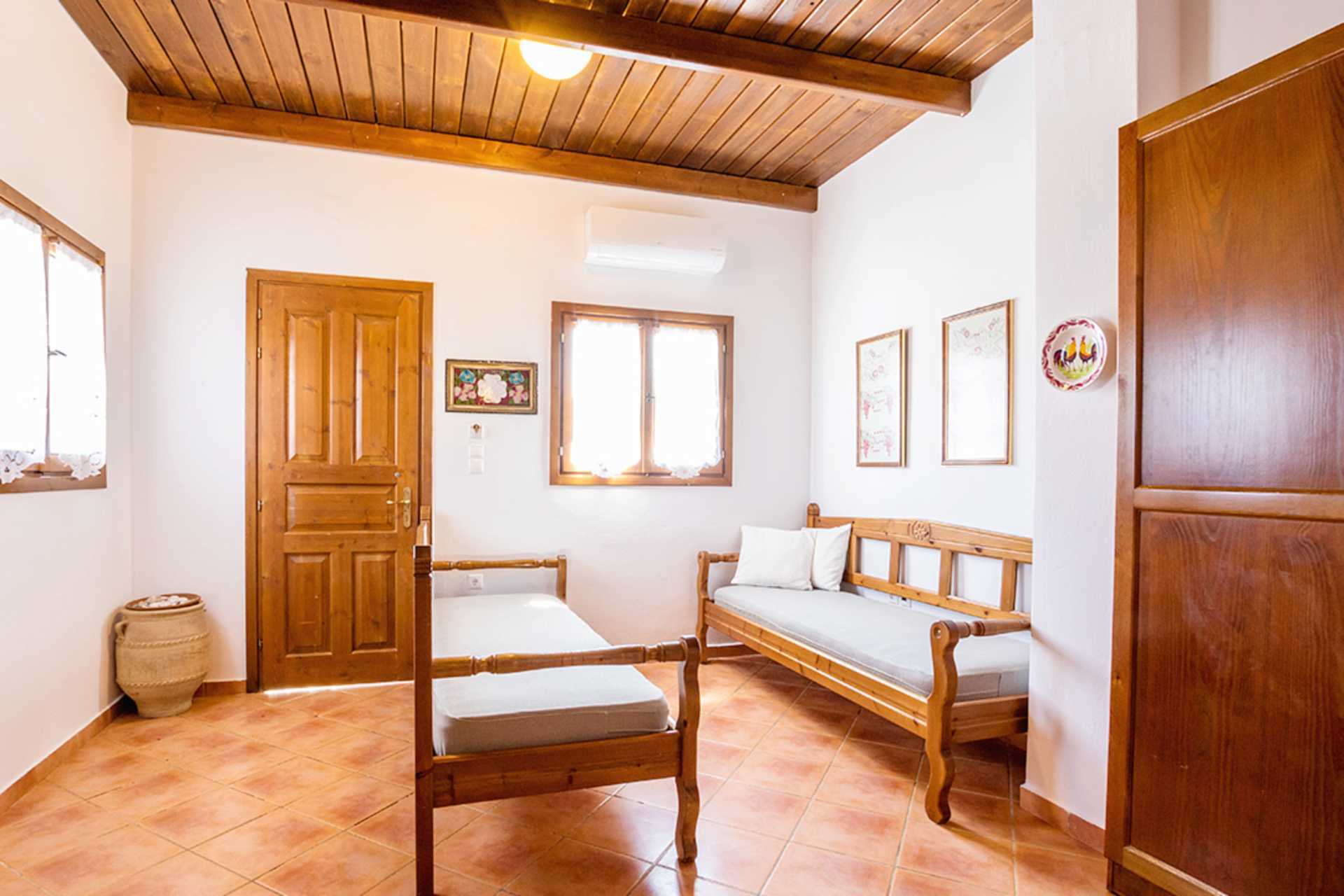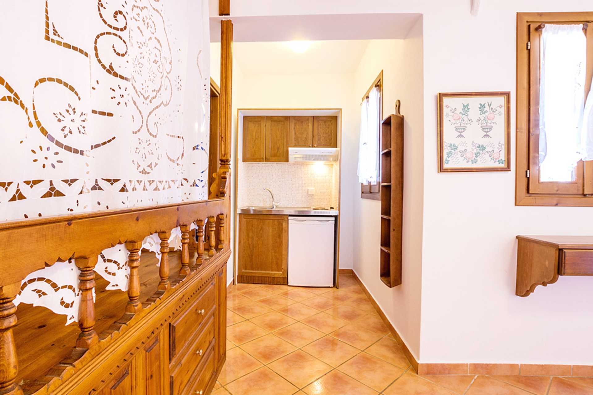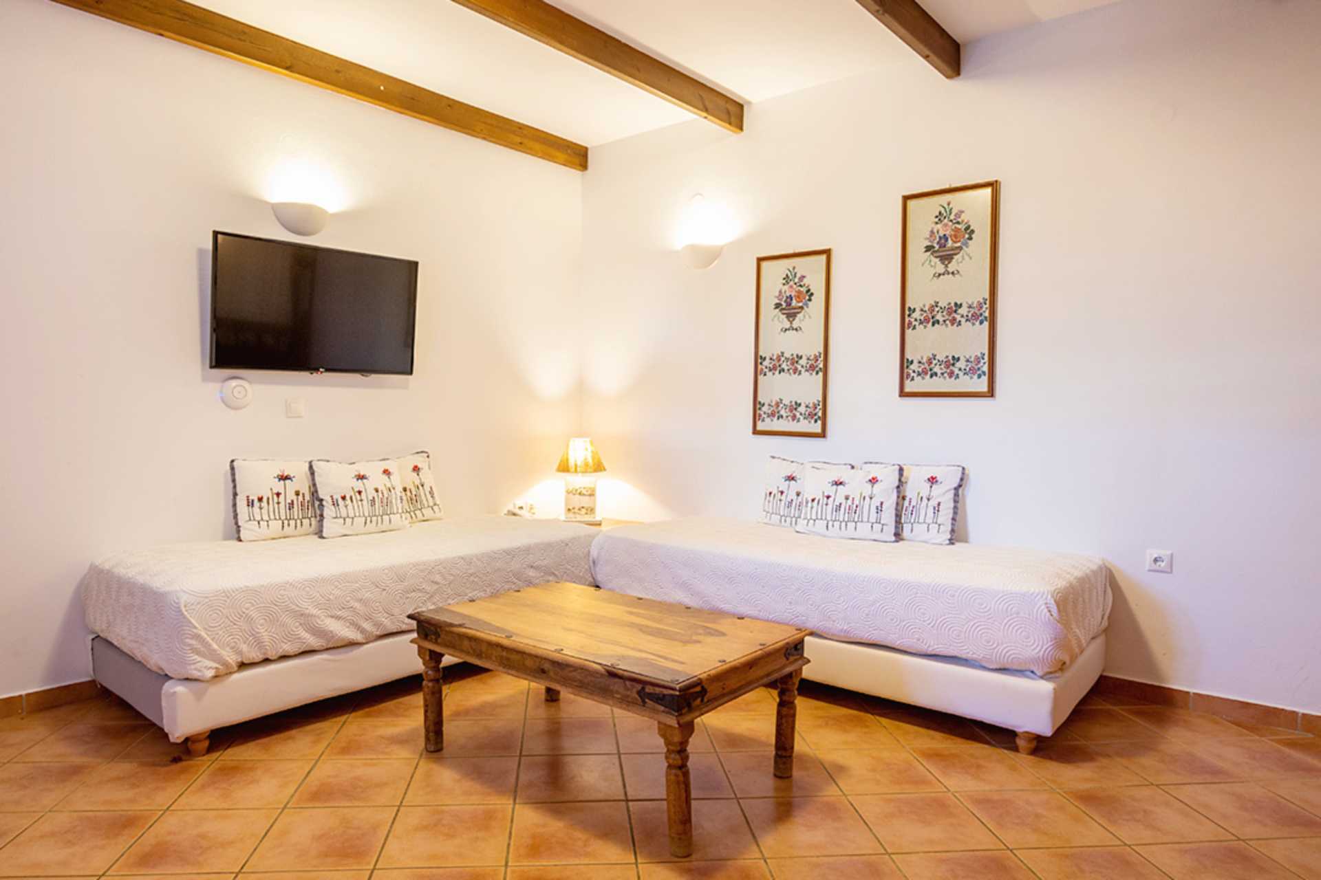 Familierom med balkong eller terrasse og begrenset havutsikt. Familierommet består av to deler i åpen planløsning, en del med stue/minikjøkken og en soveromsdel som nås med få trappetrinn. En dobbeltseng og to enkeltsenger. Ekstraseng i eksisterende senger. Minikjøkken med kokeplater, kjøleskap, vannkoker samt kaffe og te og enkelt kjøkkenutstyr. Kaffemaskin, fire kaffekapsler inkludert, flere kan kjøpes i hotellbaren. Wifi, safe og luftkondisjonering inkludert. TV. Hårføner. Dusj og wc. Rengjøring 6 ggr/uke.