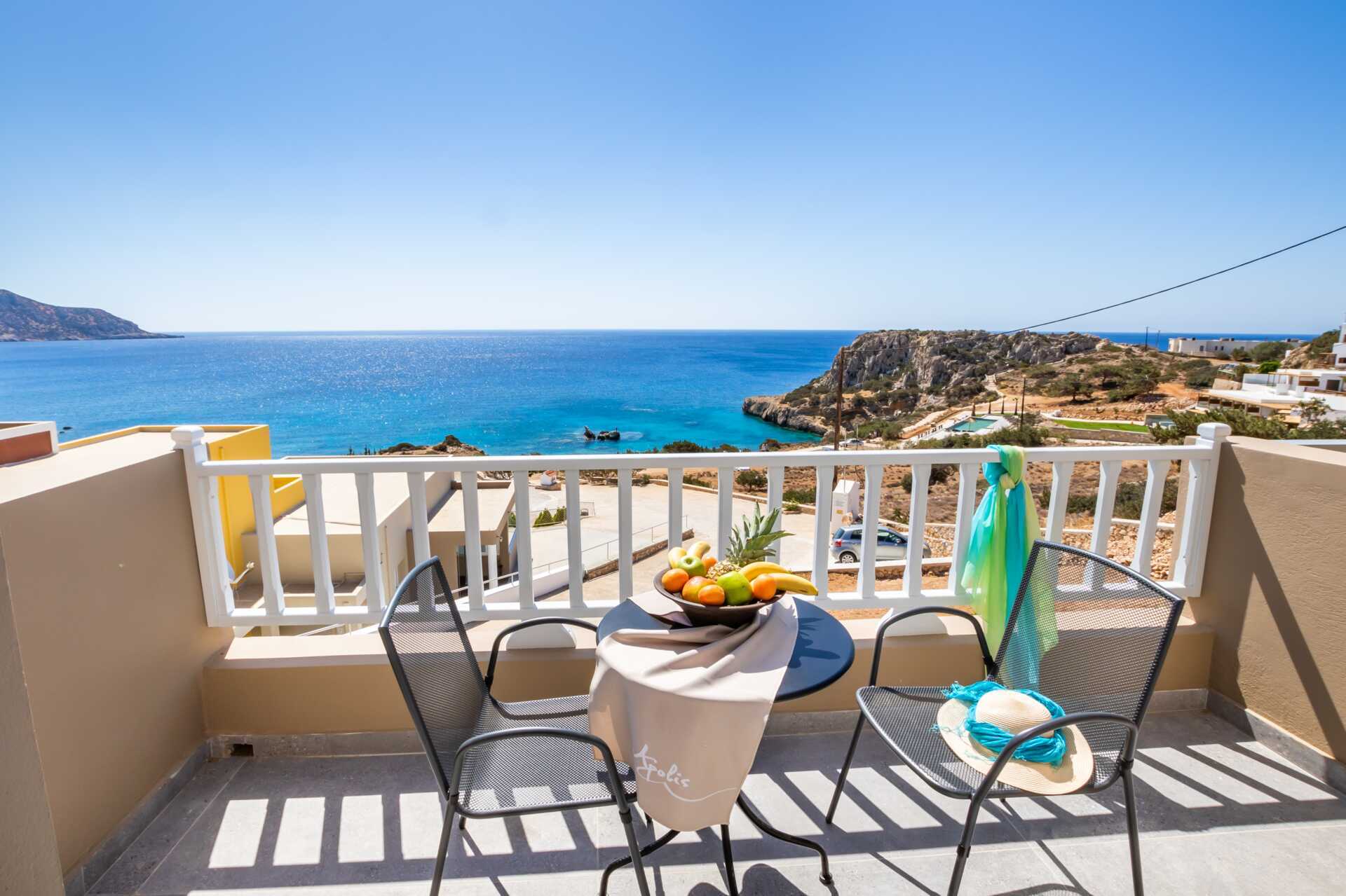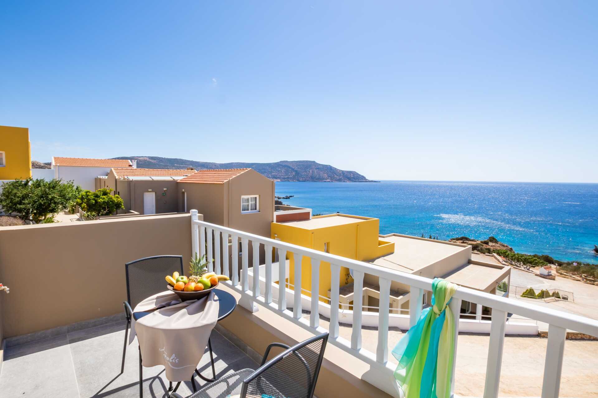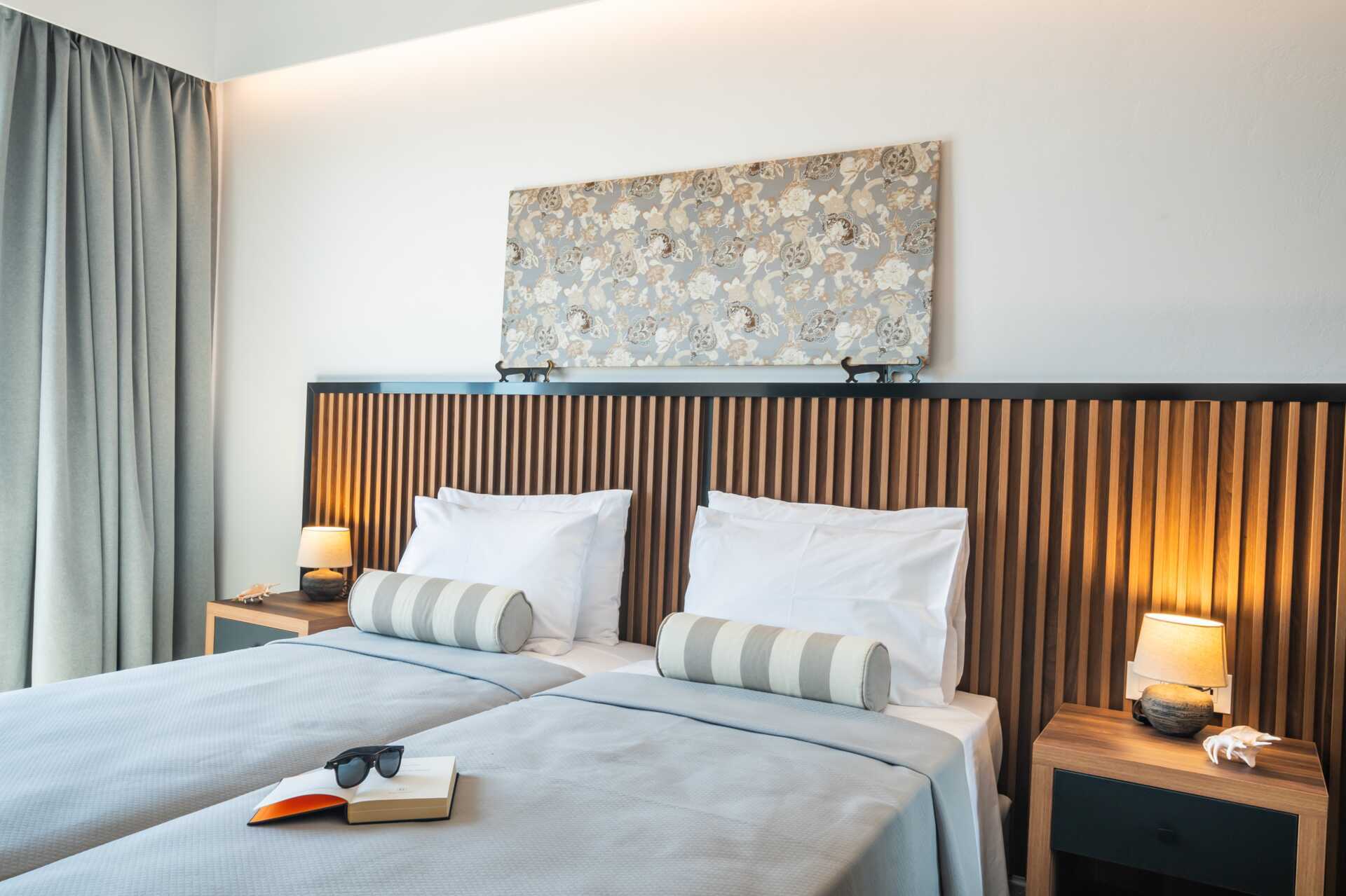 Dobbeltrom med balkong og havutsikt eller begrenset havutsikt. En dobbeltseng og to enkeltsenger. Mulig med ekstrasenger i feltsenger. Wifi, luftkondisjonering og safe inkludert. Kjøleskap. Hårføner. Badekar eller dusj samt wc. Rengjøring 7 ggr/uke.