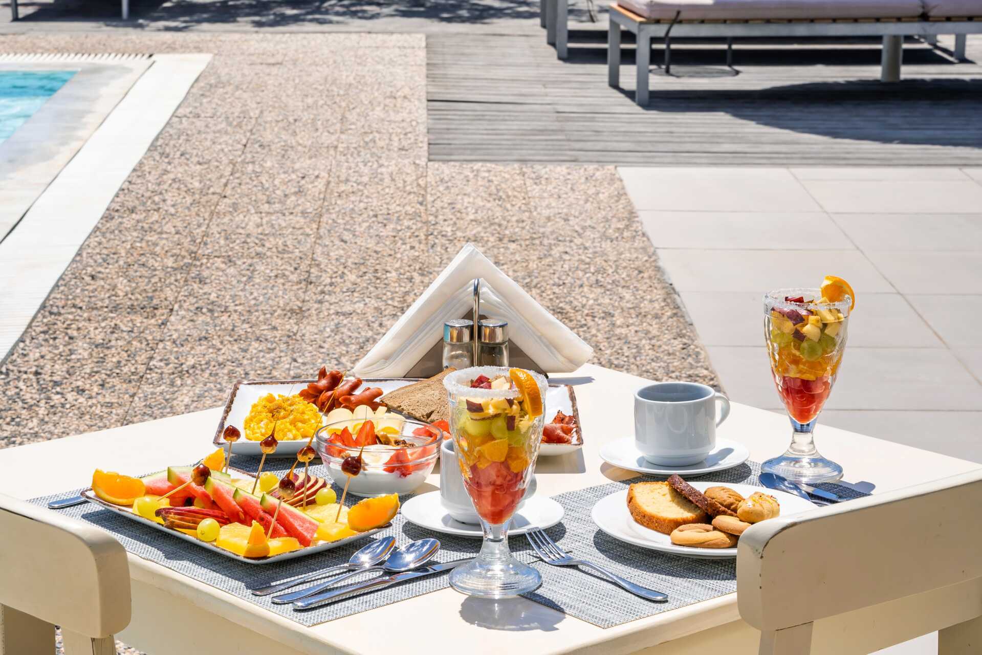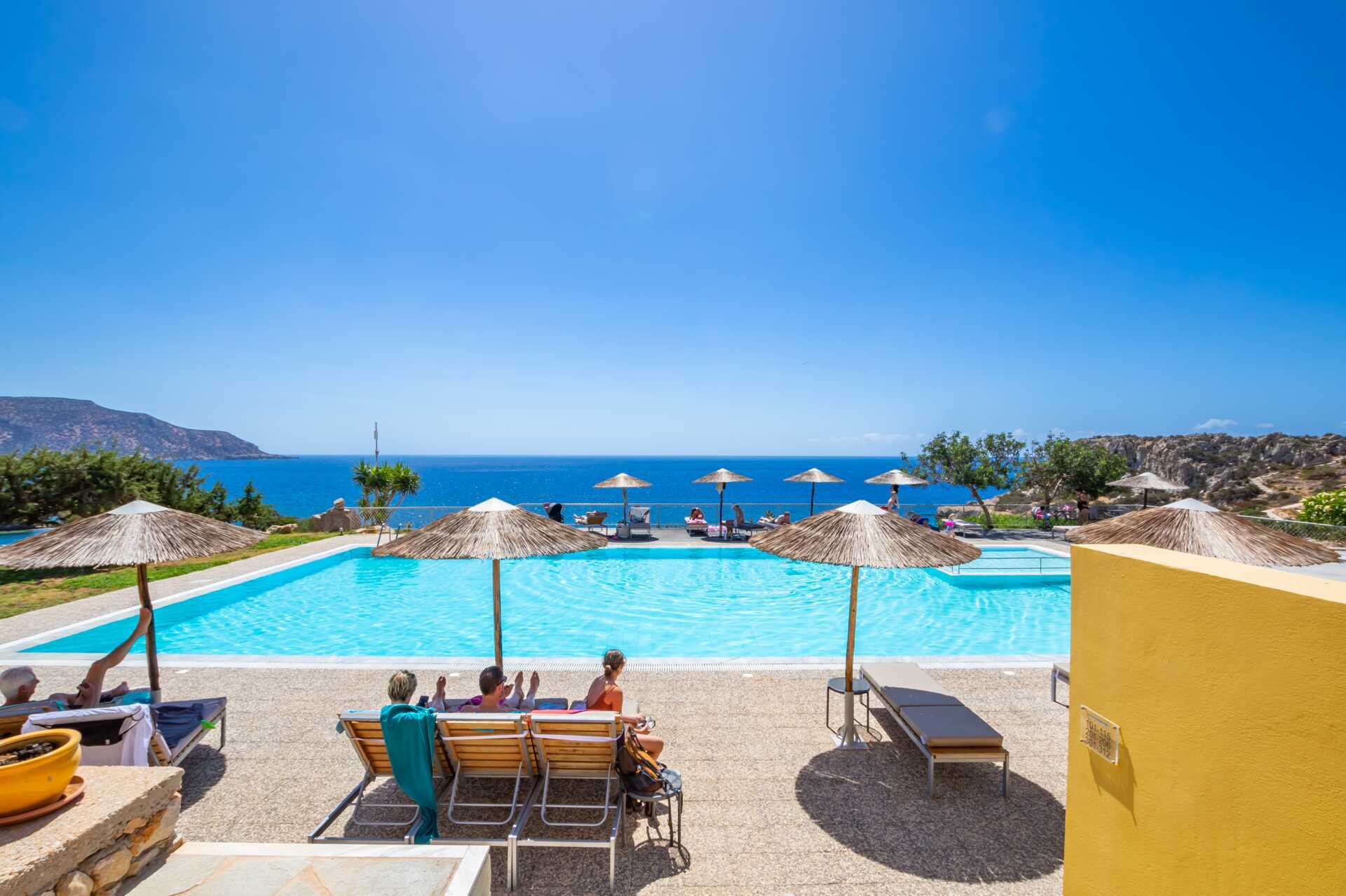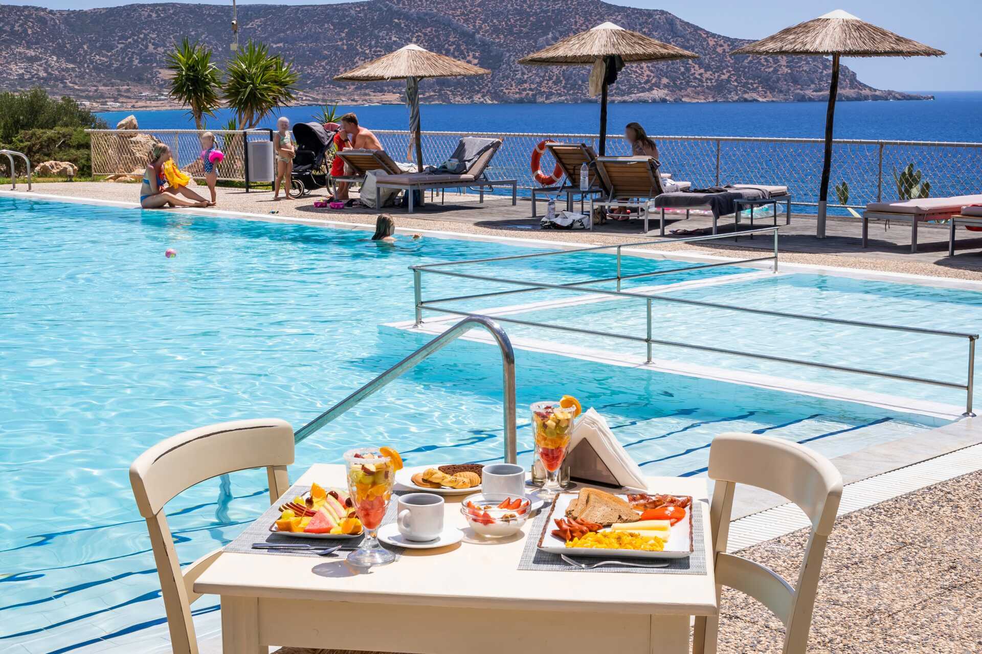 Dobbeltrom med balkong og havutsikt eller begrenset havutsikt. En dobbeltseng og to enkeltsenger. Mulig med ekstrasenger i feltsenger. Wifi, luftkondisjonering og safe inkludert. Kjøleskap. Hårføner. Badekar eller dusj samt wc. Rengjøring 7 ggr/uke.