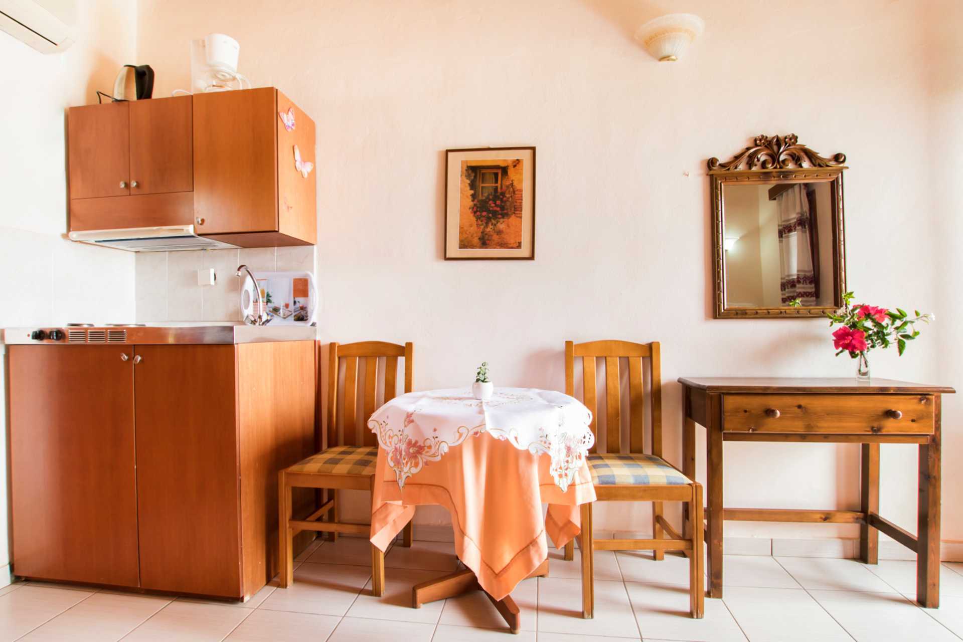 Ettromsleilighet med balkong eller markbalkong. Kombinert soverom og minikjøkken. En dobbeltseng eller to enkeltsenger. Mulig med ekstraseng i feltseng. Minikjøkken med kokeplater, kjøleskap, brødrister og enkelt kjøkkenutstyr. Wifi, luftkondisjonering og safe inkludert. Hårføner. Dusj og wc. Rengjøring 6 ggr/uke.