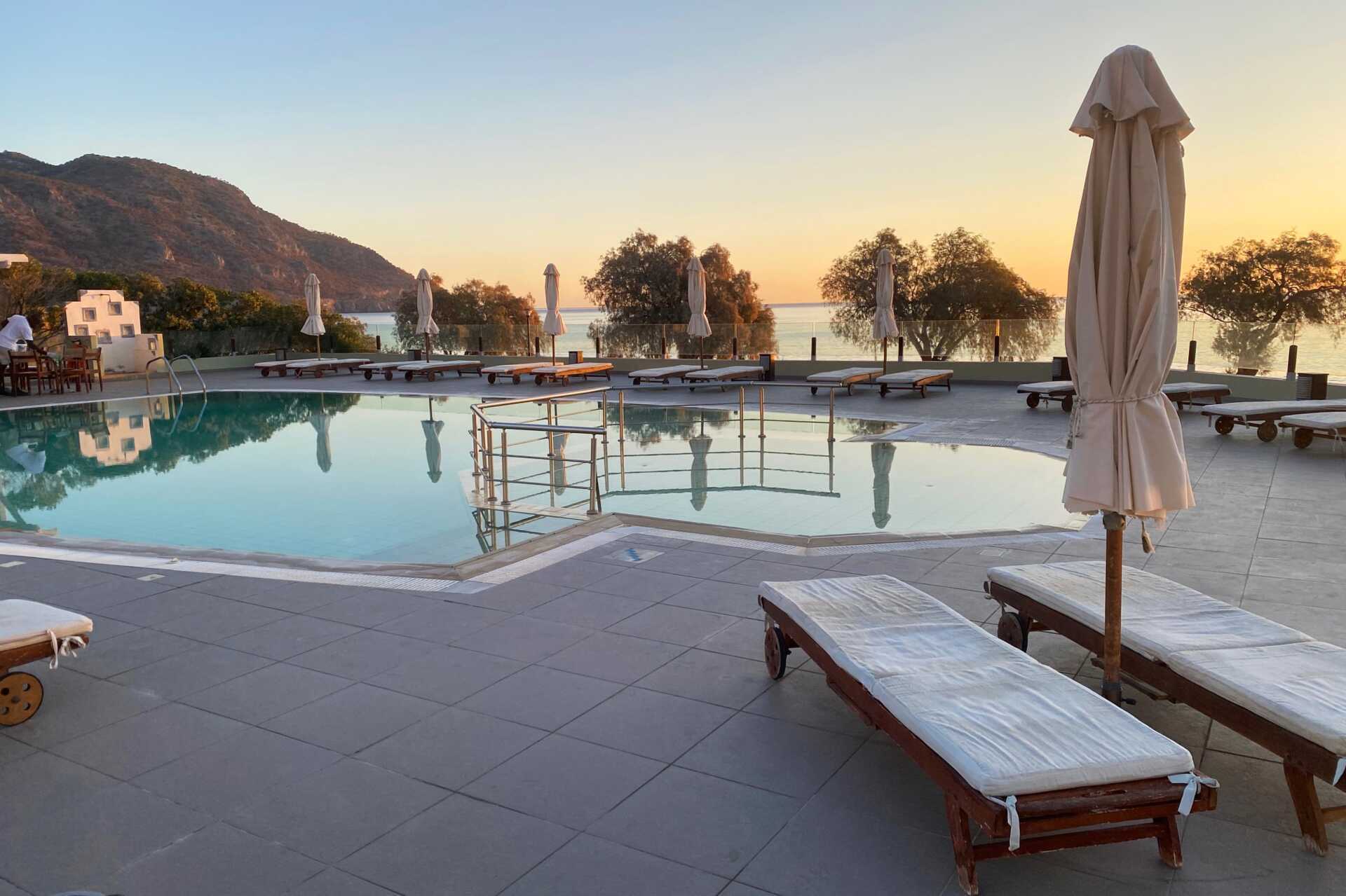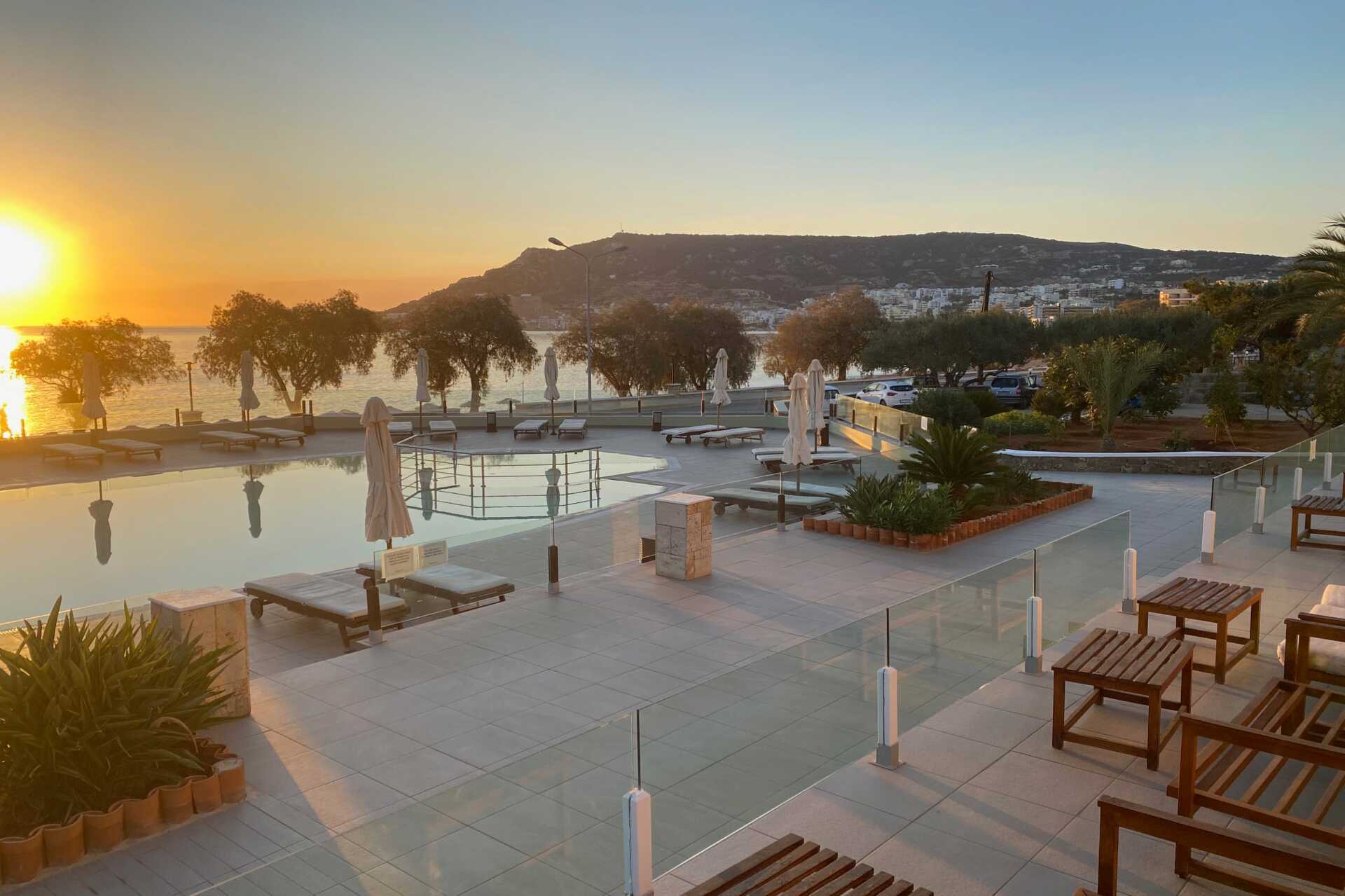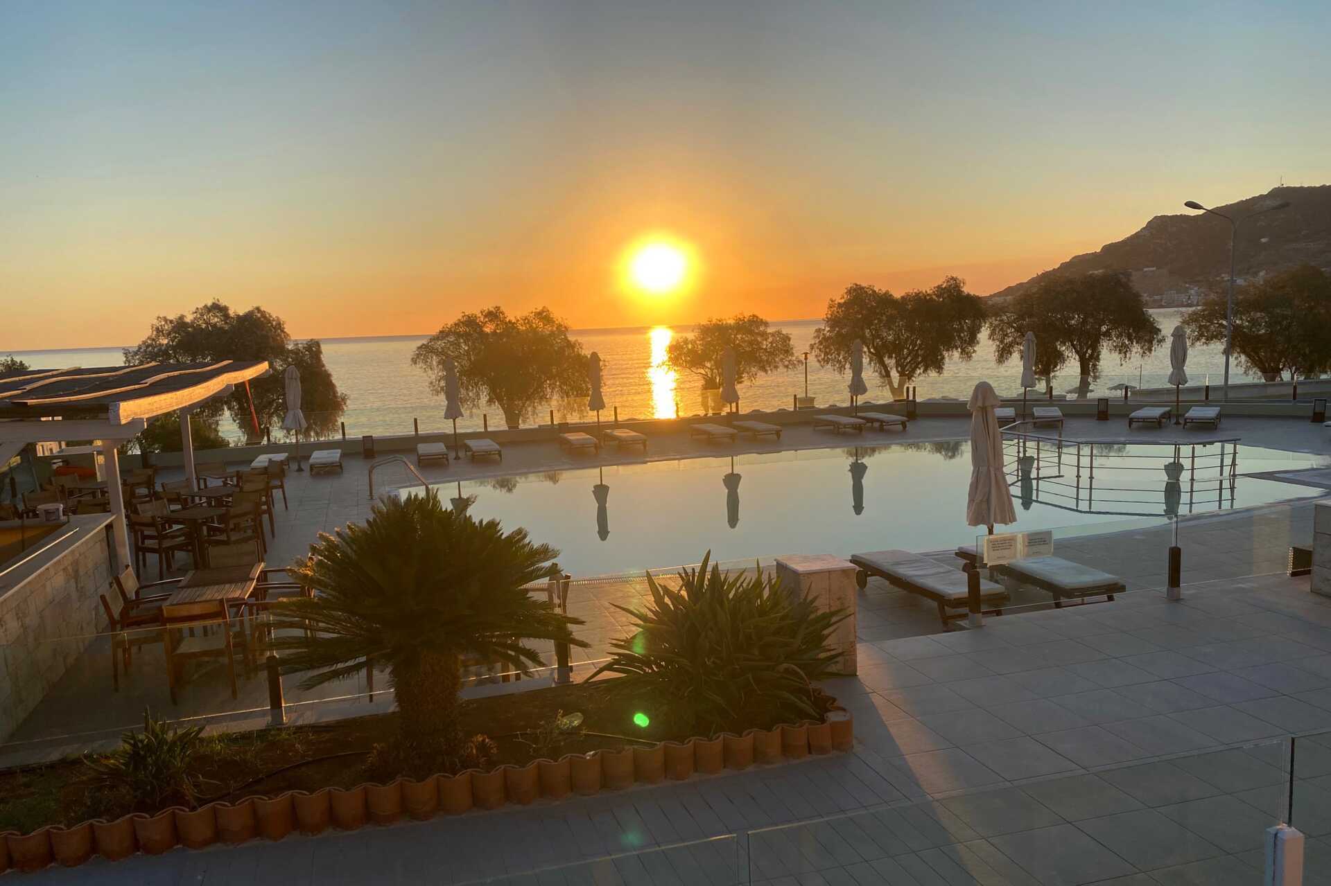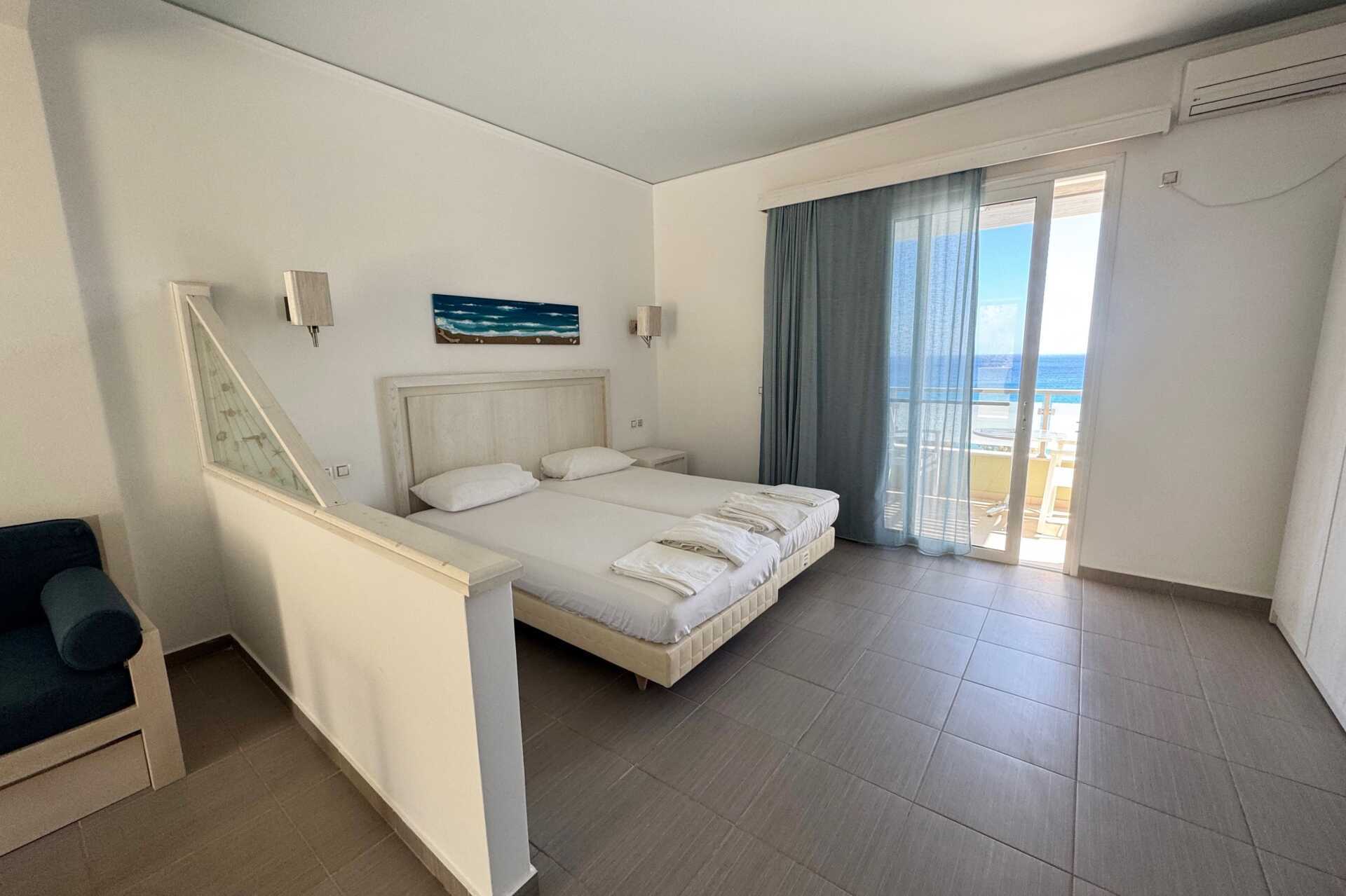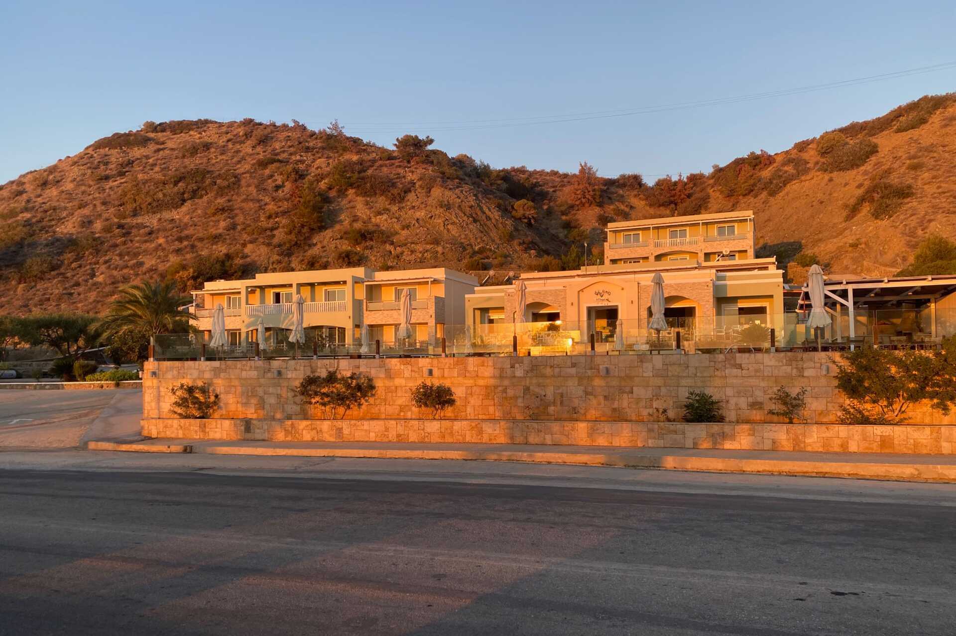 Vi fikk rom helt øverst på hotellet. Mange lange trapper på utsiden vi måtte dra kofferten opp. Det var vanskelig å bade på stranden med store steiner på bunnen som du måtte skli og balansere på for å komme deg i vannet. Dårlig vasking. En ung mann i resepsjonen var konstant sur og grinete. Så han ikke smile en gang. Åpningstidene på hotellets solsenger og basseng var kl 10:00, altfor seint og altfor få senger. Måtte løpe inn akkurat kl 10:00 for å få en solseng. Resepsjonen stengte tidlig og det var svært liten informasjon på hotellet.