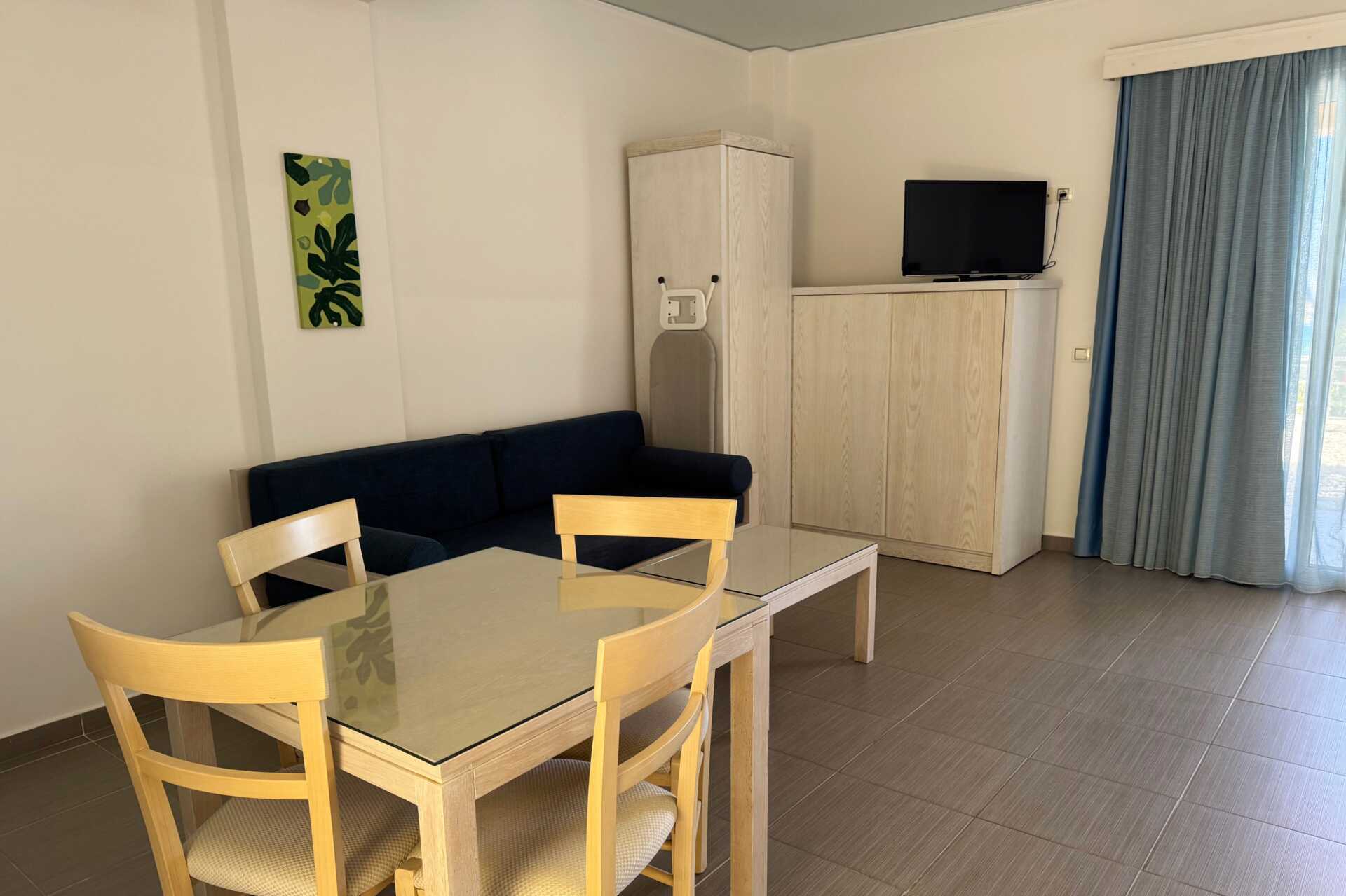 Toromsleilighet med markterrasse. Et soverom og stue med minikjøkken. To enkeltsenger. Mulig med en ekstraseng i sovesofa. Minikjøkken med komfyr, kjøleskap, kaffetrakter, vannkoker, juice presse, brødrister, sandwichgrill, elvisp og enkelt kjøkkenutstyr. Luftkondisjonering og safe inkludert. Strykejern og strykebrett. TV. Hårføner. Baderom med dusj og wc. Rengjøring 6 ggr/uke. Toromsleilighetene har små vinduer som sitter litt høyt på veggen, og noen toromsleiligheter har en vanlig dør (ikke glass) ut mot terrassen.