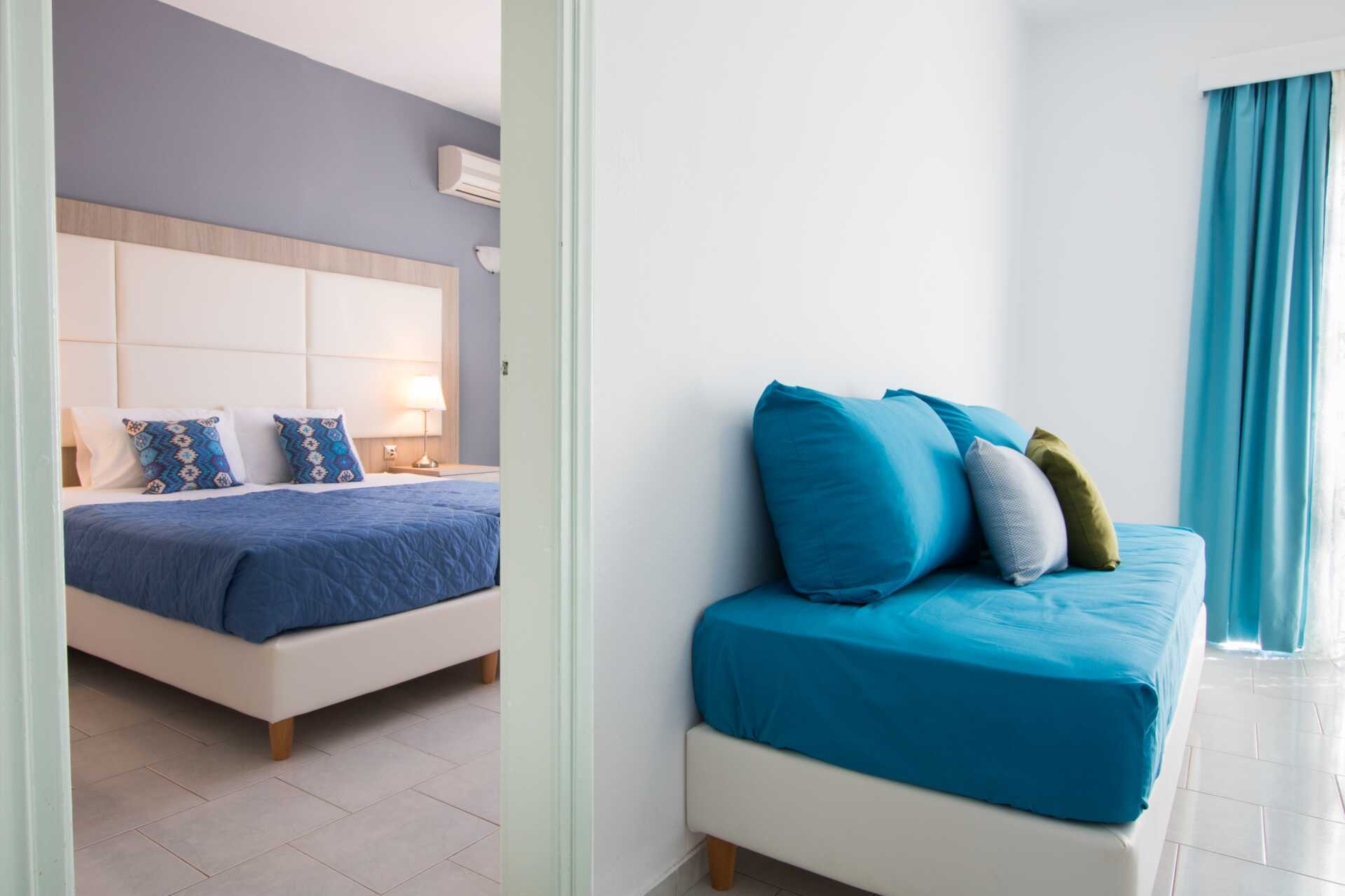 Toromsleiligheter med balkong og havutsikt eller med markterrasse. Et soverom og stue med minikjøkken. To enkeltsenger. Mulig med ekstrasenger i sovesofa og i en enkeltseng. Minikjøkken med kjøleskap, kokeplater, stekeovn, vannkoker og enkel kjøkkenutstyr. Wifi inkludert. Depositum og air condition mot avgift. Dusj og wc. Rengjøring 6 ggr/uke.