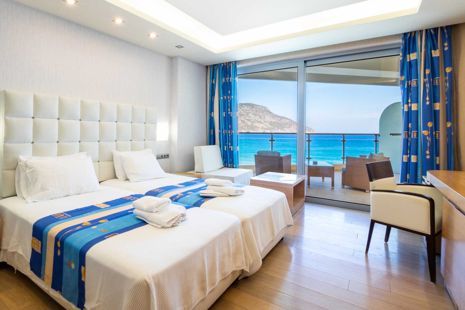 Konstantinos Palace ligger rett ved stranden og består av en eldre og en nyere del, fra henholdsvis 2010 og 2021.