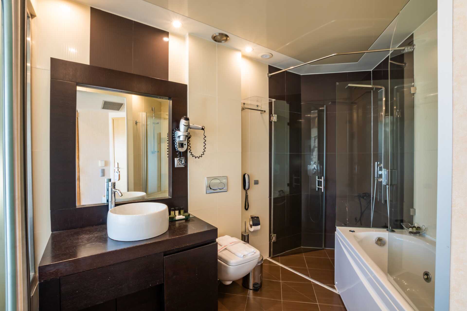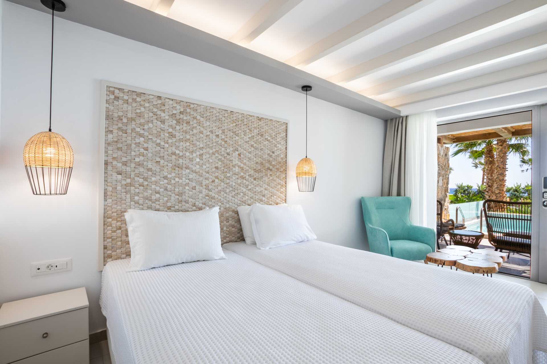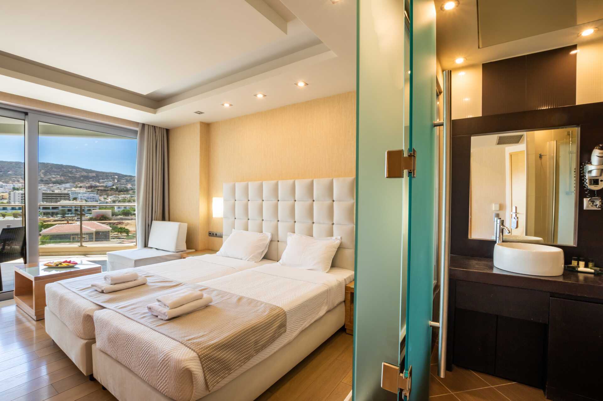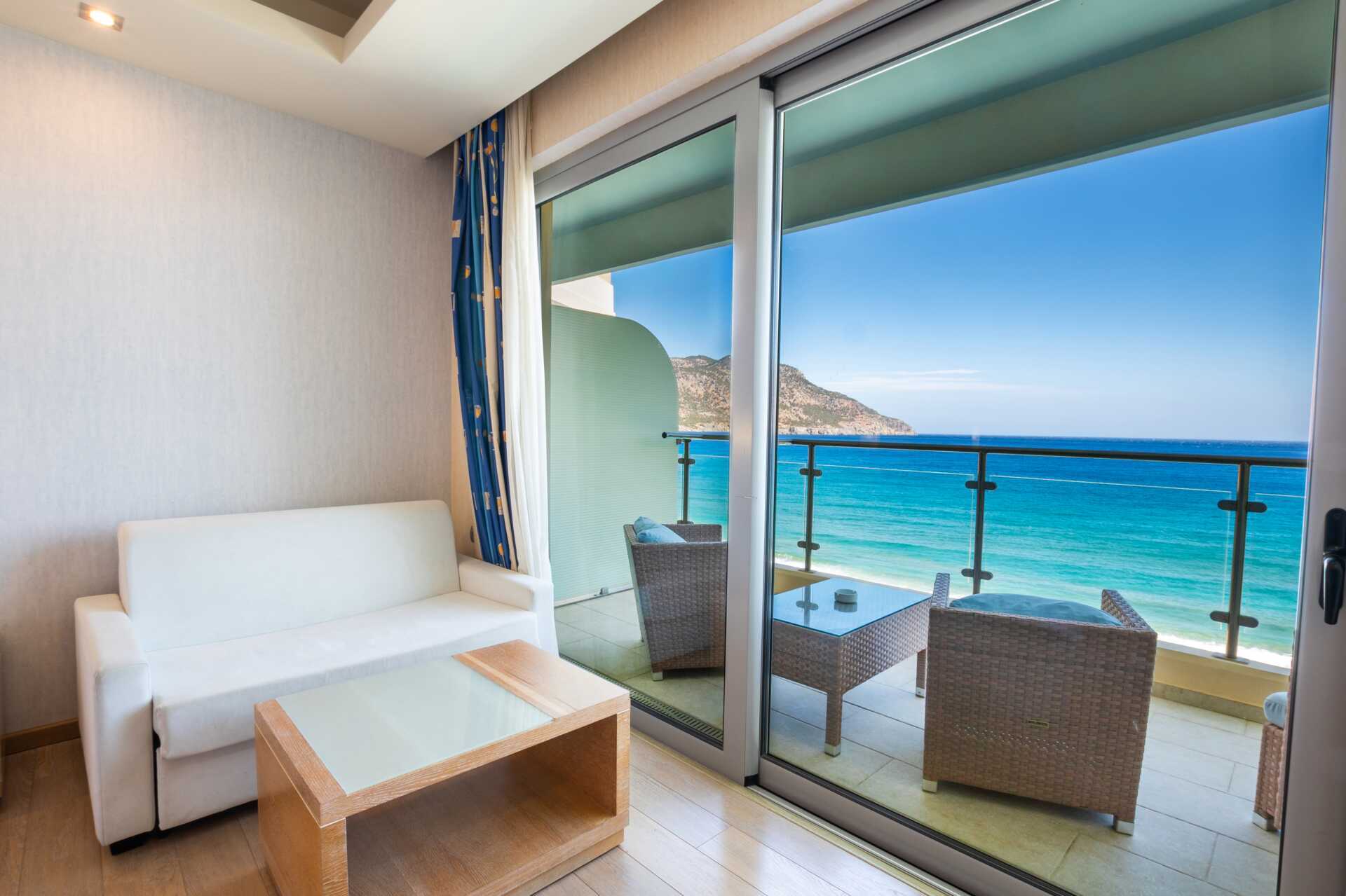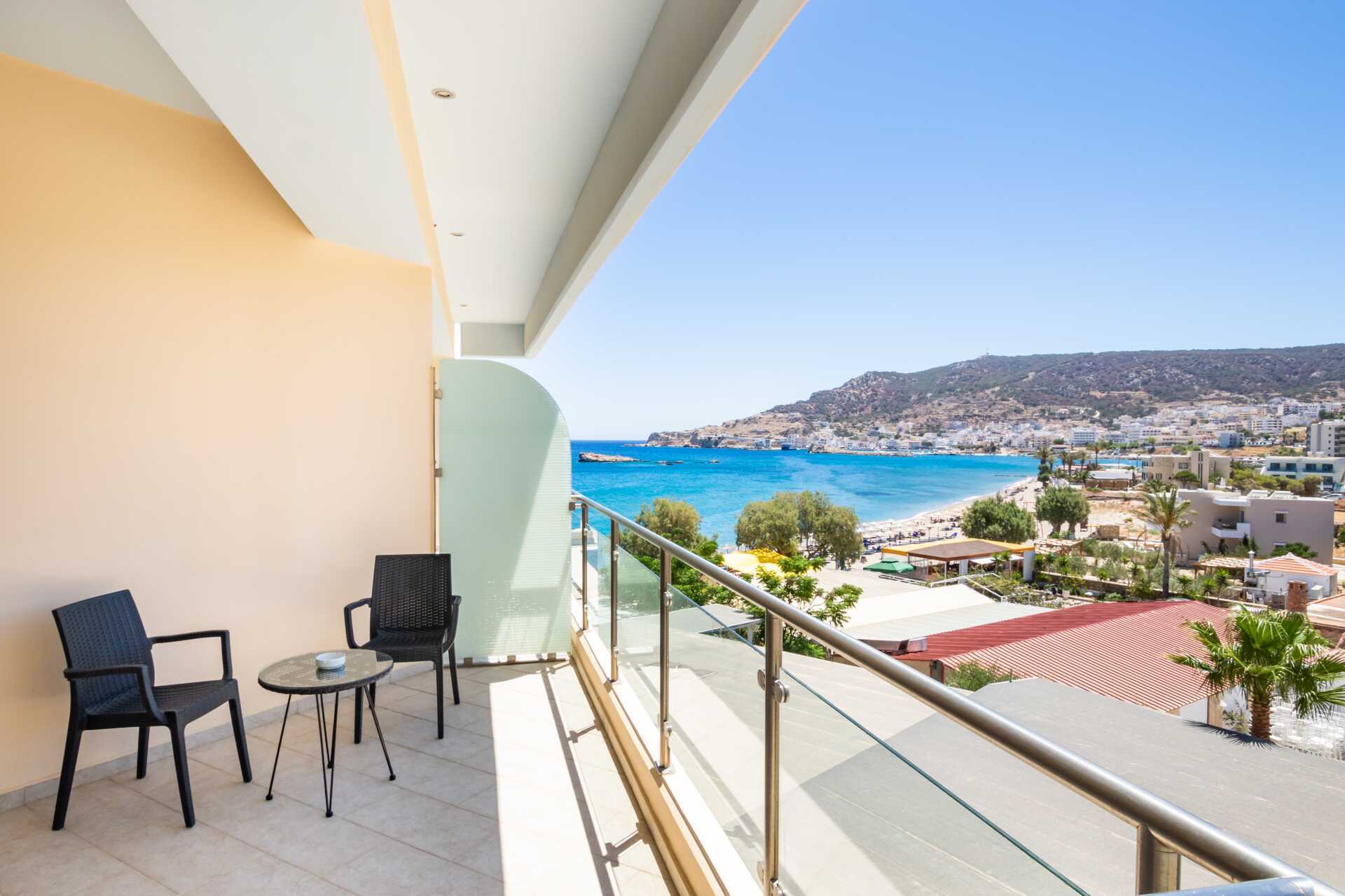 Superiorrom med balkong og havutsikt. En dobbeltseng eller to enkeltsenger. Mulig med ekstraseng i oppredbar lenestol. Luftkondisjonering og wifi inkludert. Safe mot depositum. Kjøleskap. TV. Hårføner. Badekåper og tøfler Baderom med badekar eller dusj samt wc. Rengjøring 7 ggr/uke. Barn under 2 år regnes inn i maksantallet i rommet.