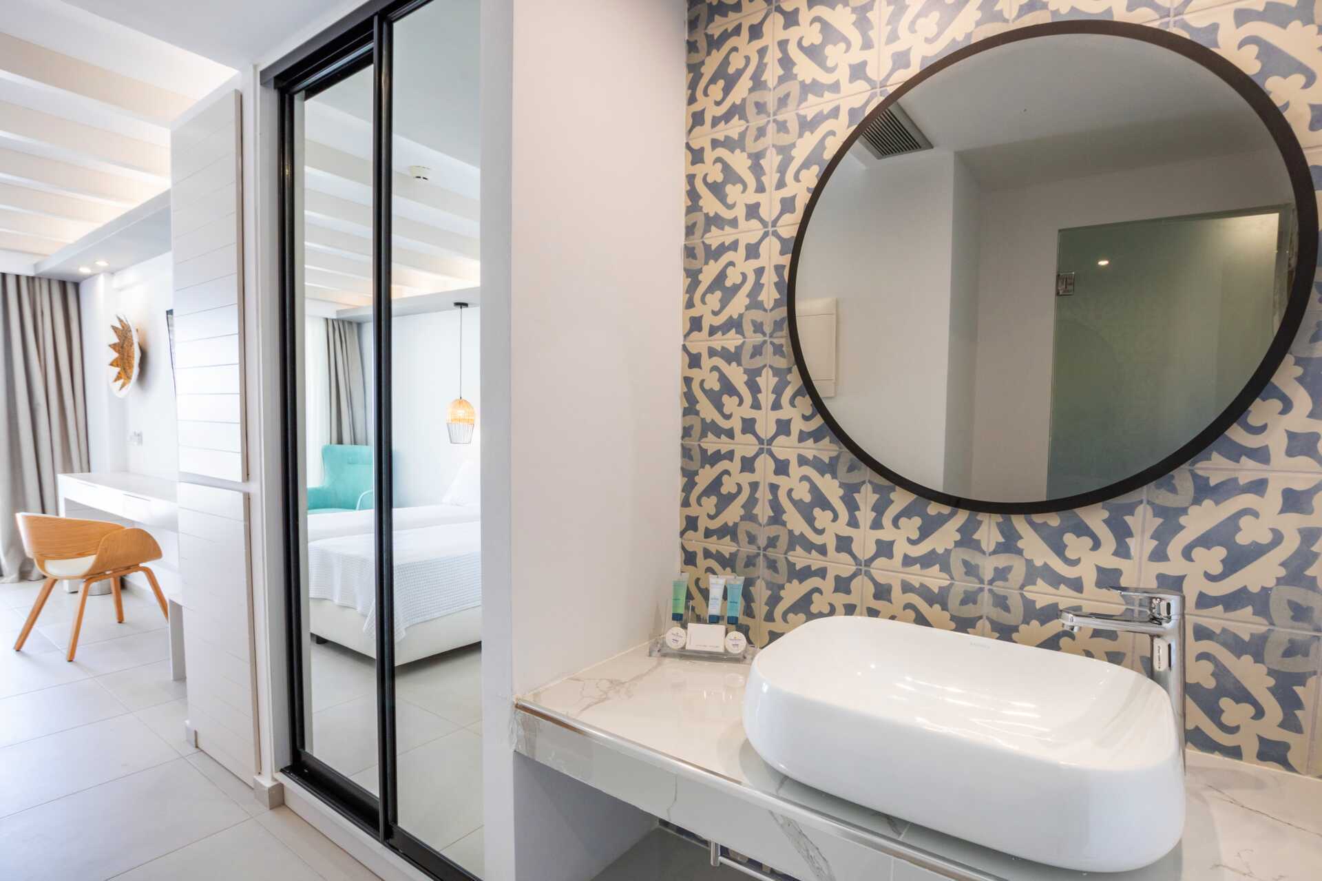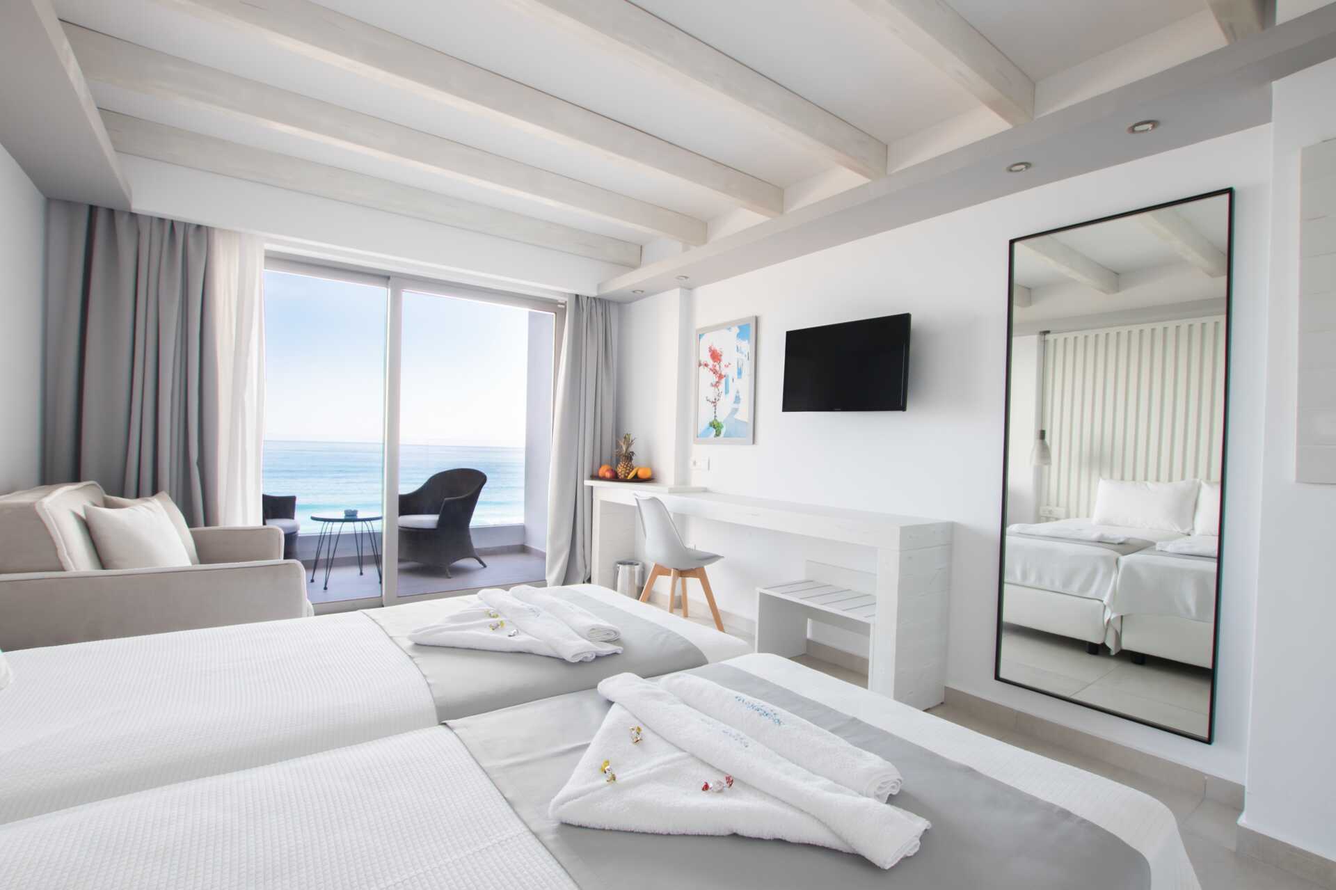 Dobbeltrom med balkong, noen med havutsikt og noen med begrenset havutsikt. En dobbeltseng eller to enkeltsenger. Mulig med en ekstraoppredning i sovesofa. Luftkondisjonering og wifi inkludert. Safe mot depositum. Kjøleskap. TV. Hårføner. Badekåper og tøfler Baderom med badekar eller dusj samt wc. Rengjøring 7 ggr/uke. Barn under 2 år regnes inn i maksantallet i rommet.