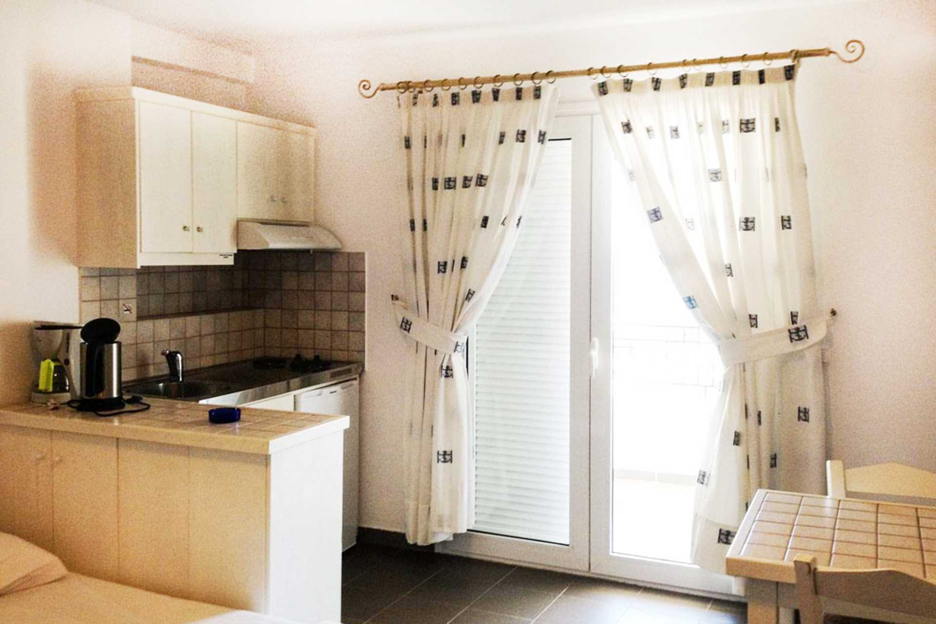 Toromsleilighet med balkong,varierte størrelser, noen med begrenset havutsikt. Et soverom og en stue med minikjøkken. En dobbeltseng. Mulig med ekstraseng i sovesofa eller feltseng. Minikjøkken med kokeplater, kjøleskap, vannkoker, kaffetrakter og enkelt kjøkkenutstyr. Wifi, luftkondisjonering og safe inkludert. TV. Hårføner. Dusj og wc. Rengjøring 6 ggr/uke.