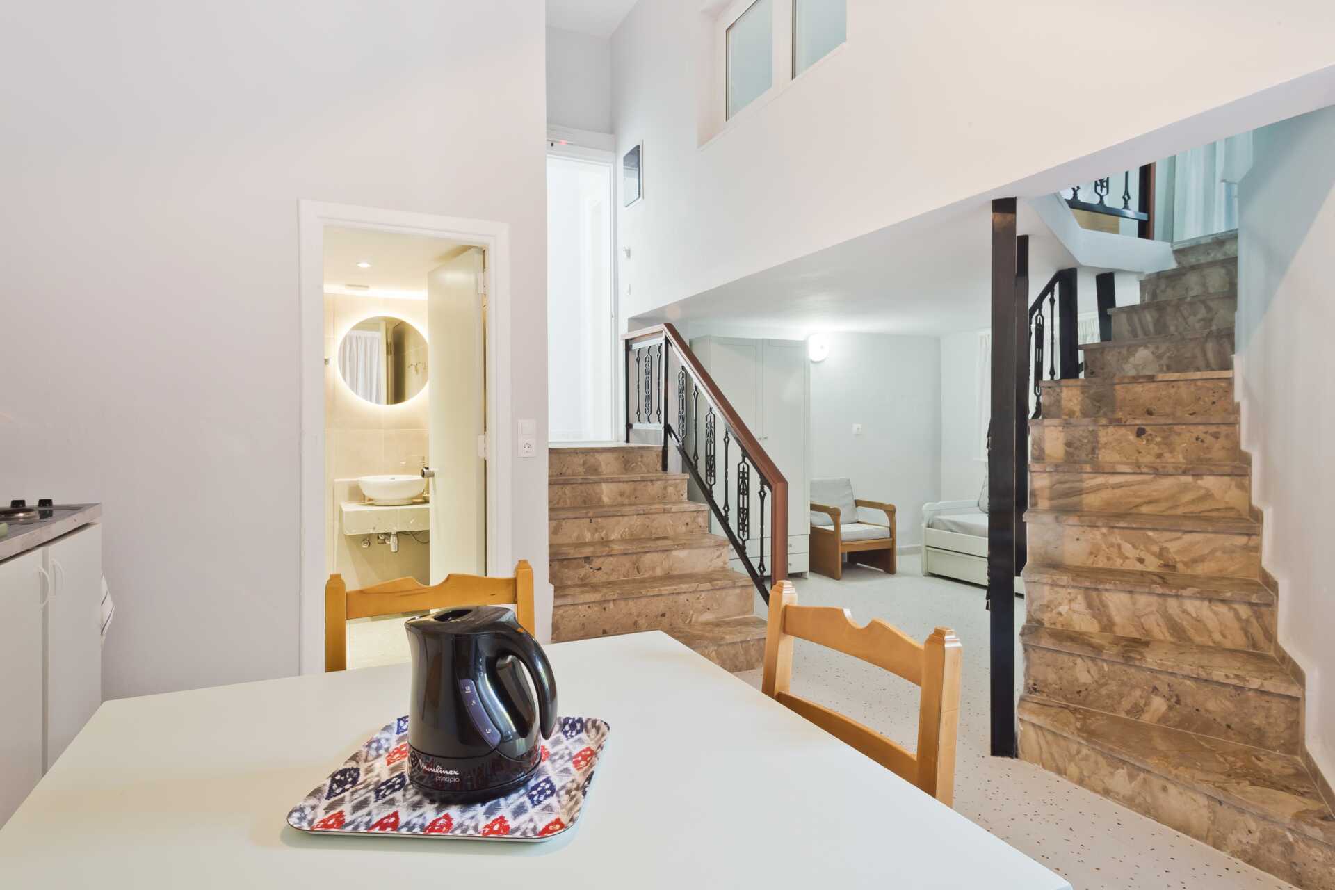 Ettromsleilighet i etasje med markterrasse. I entréetasjen er det kombinert stue med minikjøkken, bad og ekstrasenger for to personer. En trapp opp er det sovehems med en dobbeltseng. Minikjøkken med kokeplater, kjøleskap, vannkoker og enkelt kjøkkenutstyr. Wifi, luftkondisjonering og safe inkludert. Dusj og wc. Rengjøring 6 ggr/uke.