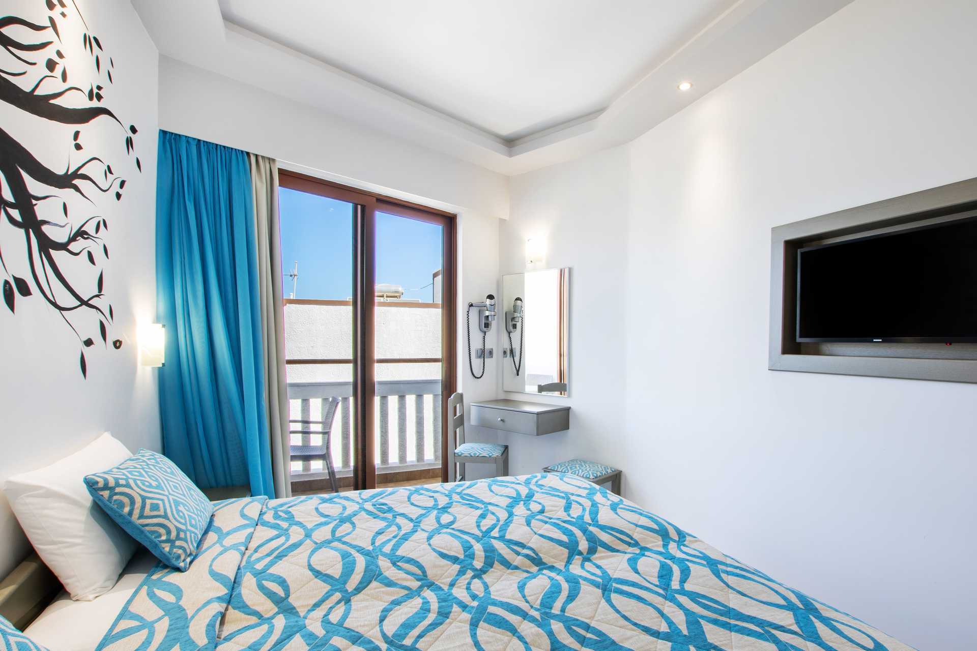 "Vi bodde på dette hotellet i 14 dager. Rommet er typisk gresk med et lite kjøleskap, aircondition og så kan du enten få en vanlig balkong el..."