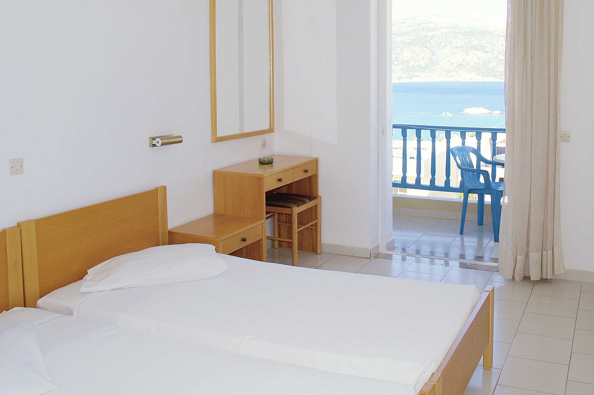 Dobbeltrom med balkong. To enkeltsenger. Mulig med ekstraseng til barn. Wifi og luftkondisjonering er inkludert. Kjøleskap. TV. Hårføner. Bad med dusj og wc. Rengjøring 6 ggr/uke.