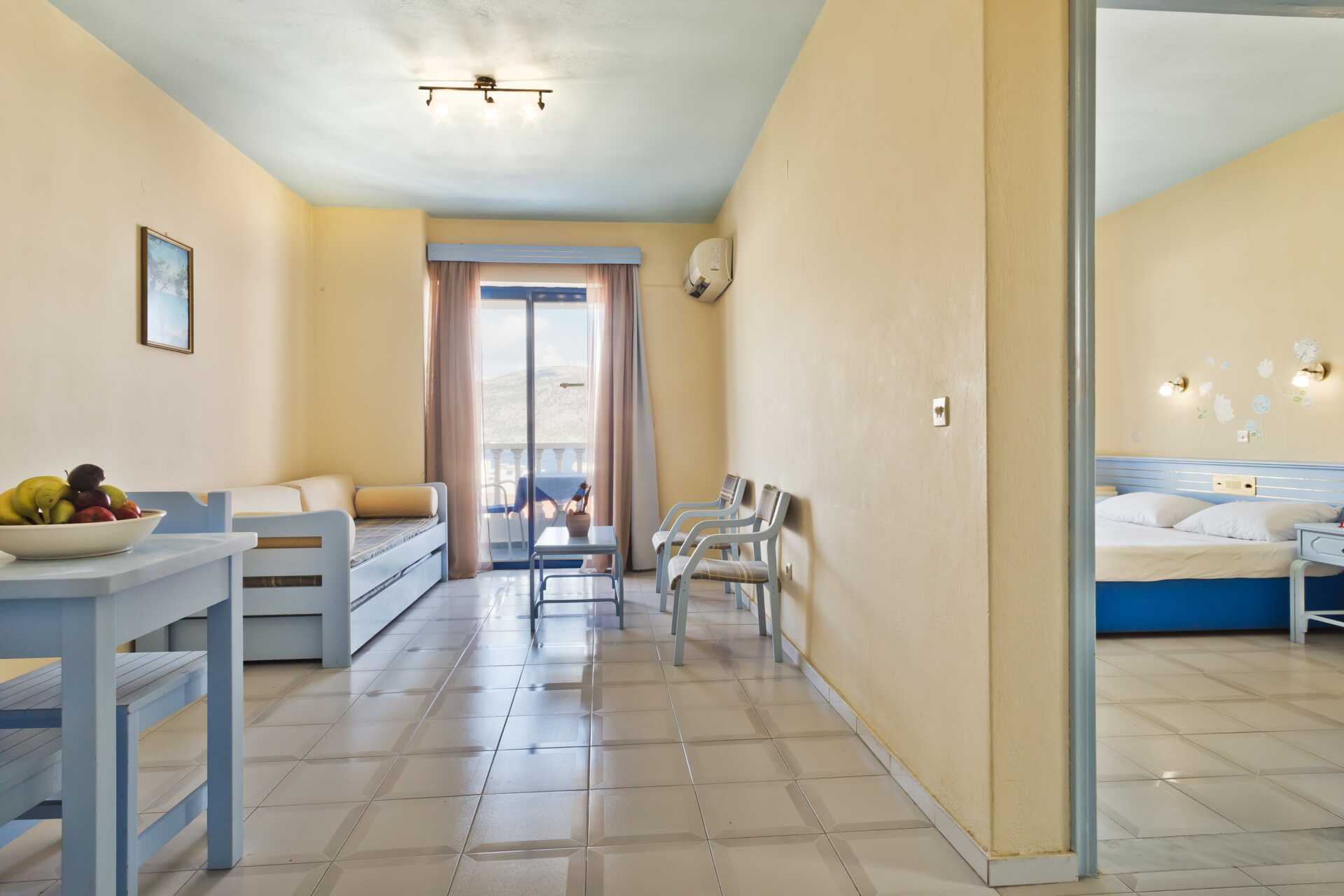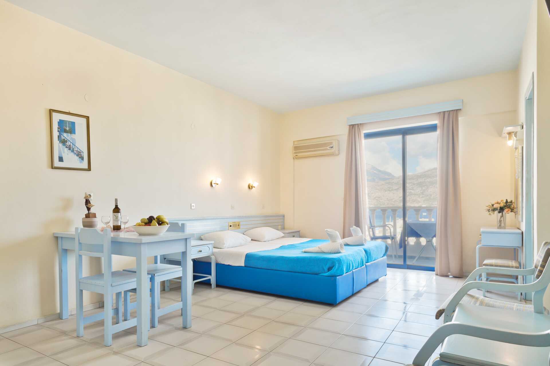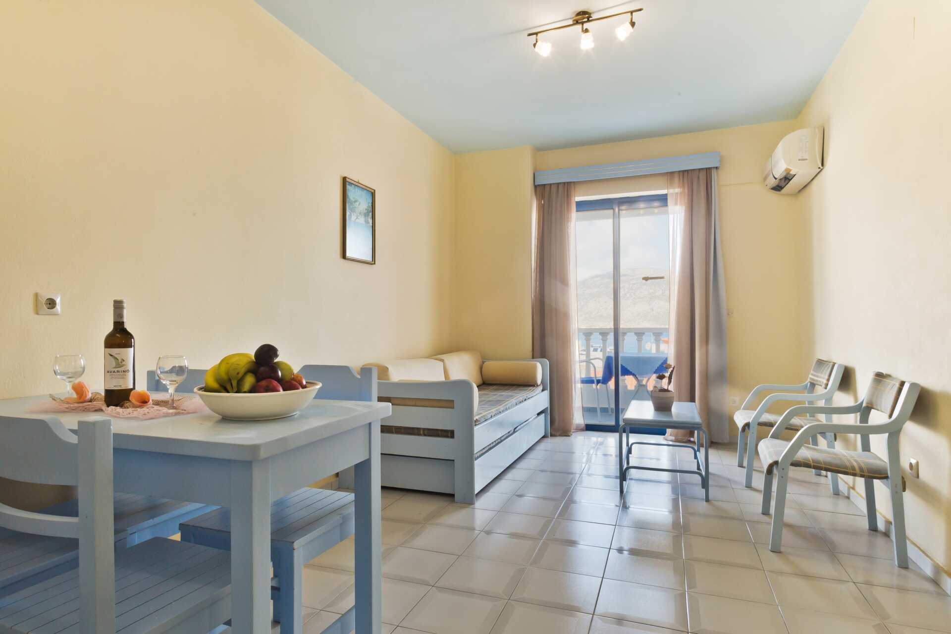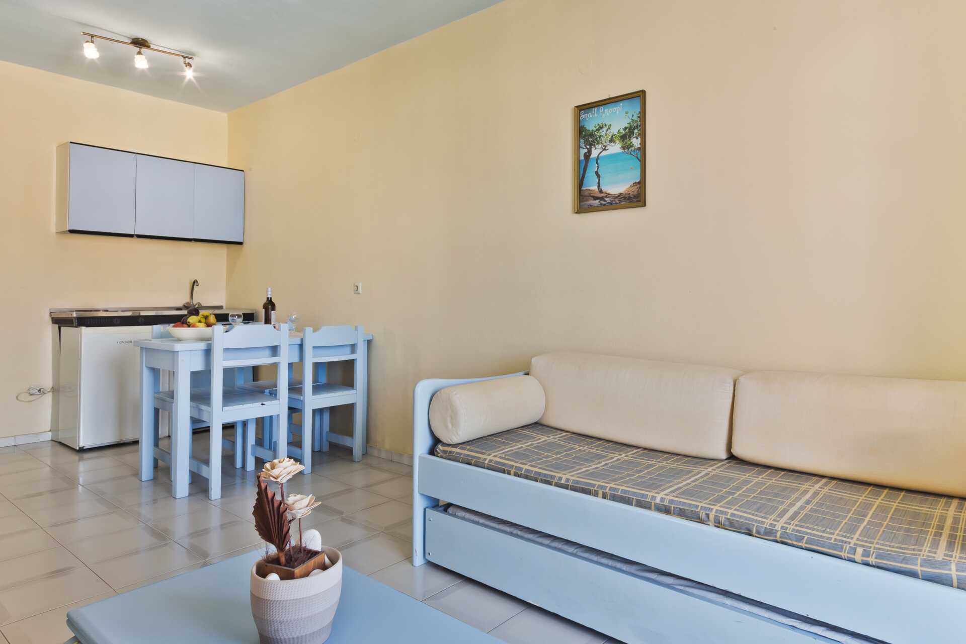 Toromsleilighet med balkong, noen med havutsikt. Et soverom og stue med minikjøkken. En dobbeltseng eller to enkeltsenger. Mulig med en ekstraseng i sovesofa. Minikjøkken med kjøleskap, kokeplater og enkelt kjøkkenutstyr. Wifi, luftkondisjonering og safe inkludert. TV. Hårføner. Bad med dusj og wc. Rengjøring 6 ggr/uke.