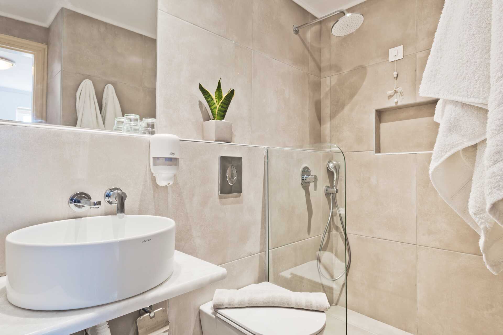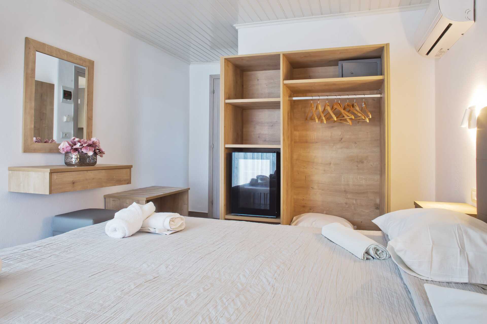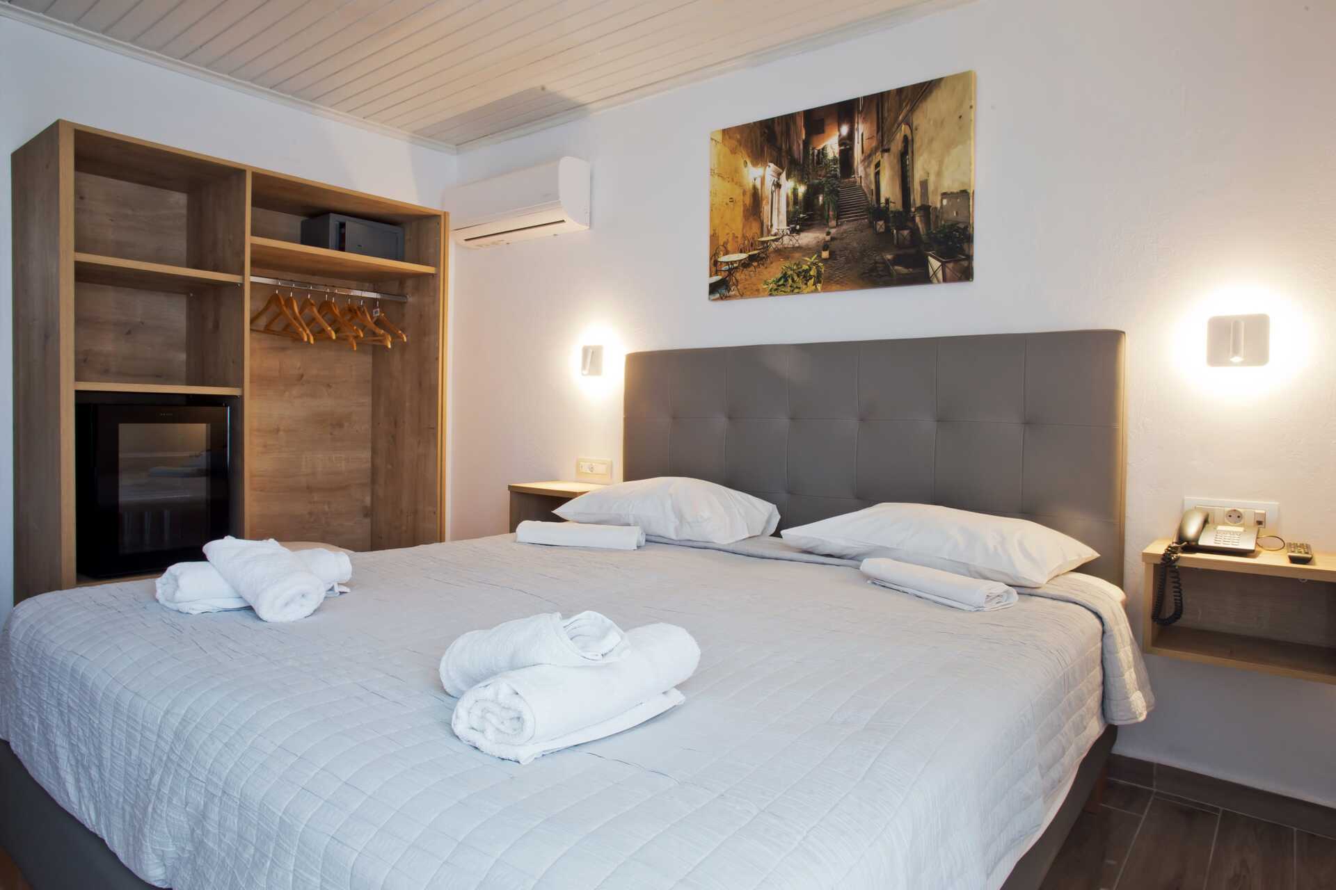Dobbeltrom i ulike størrelser med balkong eller terrasse. Rommene ligger i begge bygningene. En dobbeltseng. Wifi og safe inkludert. Luftkondisjonering mot avgift. Kjøleskap. TV. Dusj og wc. Rengjøring 6 ggr/uke.