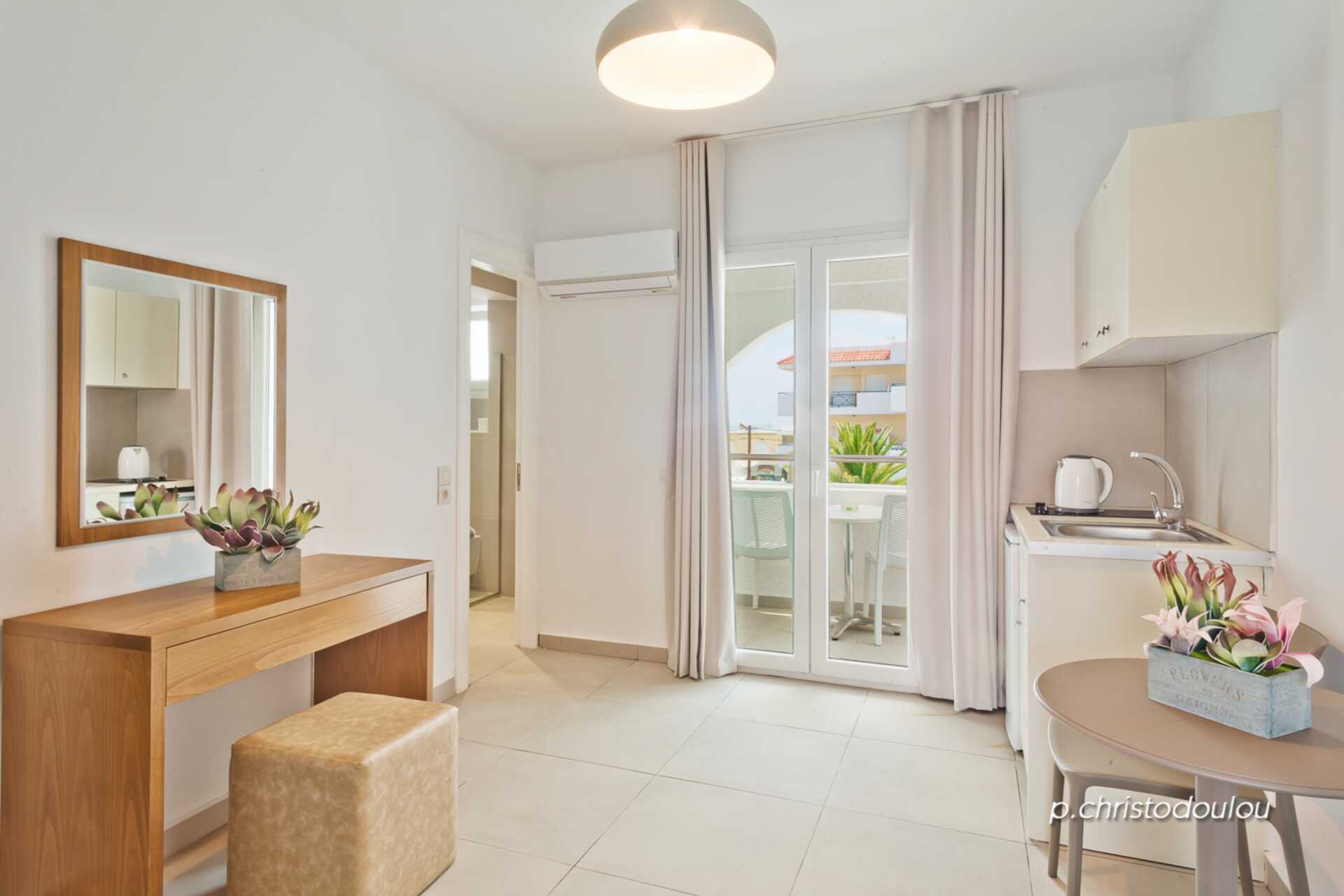 Toromsleiligheter med balkong. Et soverom med en dobbeltseng. Mulig med en eller to ekstrasenger i sovesofa. Når begge ekstrasengene benyttes kan det oppleves trangt i leiligheten. Minikjøkken med kokeplater, kjøleskap, vannkoker og enkelt kjøkkenutstyr. Wifi og safe inkludert. Luftkondisjonering mot avgift. TV. Dusj og wc. Rengjøring 6 ggr/uke.