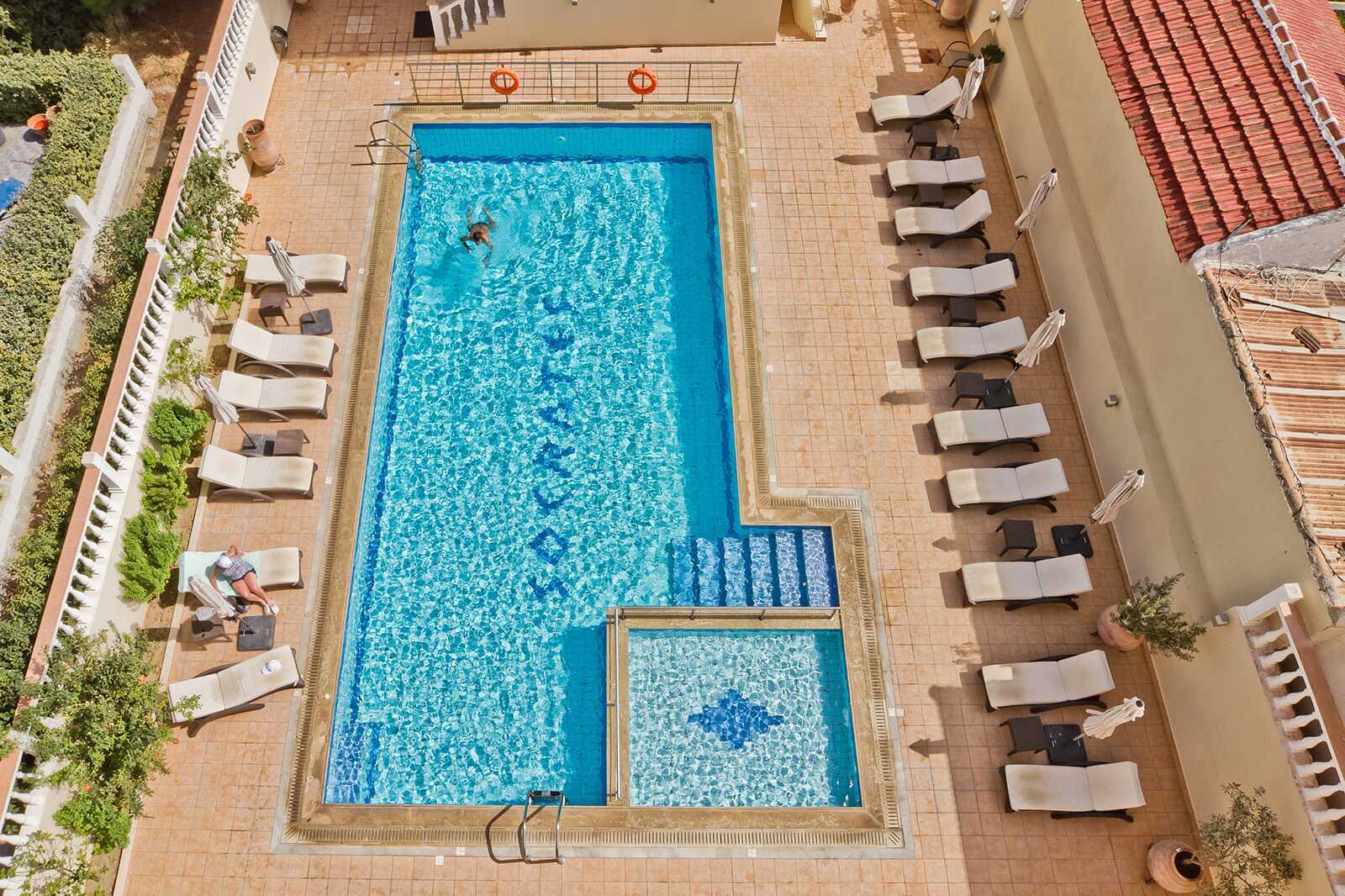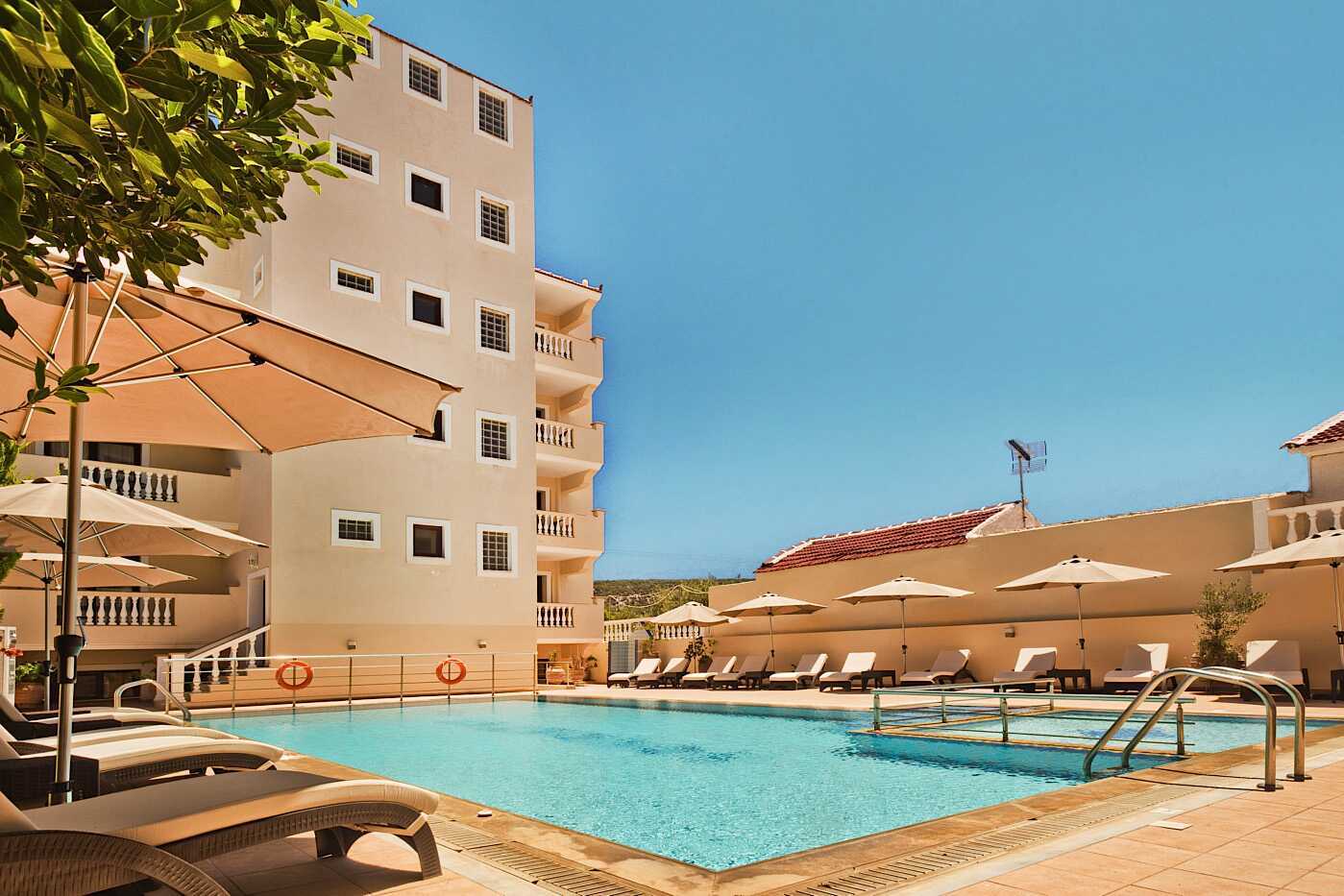 Rolig, god plass ved bassenget, beliggenhet. Tilbaketrukket fra trafikkert gate med nydelig sjøutsikt.
