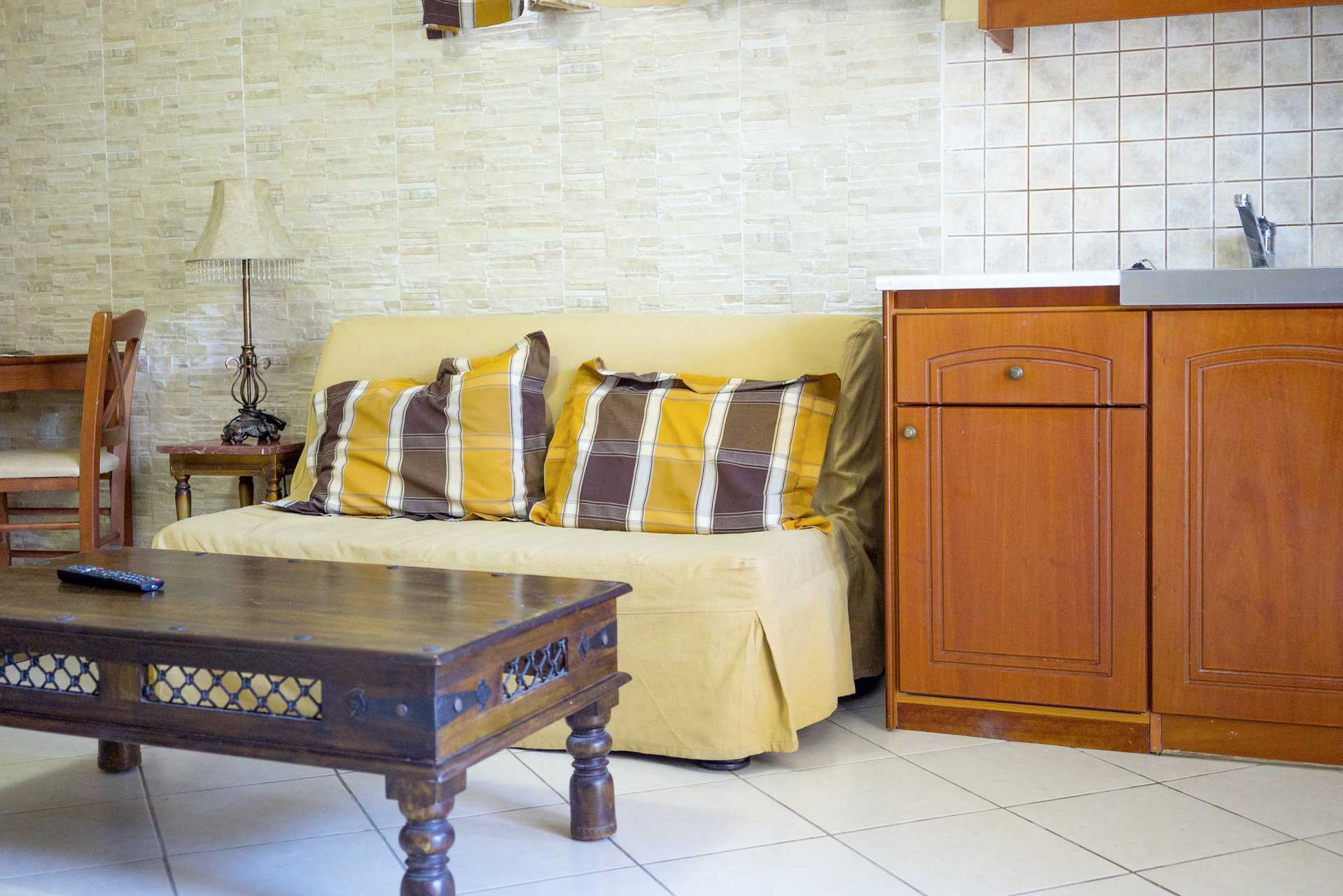 Toromsleilighet med markterrasse delvis under bakkeplan. Leilighetene ligger i en bygning rett overfor hovedbygningen. Et soverom og stue med minikjøkken. To enkeltsenger. Mulig med ekstrasenger. Minikjøkken med kokeplater, kjøleskap, brødrister, kaffetrakter, vannkoker og enkelt kjøkkenutstyr. Wifi og safe inkludert. Luftkondisjonering mot avgift. Hårføner. Dusj og wc. Rengjøring 6 ggr/uke.