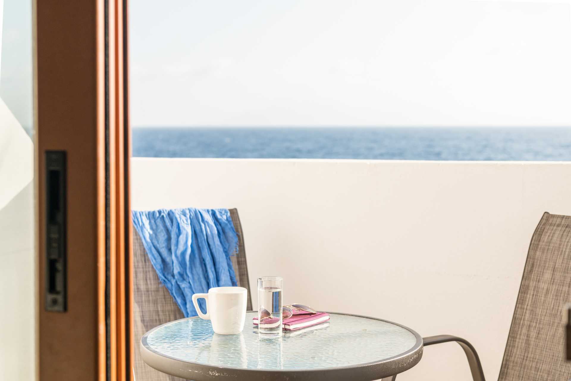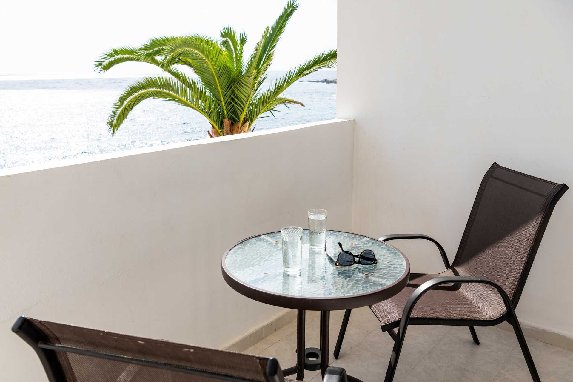 Ettromsleilighet med balkong og havutsikt. Minikjøkken. To enkeltsenger. Minikjøkken med kokeplater, kjøleskap, kaffetrakter, brødrister og enkelt kjøkkenutstyr. Wifi, luftkondisjonering og safe inkludert. Hårføner. Bad med dusj og wc. Rengjøring 5 ggr/uke.