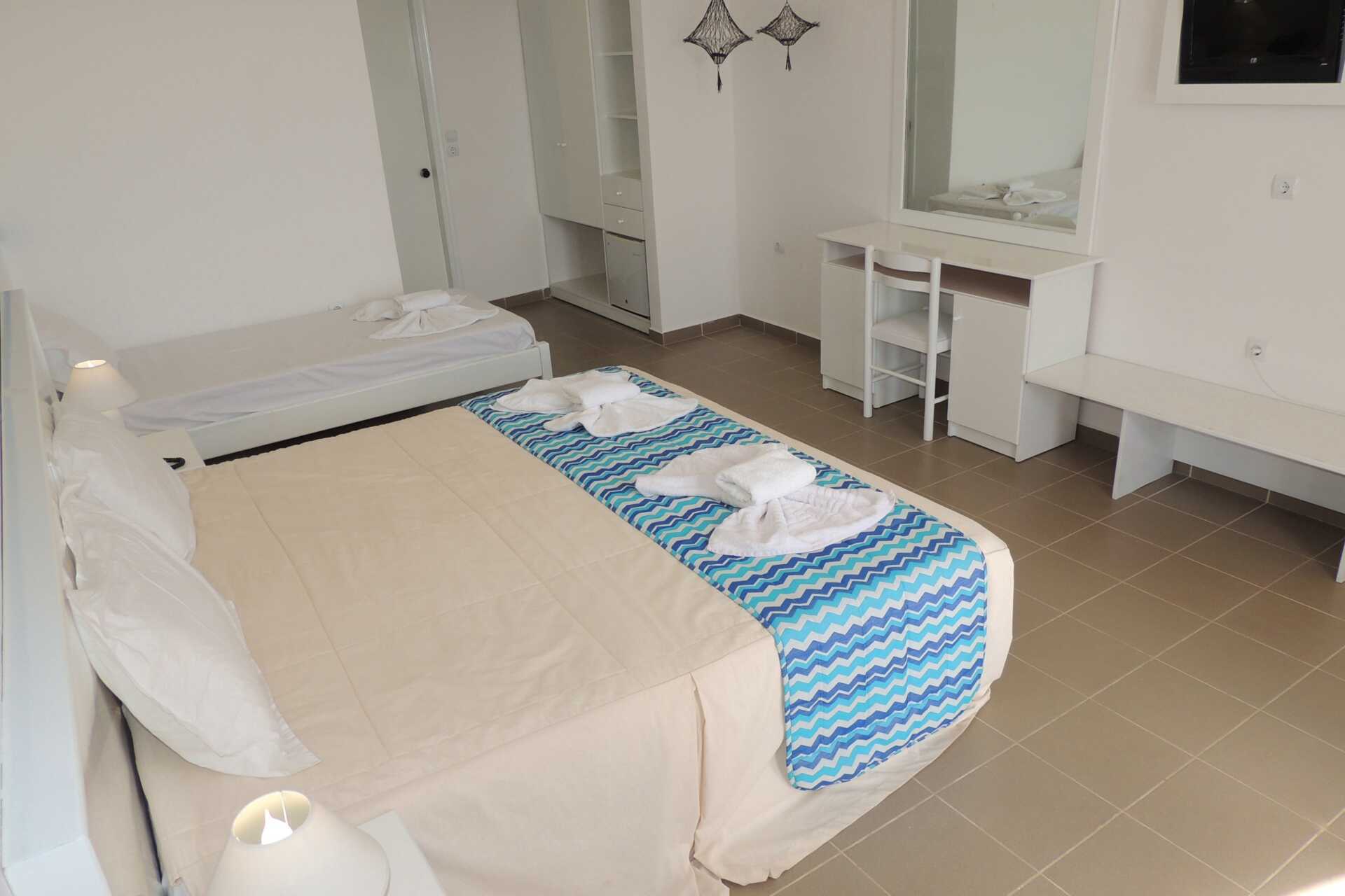 Dobbeltrom med balkong og havutsikt. En dobbeltseng. Wifi og luftkondisjonering er inkludert. Lite kjøleskap. TV med lokale kanaler. Hårføner. Dusj og wc. Rengjøring 6 ggr/uke. Barn under 2 år regnes inn i maksantallet i rommet.