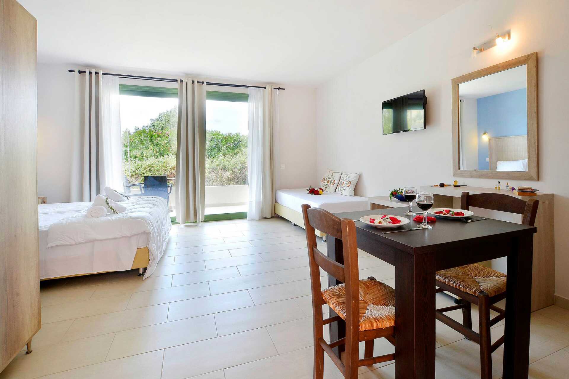 Vi bodde i romslig studioleilighet, med dobbelseng på hems i andre etasje, og svær plass i første etasje med kjøkken, bad, stue med to separate senger og balkong. Veldig flott rom. Rengjøringen var fantastisk, med nye håndklær hver dag, og de vasket til og med opp på kjøkkenet. Hotellet var veldig hyggelig, med en stor og fin hage, og et kjempefint bassengområde. Lunsjen i restauranten på dagtid og middagen på kvelden var meget bra. Beliggenheten var god, og gangavstand til hovedgaten som hadde alt man trenger av supermarked, restauranter, barer og butikker. Vi leide scooter og da var det enkelt å komme seg rundt.