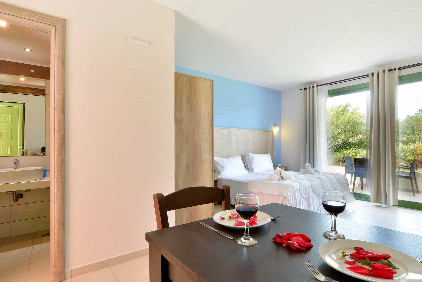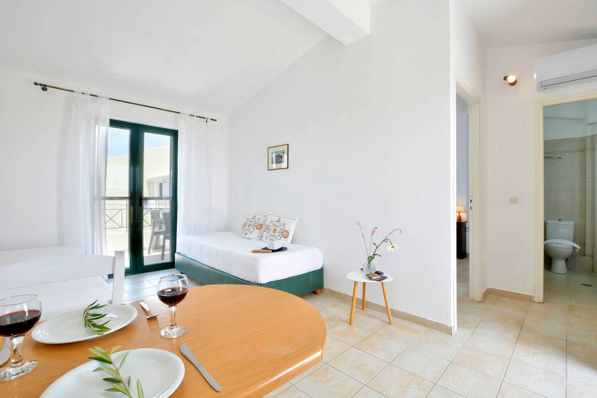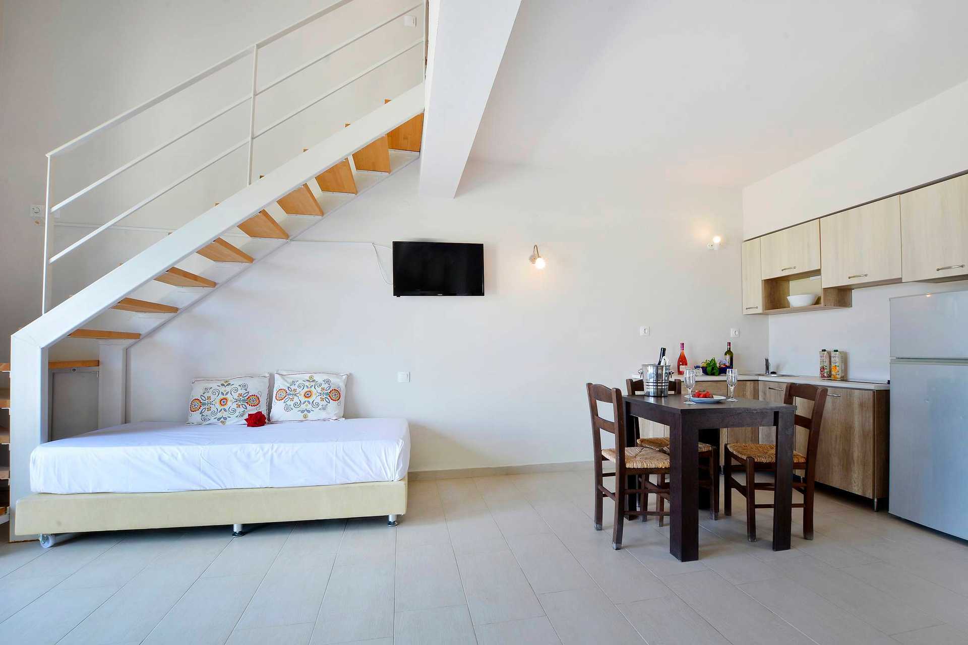 Ettromsleilighet i etasje med balkong. Leilighetene ligger i hotelldelen fra 2015. Nede er det en kombinert stue/minikjøkken med kokeplater, kjøleskap, kaffetrakter og enkelt kjøkkenutstyr. Mulig med ekstrasenger i to enkeltsenger og en sovesofa. En trapp opp er det en dobbeltseng. Wifi inkludert. Luftkondisjonering og safe mot avgift. TV. Hårføner. Badekar eller dusj samt wc. Rengjøring 6 ggr/uke.