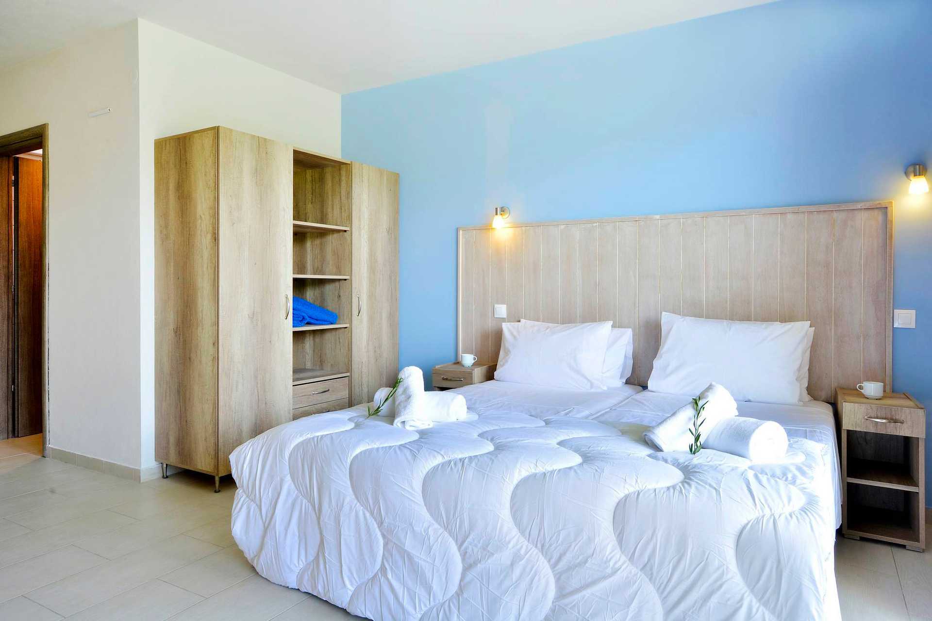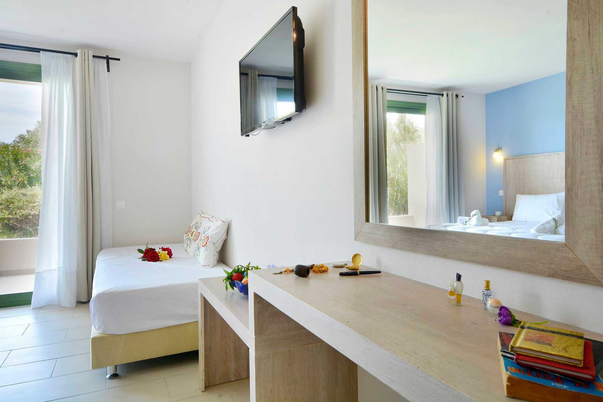 Toromsleilighet med balkong eller markbalkong. Et soverom og kombinert stue med minikjøkken. To enkeltsenger. Mulig med ekstrasenger i to enkeltsenger eller sovesofaer. Minikjøkken med kokeplater, kaffetrakter, kjøleskap og enkelt kjøkkenutstyr. Spiseområdet er på terrassen. Wifi inkludert. Luftkondisjonering og safe mot avgift. TV. Hårføner. Badekar eller dusj samt wc. Rengjøring 6 ggr/uke.