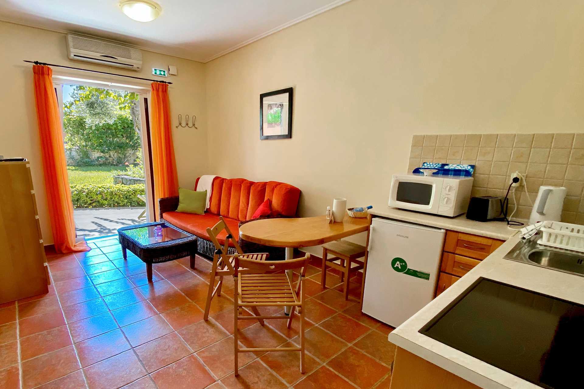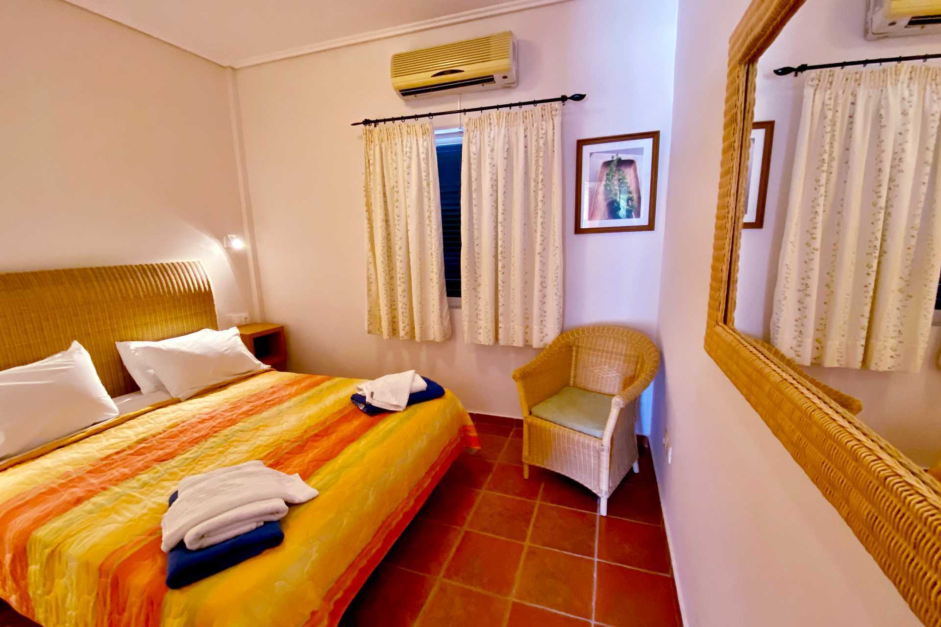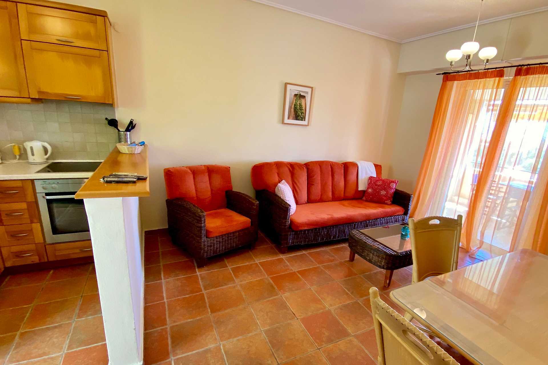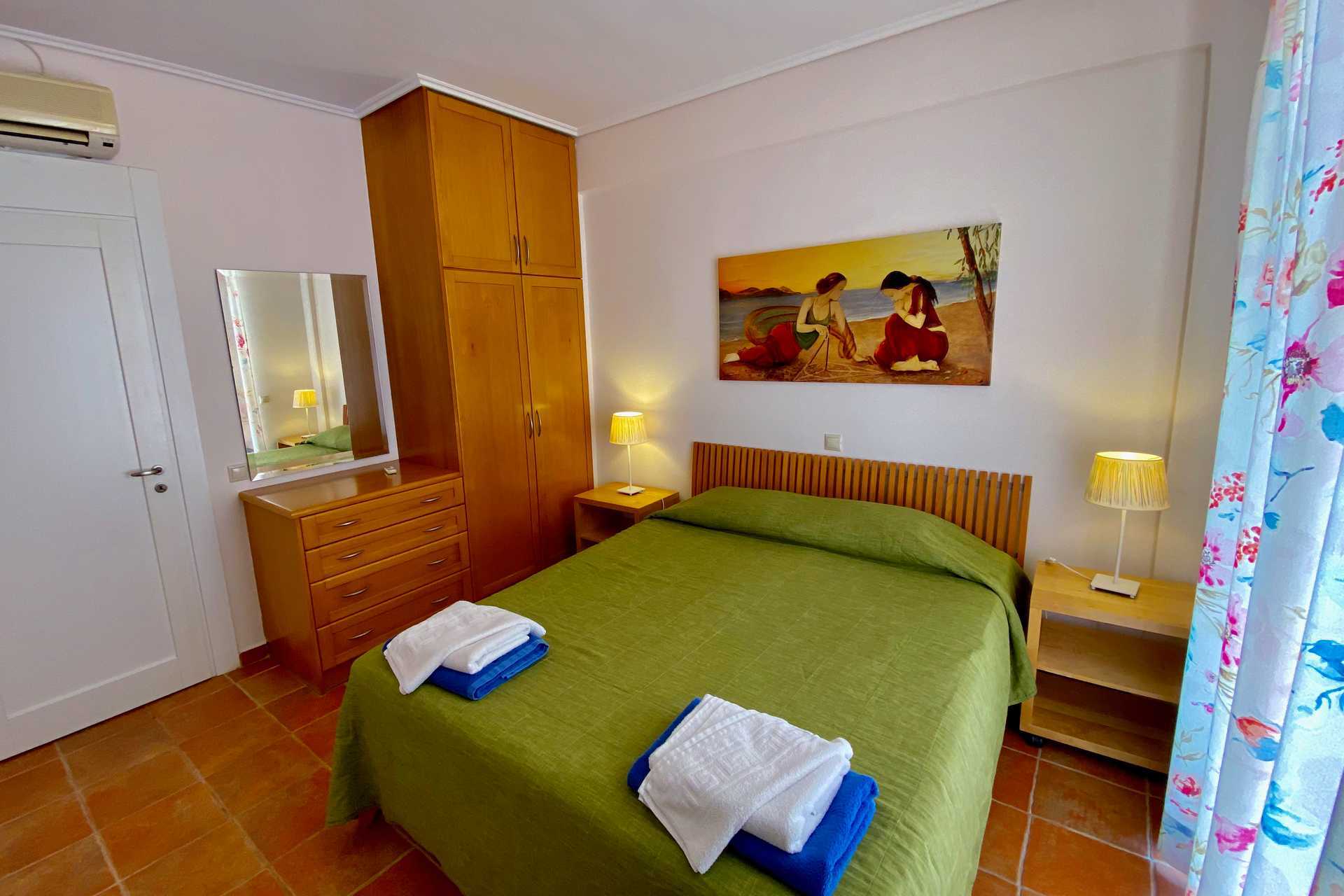 Treromsleilighet superior med balkong og terrasse. Leilighetene ligger nært stranden. Leilighetene ble renoverte til sommeren 2023. To soverom, ett med dobbeltseng og ett med to enkeltsenger samt en stue med minikjøkken. Mulig med ekstraseng i sovesofa. Wifi, luftkondisjonering og safe er inkludert. Minikjøkken med kokeplater, mikrobølgeovn, kjøleskap, kaffetrakter, vannkoker, brødrister og enkel kjøkkenutstyr. Oppvaskmaskin Vaskemaskin. TV med lokale kanaler. Hårføner. Baderom med dusj og wc. Rengjøring 2 ggr/uke.