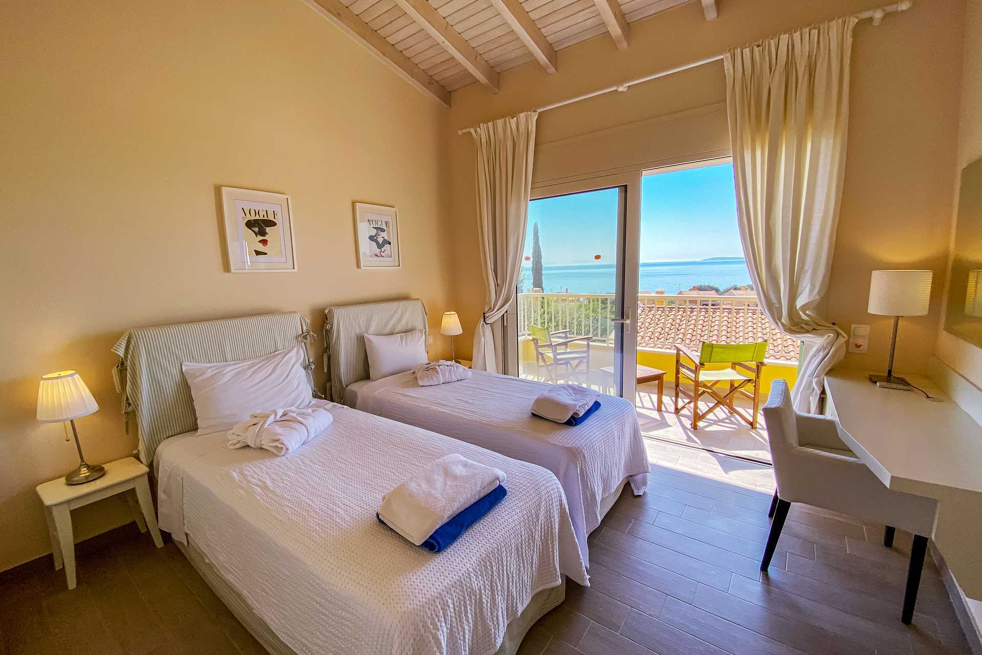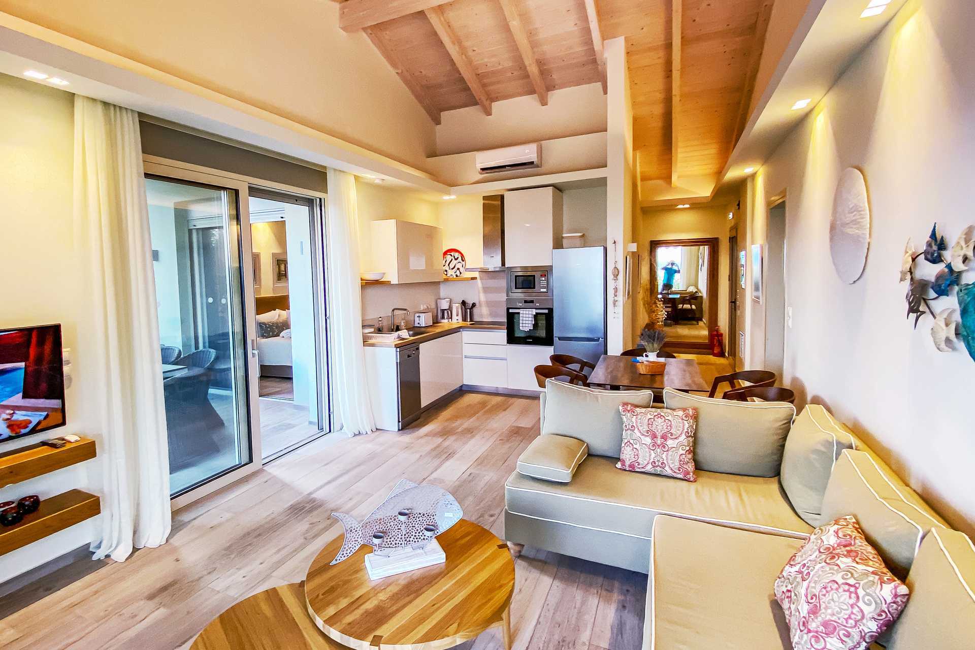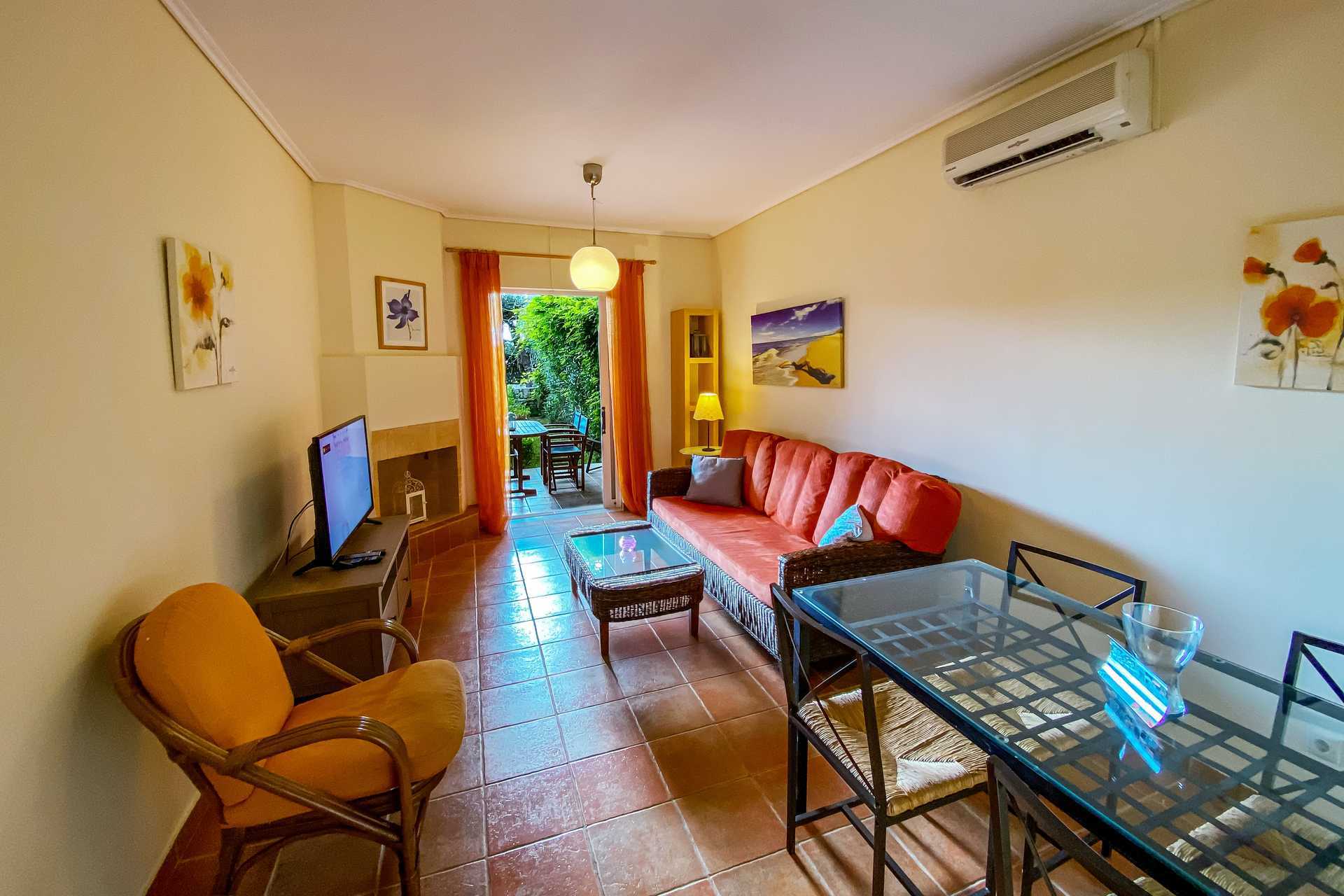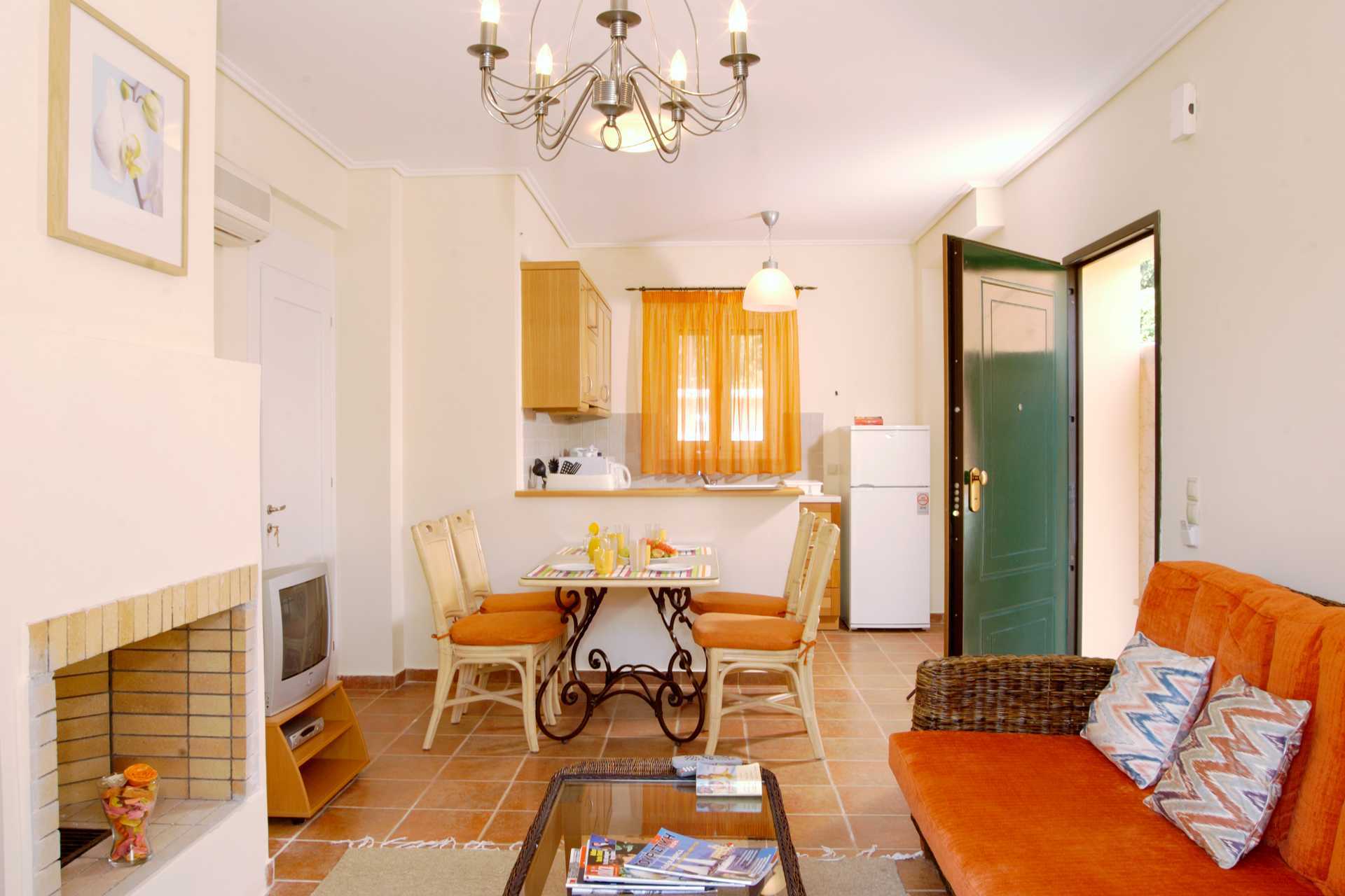 Treromsleilighet superior med balkong og terrasse. Leilighetene ligger nært stranden. Leilighetene ble renoverte til sommeren 2023. To soverom, ett med dobbeltseng og ett med to enkeltsenger samt en stue med minikjøkken. Mulig med ekstraseng i sovesofa. Wifi, luftkondisjonering og safe er inkludert. Minikjøkken med kokeplater, mikrobølgeovn, kjøleskap, kaffetrakter, vannkoker, brødrister og enkel kjøkkenutstyr. Oppvaskmaskin Vaskemaskin. TV med lokale kanaler. Hårføner. Baderom med dusj og wc. Rengjøring 2 ggr/uke.