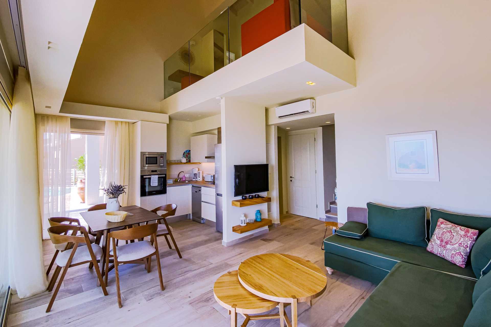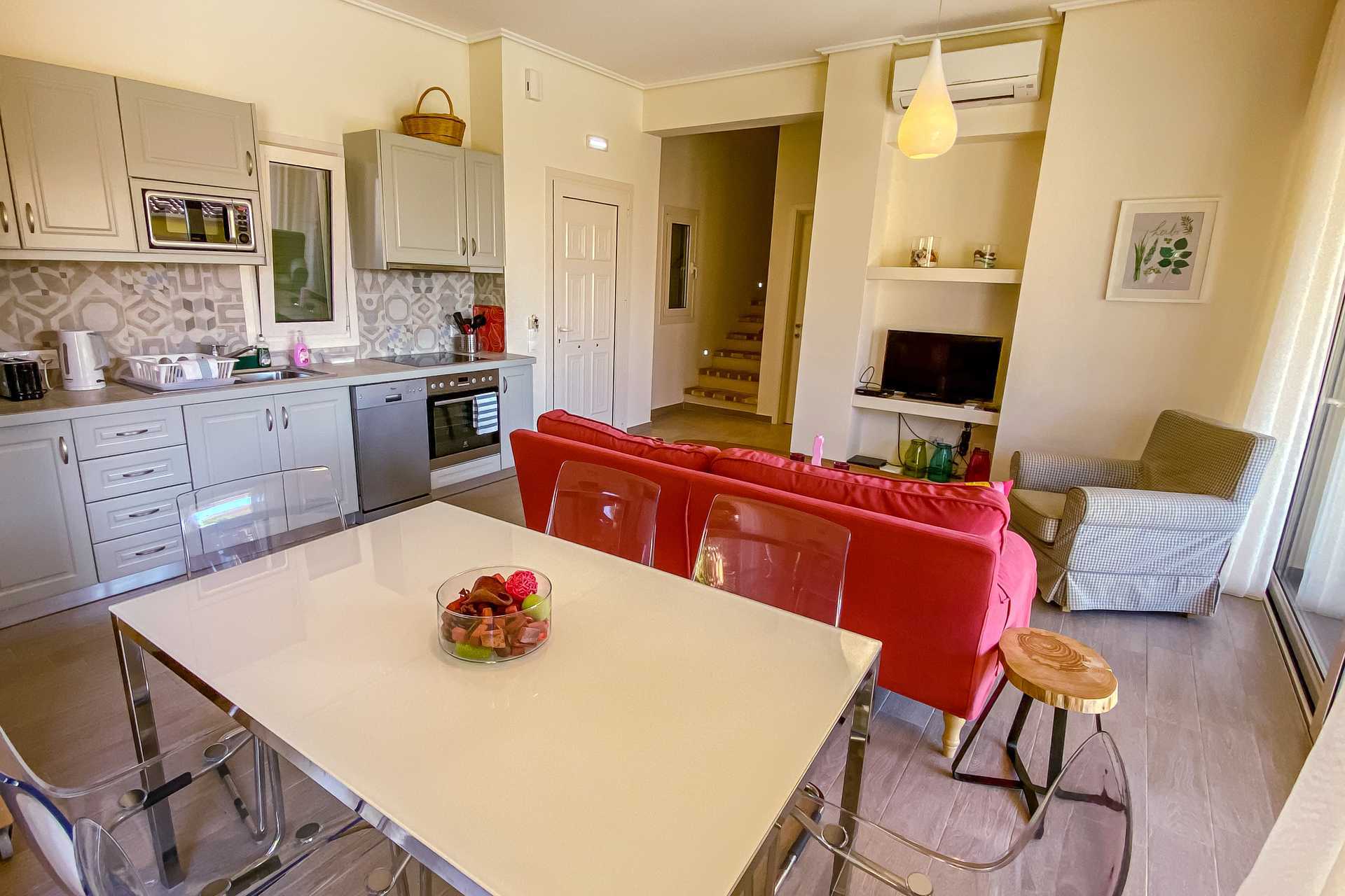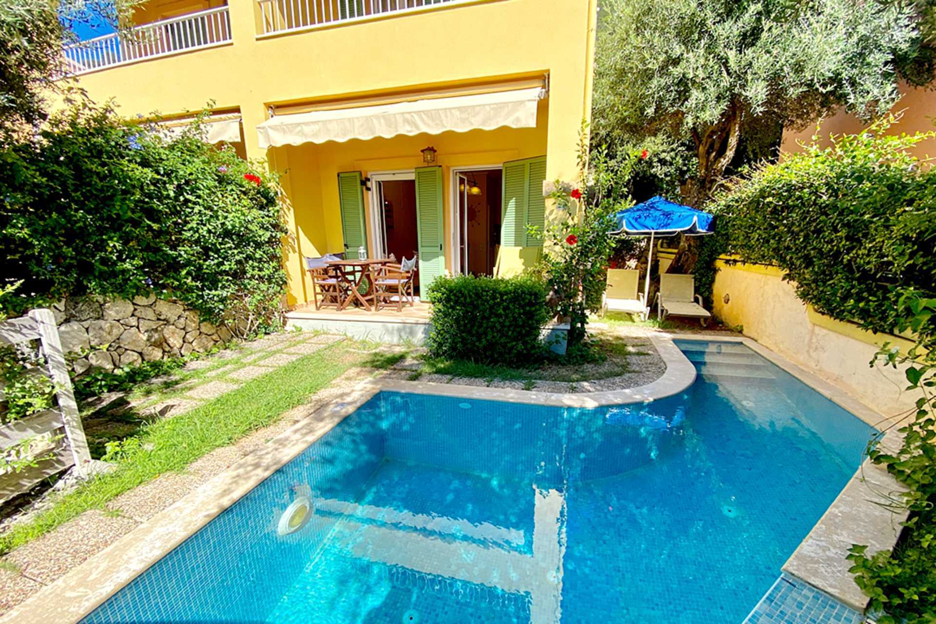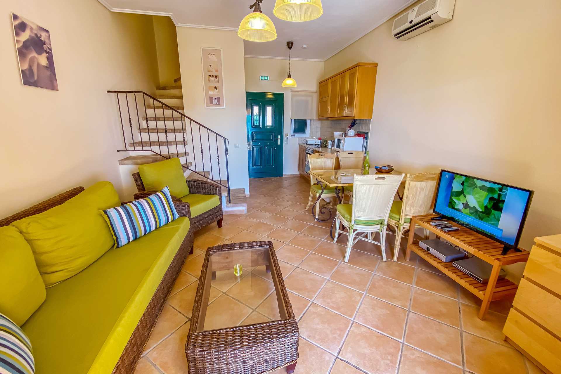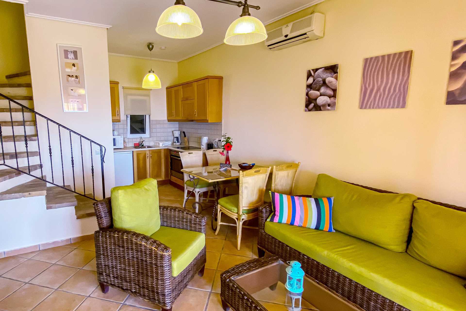 Toromsleilighet i etasje med markterrasse og eget basseng. På balkongen er det bord og stoler samt to solsenger. I inngangsetasjen er det en stue med minikjøkken og separat wc og mulighet for ekstrasenger i sovesofa og i feltseng. En trapp opp er det et soverom med en dobbeltseng, balkong og bad med dusj og wc. Minikjøkken med kokeplater og stekeovn, mikrobølgeovn, kjøleskap, kaffetrakter, vannkoker, brødrister, enkelt kjøkkenutstyr og oppvaskmaskin. Wifi, luftkondisjonering og safe er inkludert. Vaskemaskin. TV med lokale kanaler. Hårføner. Rengjøring 2 ggr/uke.