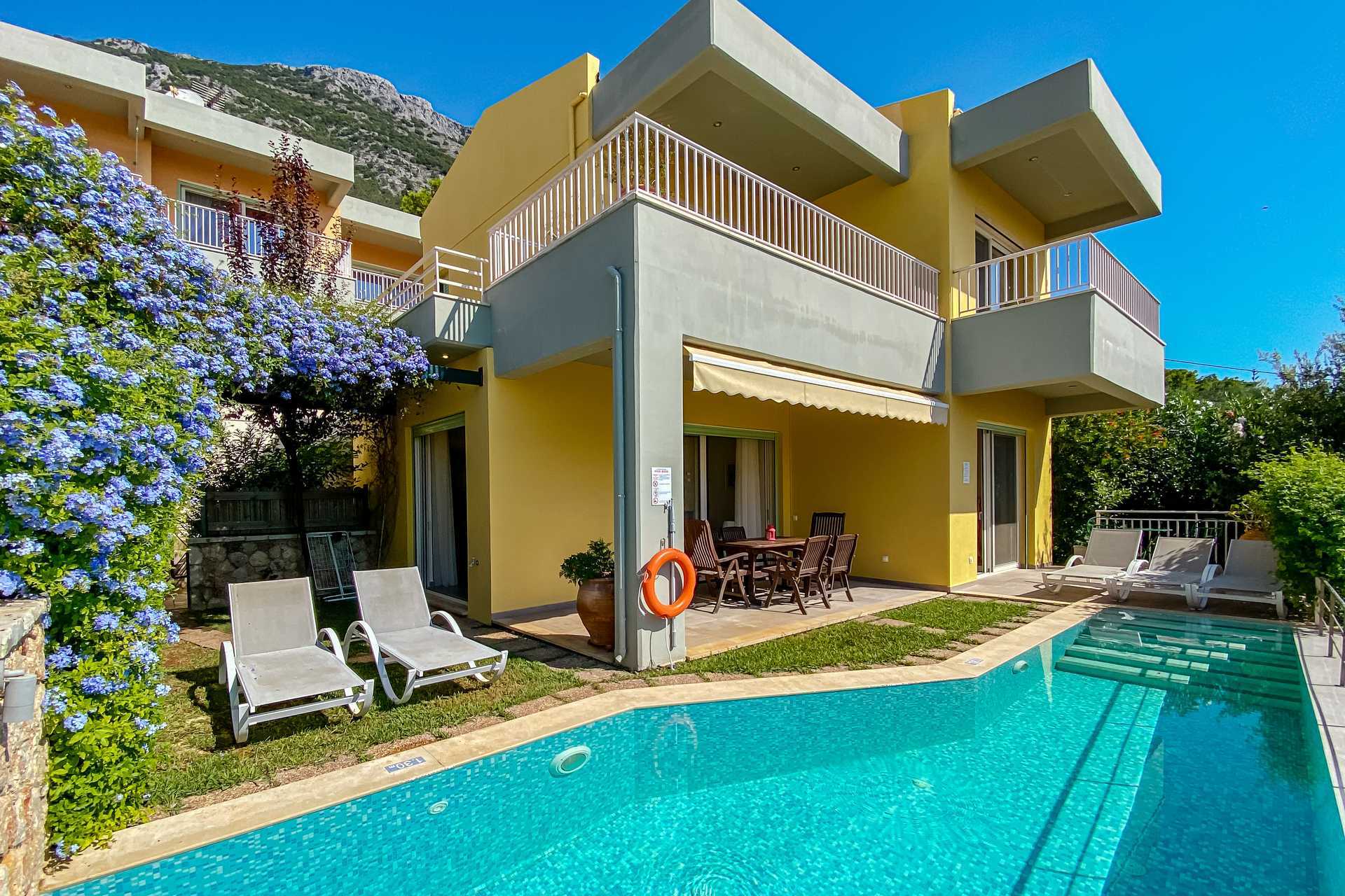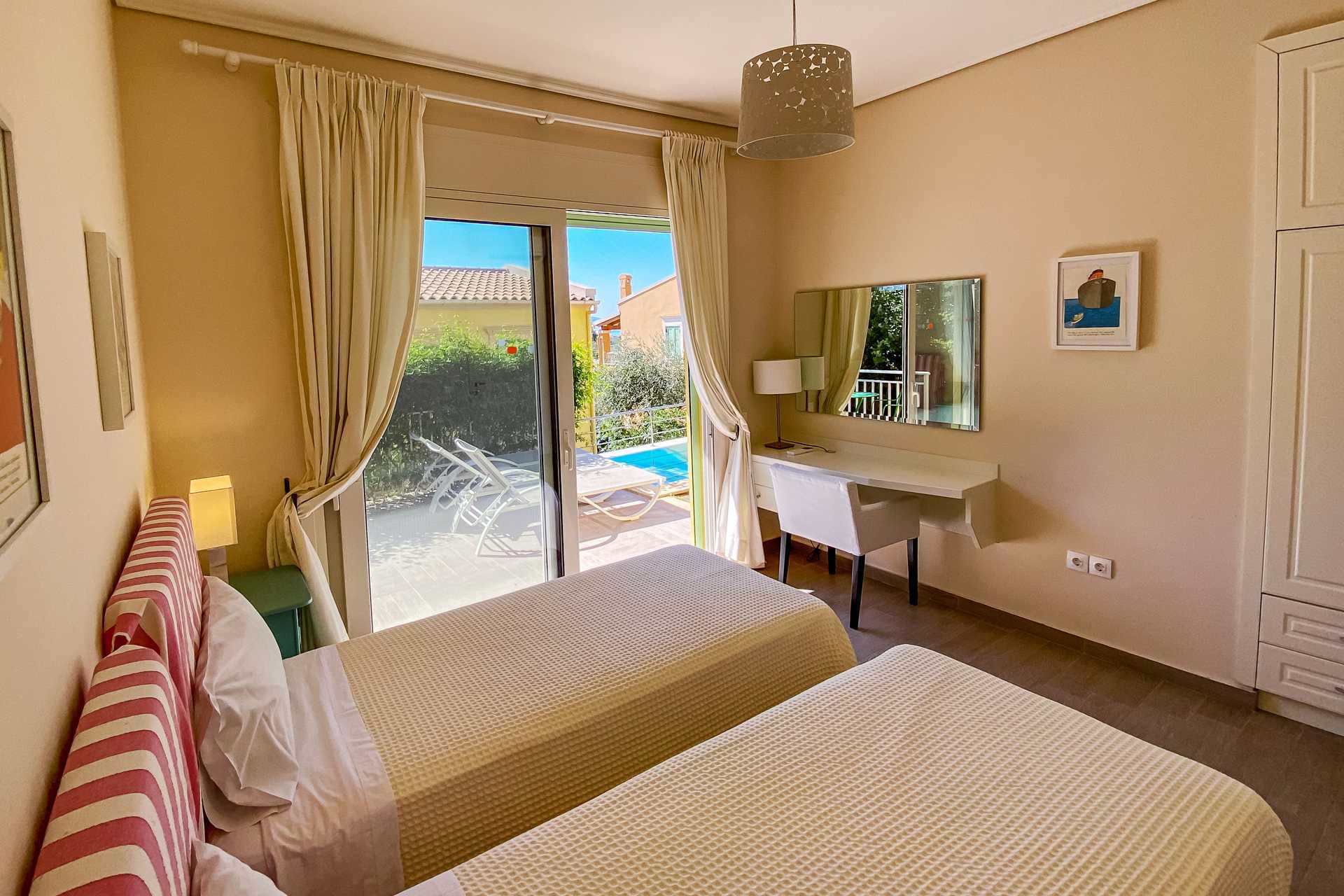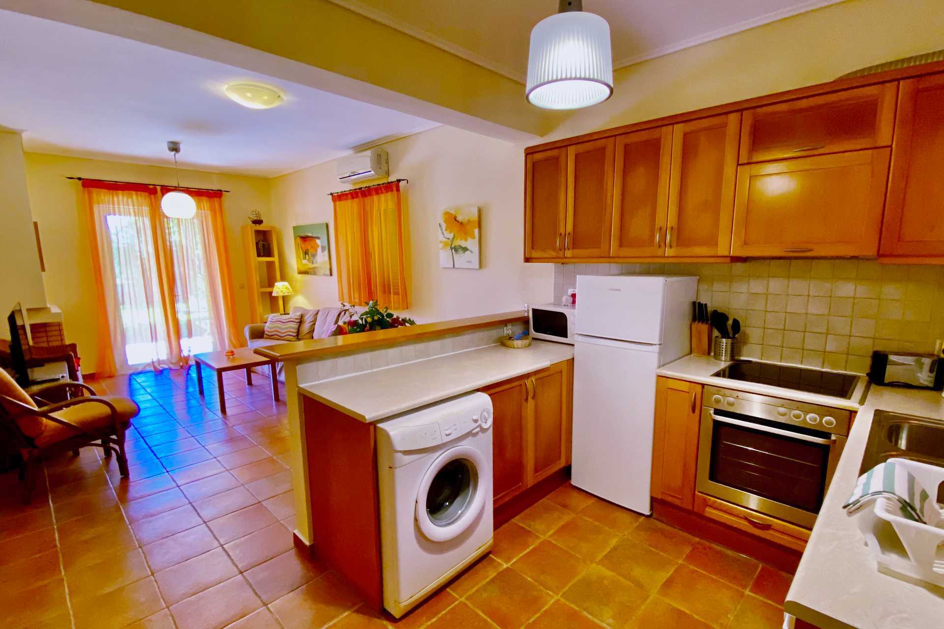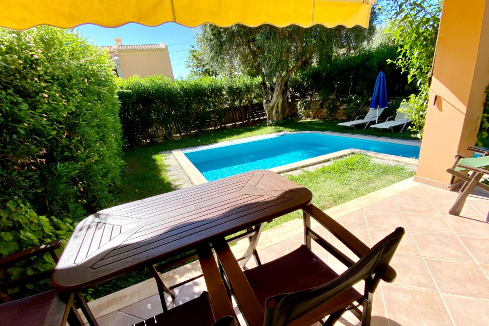 Treroms villa med markterrasse og eget basseng. Solsenger samt stoler og bord på uteplassen. I entréetasjen er det kombinert stue med kjøkkenkrok og mulighet for ekstra seng i sovesofa, samt soverom med dobbeltseng og bad med dusj og wc. En trapp opp er det et soverom med to enkeltsenger og et bad med hårføner, dusj og wc. Minikjøkken med kokeplater og stekeovn, mikrobølgeovn, kjøleskap, kaffetrakter, vannkoker, brødrister, grunnleggende kjøkkenutstyr og oppvaskmaskin. Wifi, luftkondisjonering og safe er inkludert. Vaskemaskin. TV med lokale kanaler. Hårføner. Rengjøring 2 ggr/uke.