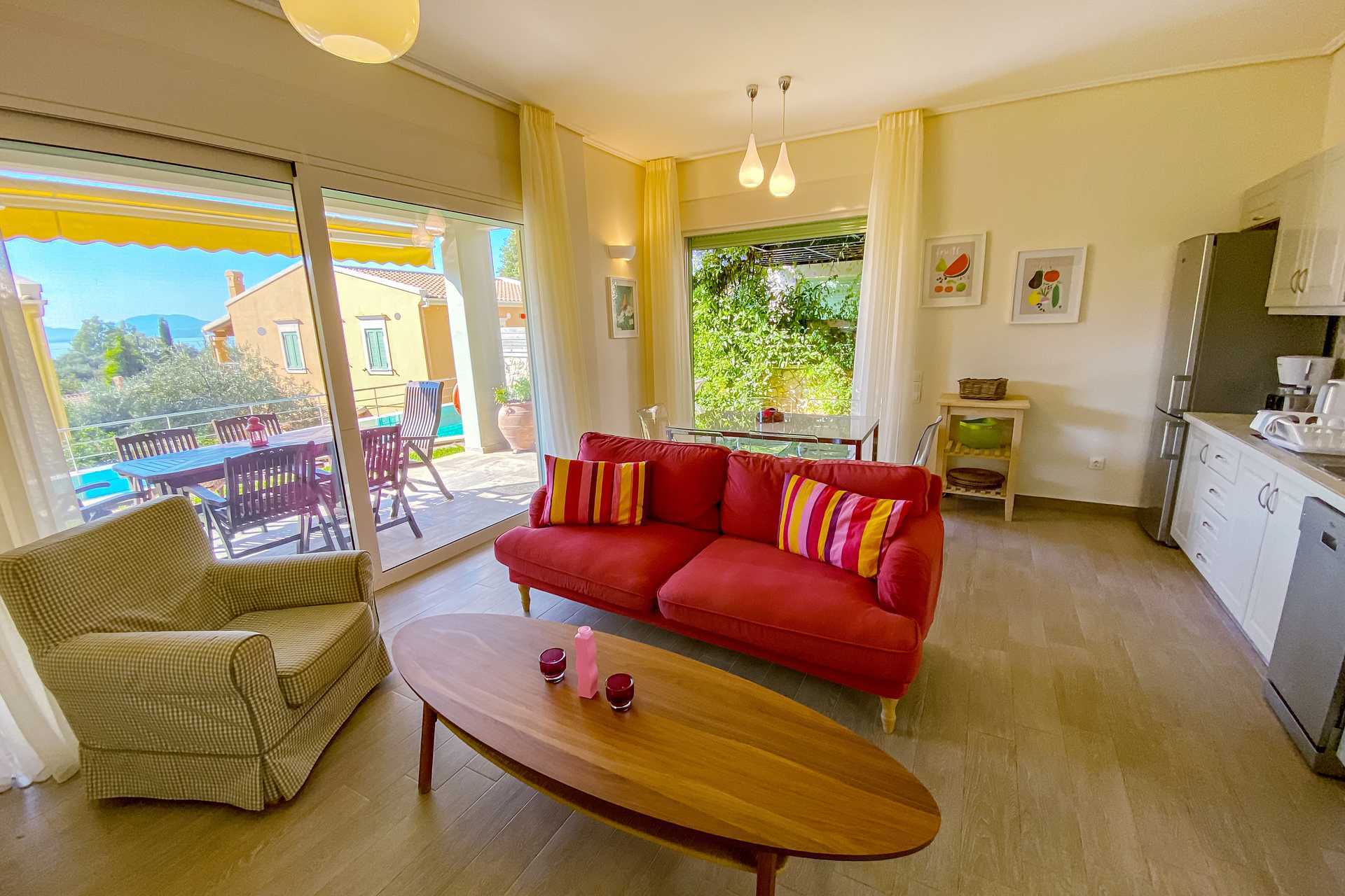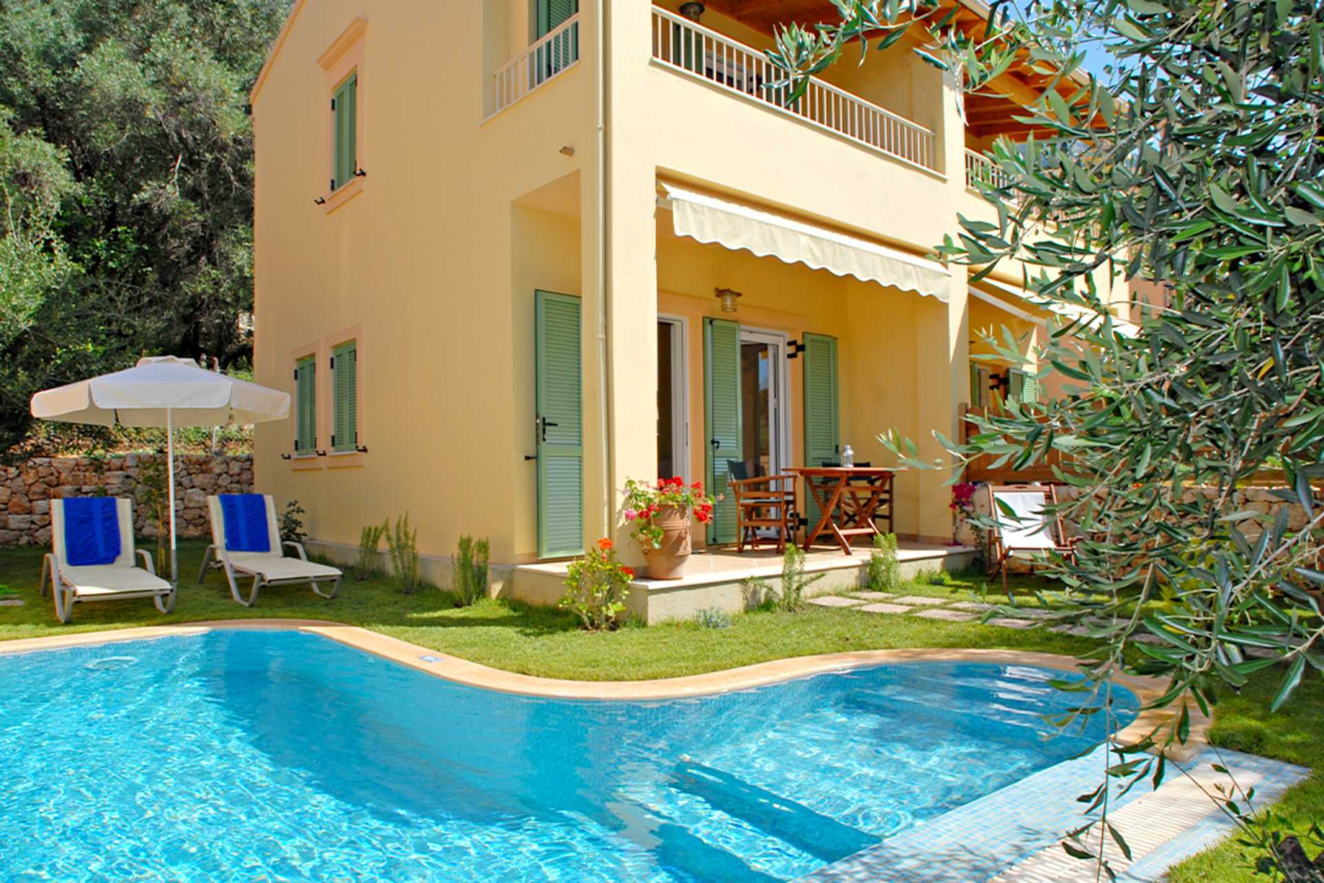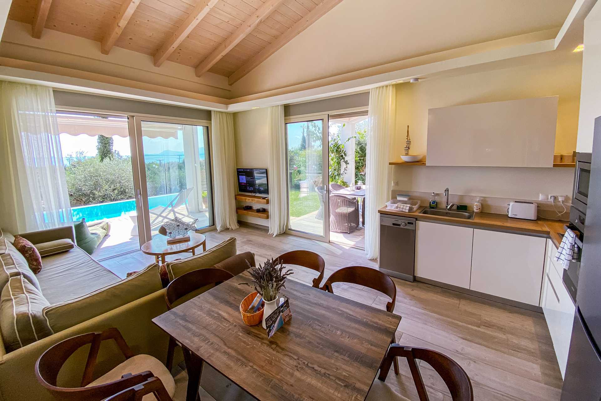 Treroms villa med markterrasse og eget basseng. Solsenger samt stoler og bord på uteplassen. I entréetasjen er det kombinert stue med kjøkkenkrok og mulighet for ekstra seng i sovesofa, samt soverom med dobbeltseng og bad med dusj og wc. En trapp opp er det et soverom med to enkeltsenger og et bad med hårføner, dusj og wc. Minikjøkken med kokeplater og stekeovn, mikrobølgeovn, kjøleskap, kaffetrakter, vannkoker, brødrister, grunnleggende kjøkkenutstyr og oppvaskmaskin. Wifi, luftkondisjonering og safe er inkludert. Vaskemaskin. TV med lokale kanaler. Hårføner. Rengjøring 2 ggr/uke.