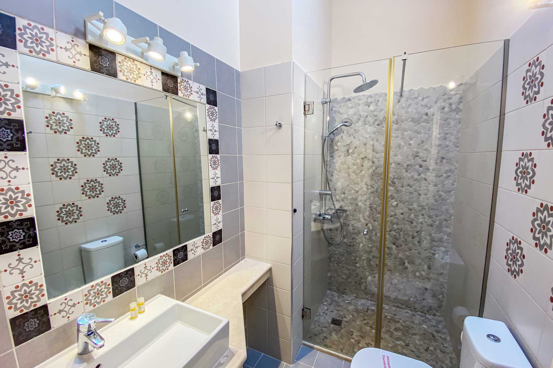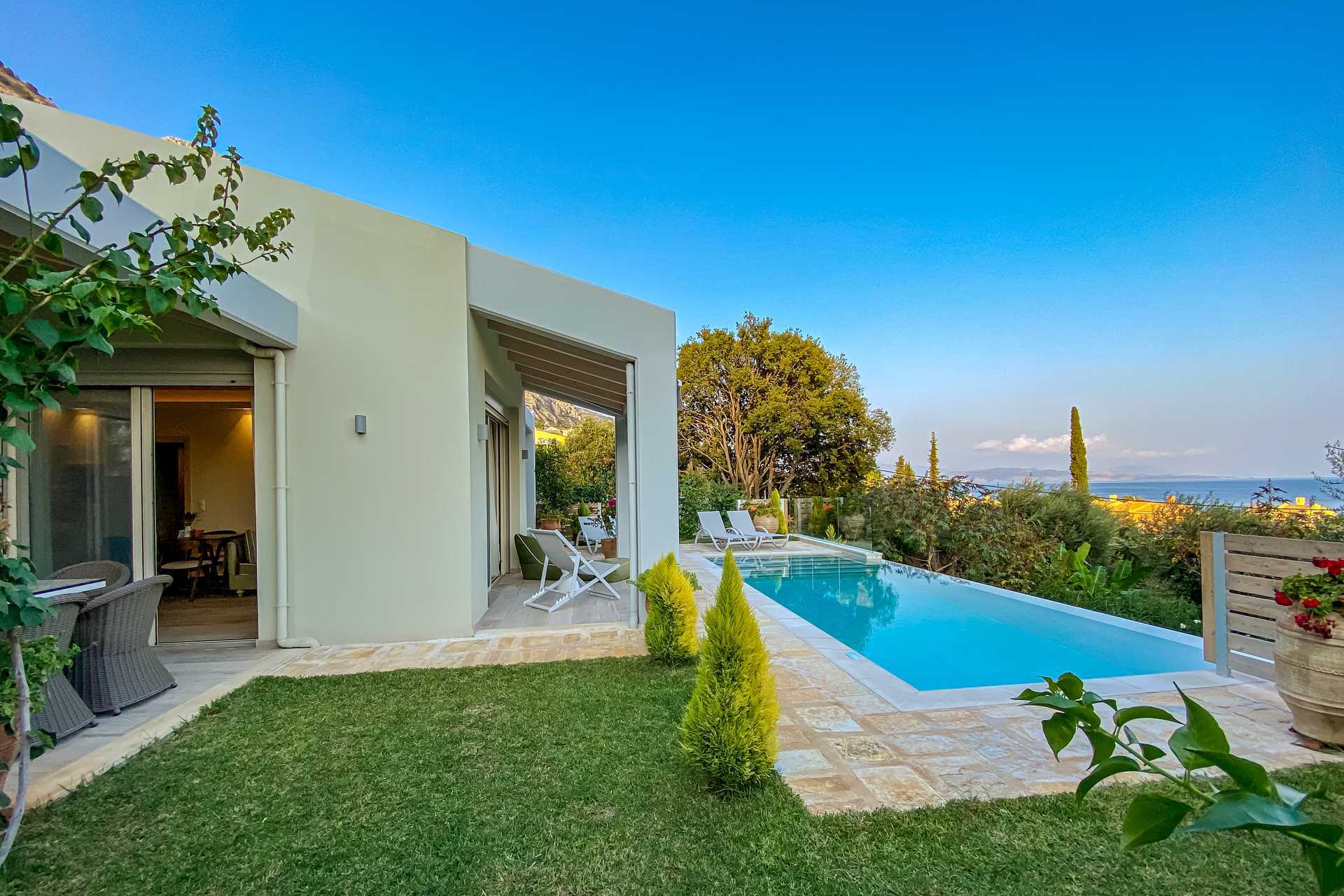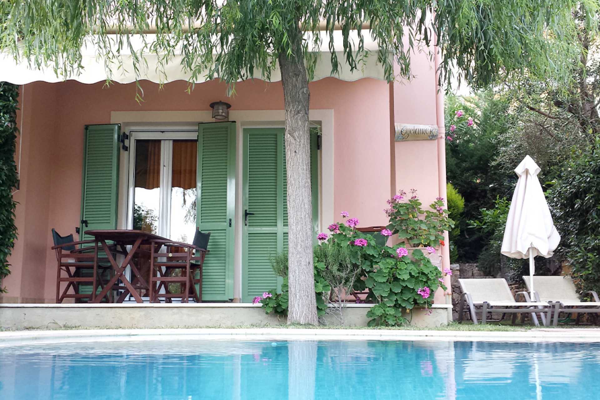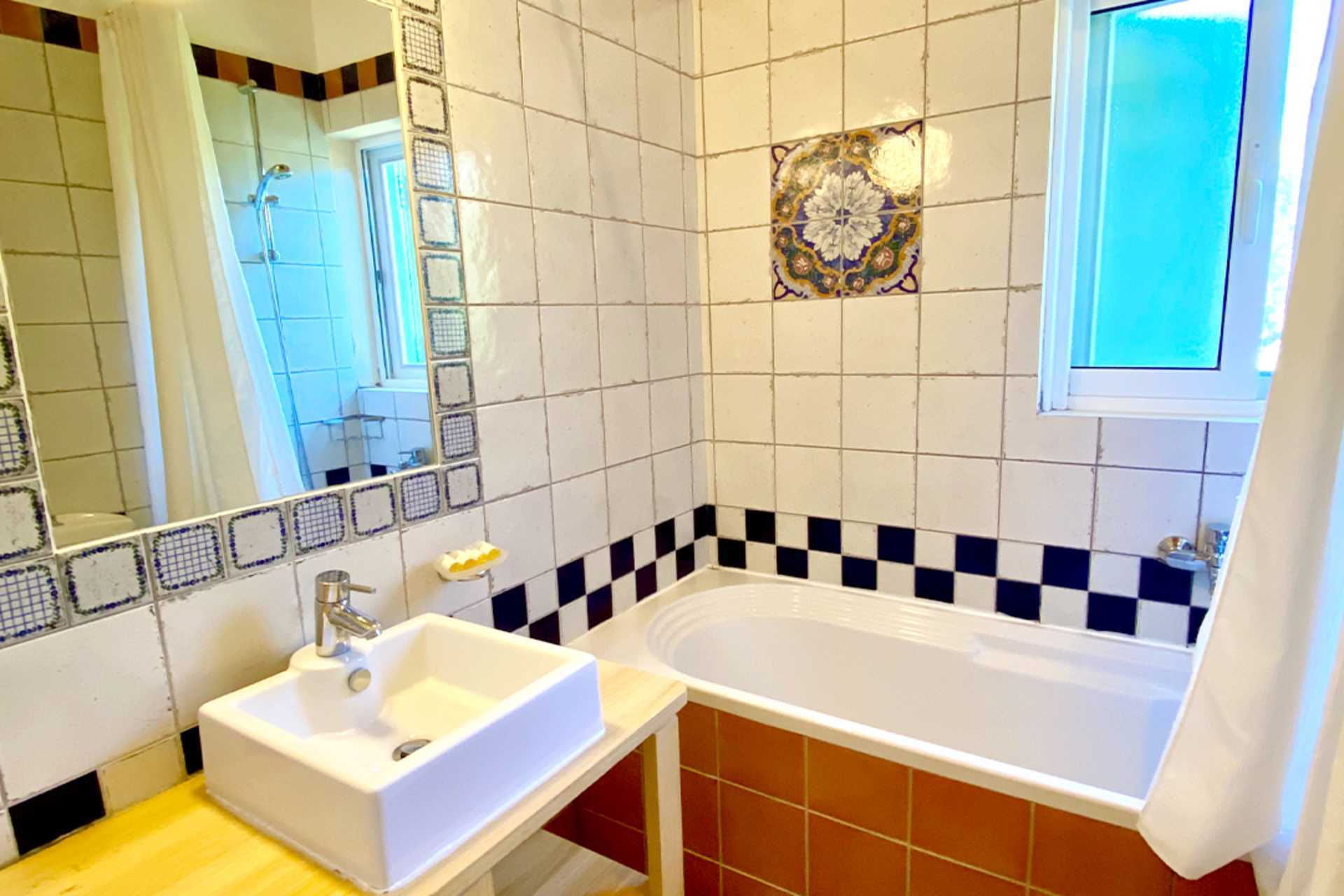 Treroms villa med markterrasse og eget basseng. Solsenger samt stoler og bord på uteplassen. I entréetasjen er det kombinert stue med kjøkkenkrok og mulighet for ekstra seng i sovesofa, samt soverom med dobbeltseng og bad med dusj og wc. En trapp opp er det et soverom med to enkeltsenger og et bad med hårføner, dusj og wc. Minikjøkken med kokeplater og stekeovn, mikrobølgeovn, kjøleskap, kaffetrakter, vannkoker, brødrister, grunnleggende kjøkkenutstyr og oppvaskmaskin. Wifi, luftkondisjonering og safe er inkludert. Vaskemaskin. TV med lokale kanaler. Hårføner. Rengjøring 2 ggr/uke.