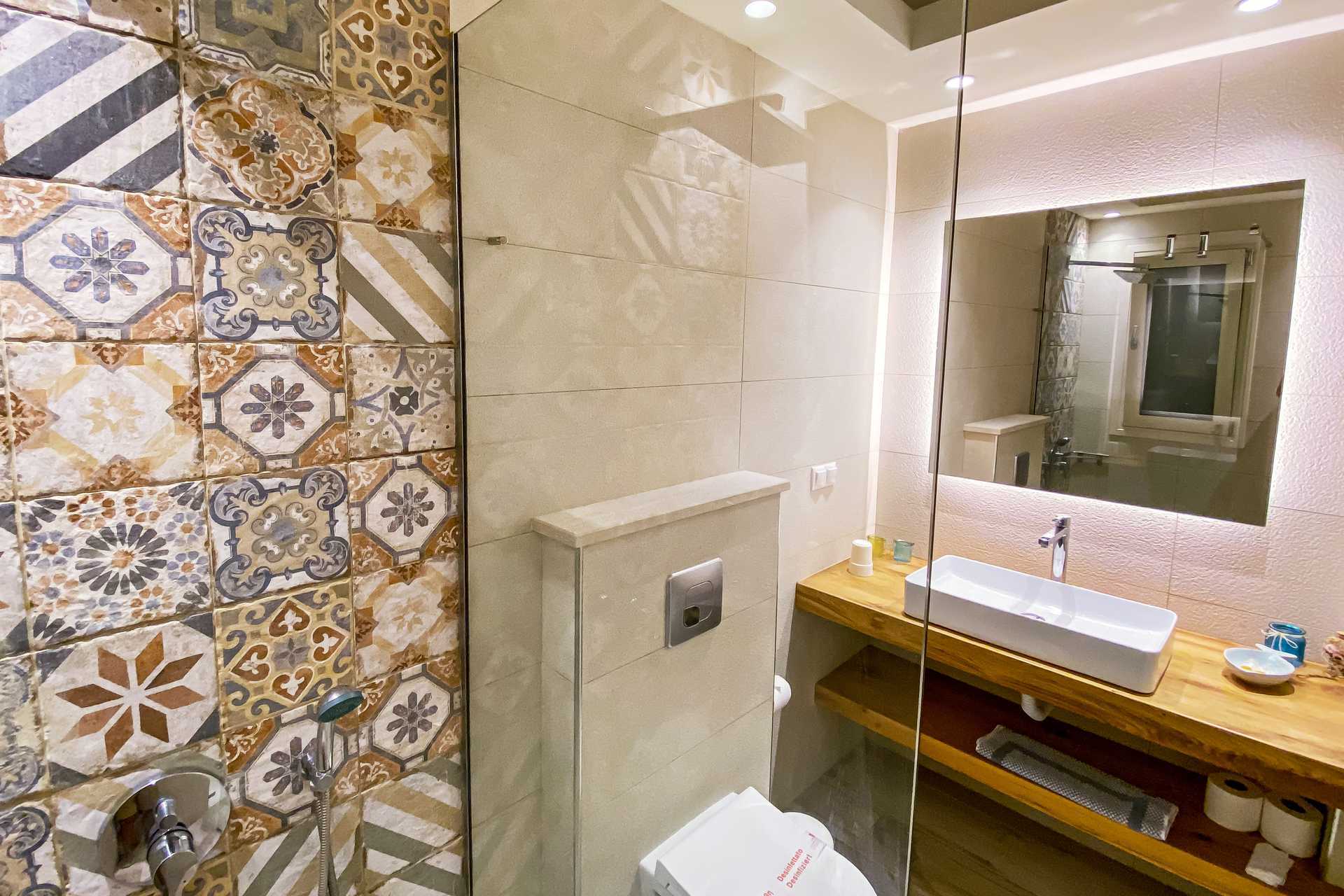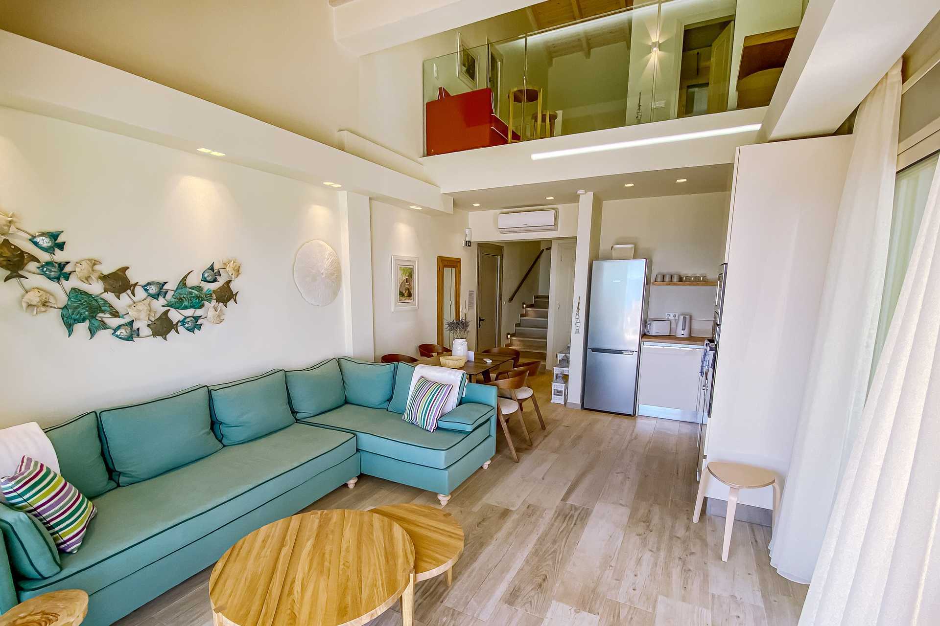 Toromsleilighet i etasje med balkong eller terrasse. Kombinert stue med kjøkkenkrok og separat toalett og mulighet for ekstrasenger i sovesofa. I etasjen over er det soverom med dobbeltseng, balkong og bad med hårføner, dusj og toalett. Minikjøkken med kjøleskap, kokeplater, kaffetrakter, vannkoker, brødrister og enkelt kjøkkenutstyr. Wifi, luftkondisjonering og safe inkludert. TV. Vaskemaskin. TV. Rengjøring 2 ggr/uke.