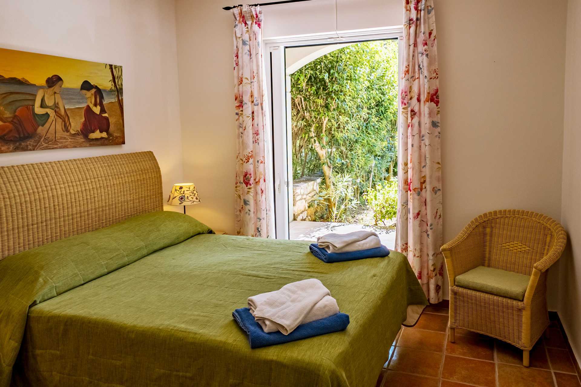 Treromsleilighet i etasje med terrasse og eget basseng. På balkongen er det bord og stoler samt to solsenger. Ovenpå er de to soverommene, et med en dobbeltseng og et med to enkeltsenger. Det er også et bad med dusj og toalett og en balkong. Nede er det en stue med minikjøkken og mulighet for ekstraseng i sovesofa, samt et bad med hårføner, dusj og wc. Minikjøkken med kjøleskap, kokeplater, stekeovn, mikrobølgeovn, kaffetrakter, vannkoker, brødrister og enkelt kjøkkenutstyr. Wifi, luftkondisjonering og safe inkludert. Vaskemaskin. TV med lokale kanaler. Hårføner. Rengjøring 2 ggr/uke.