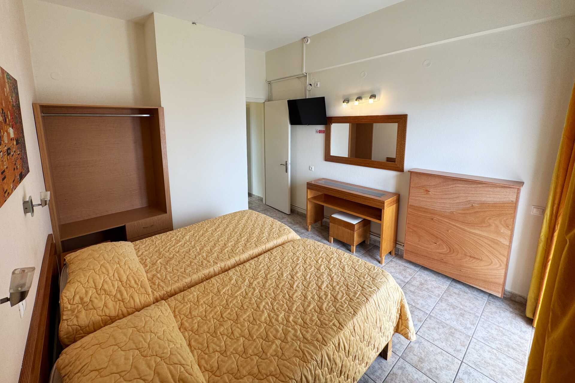 Dobbeltrom med balkong. To enkeltsenger. Mulig med ekstraseng. Safe inkludert. Luftkondisjonering mot avgift. Kjøleskap. TV. Hårføner. Dusj og wc. Rengjøring 6 ggr/uke. Barn under 2 år regnes inn i maksantallet i rommet.